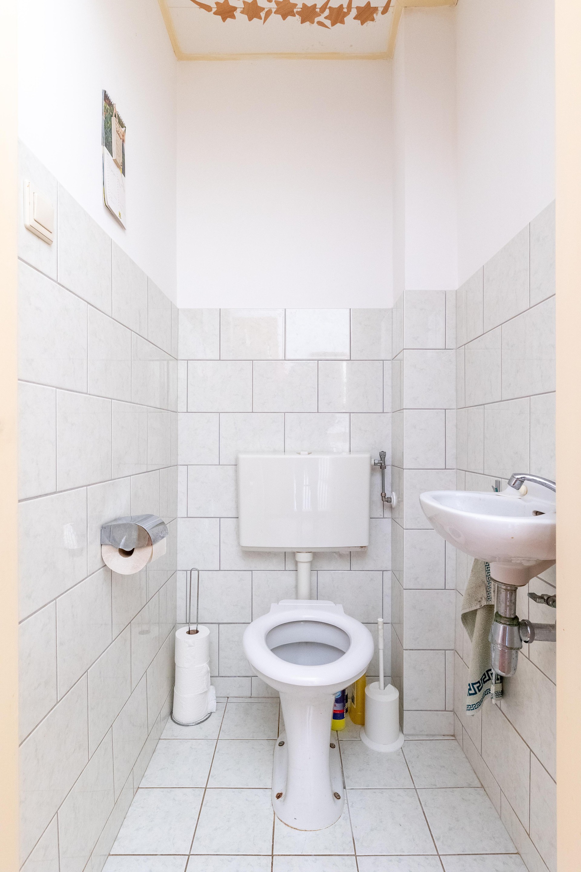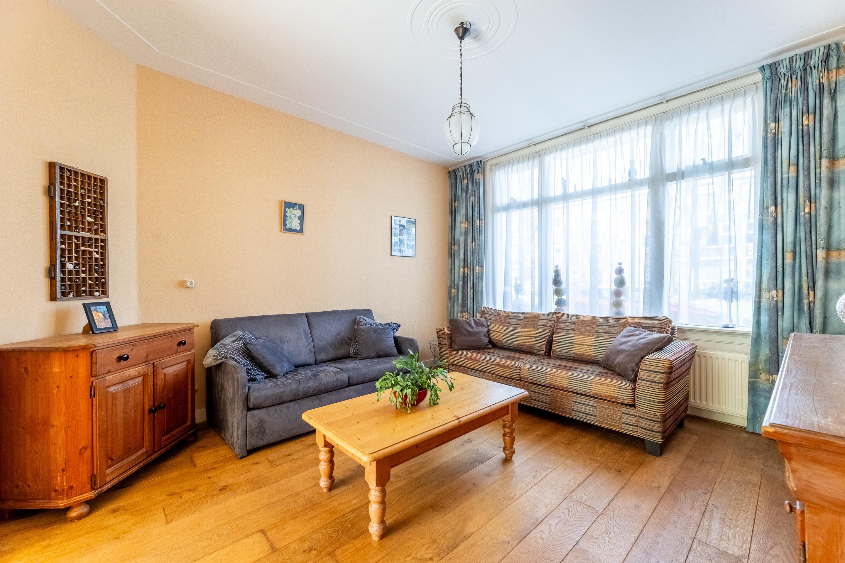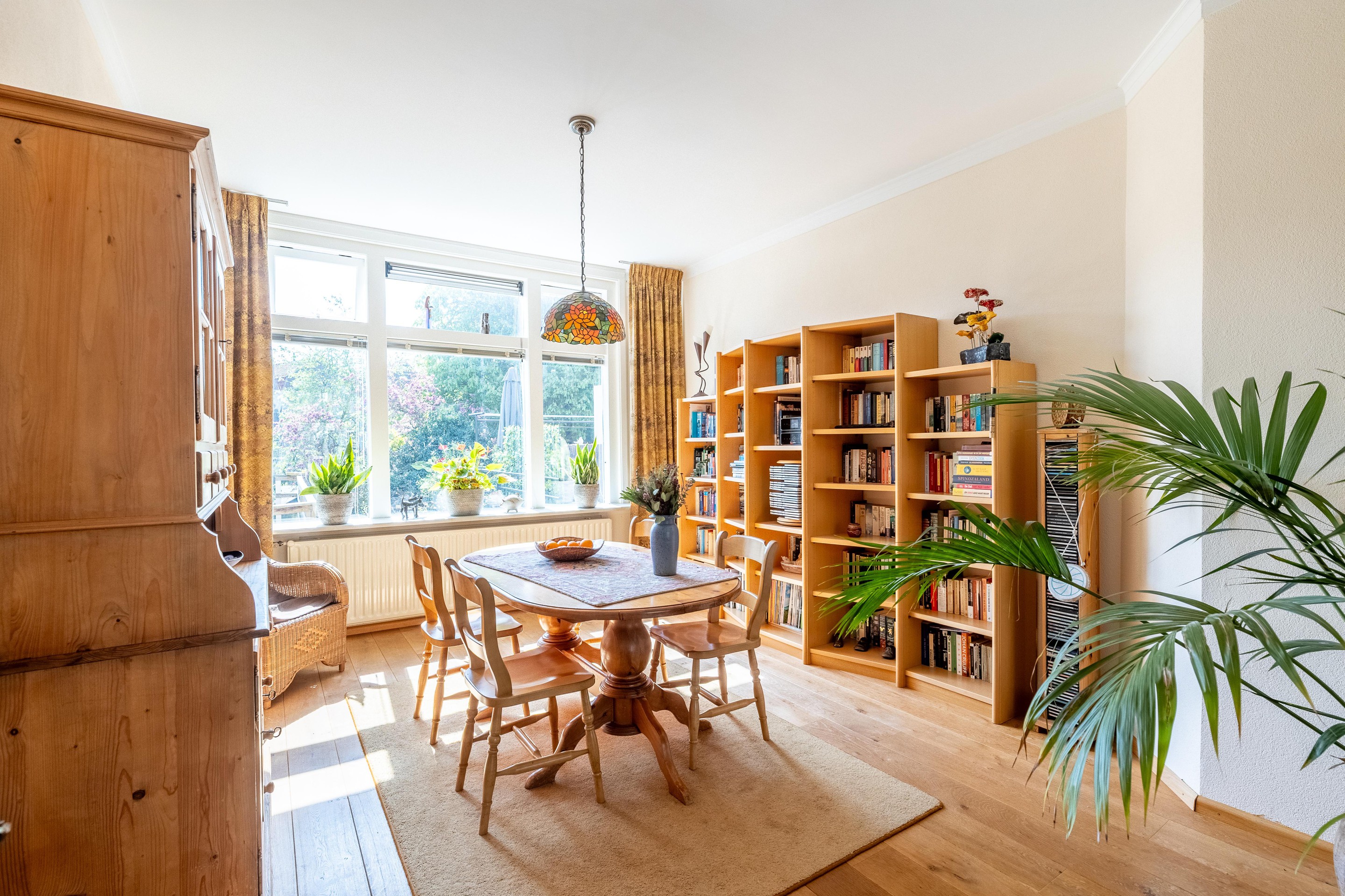 Eerste verdieping Overloop met de trapopgang naar de tweede verdieping, een toiletruimte met fonteintje en een kamer aan de voorzijde. De zeer royale woonkamer heeft hoge plafonds, veel lichtinval en een gezellige erker. De vloer is mooi afgewerkt met een eiken parketvloer.