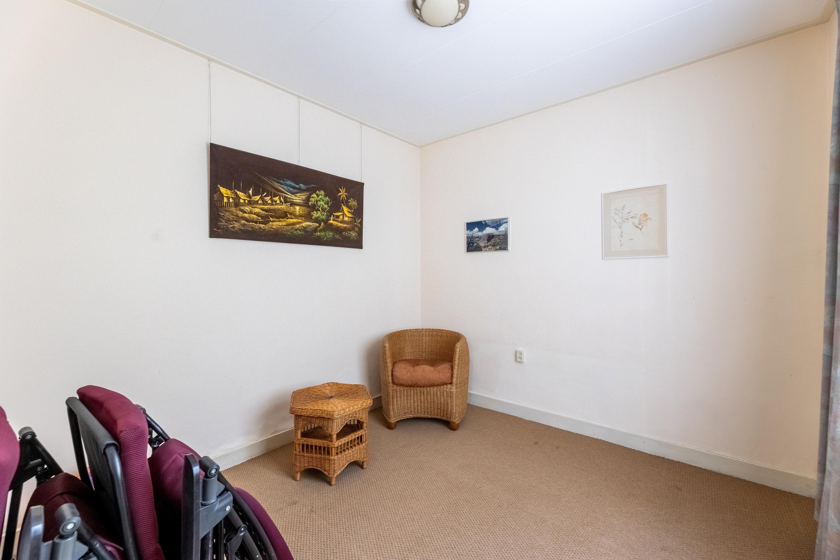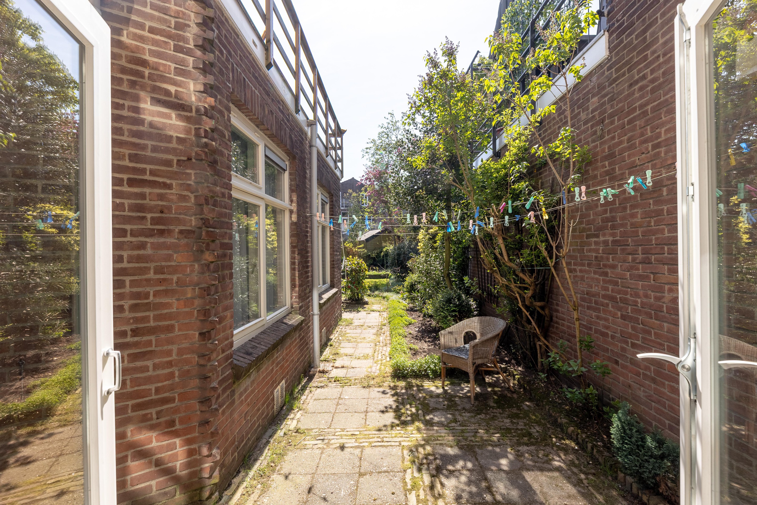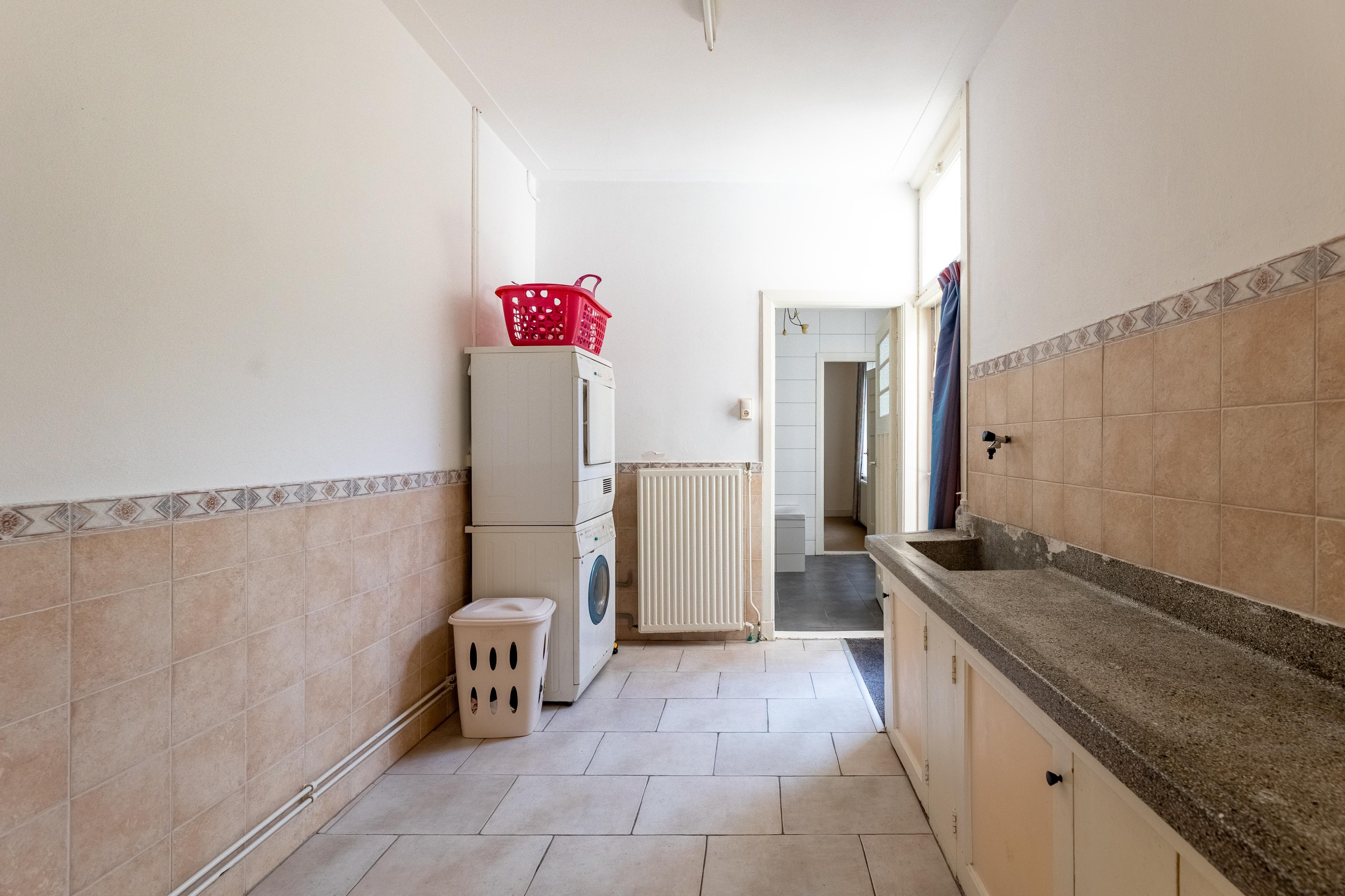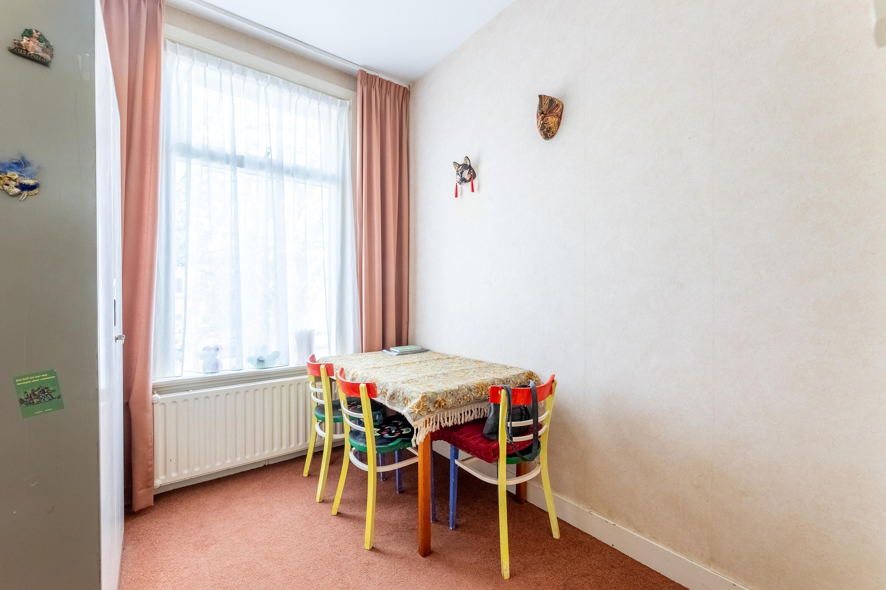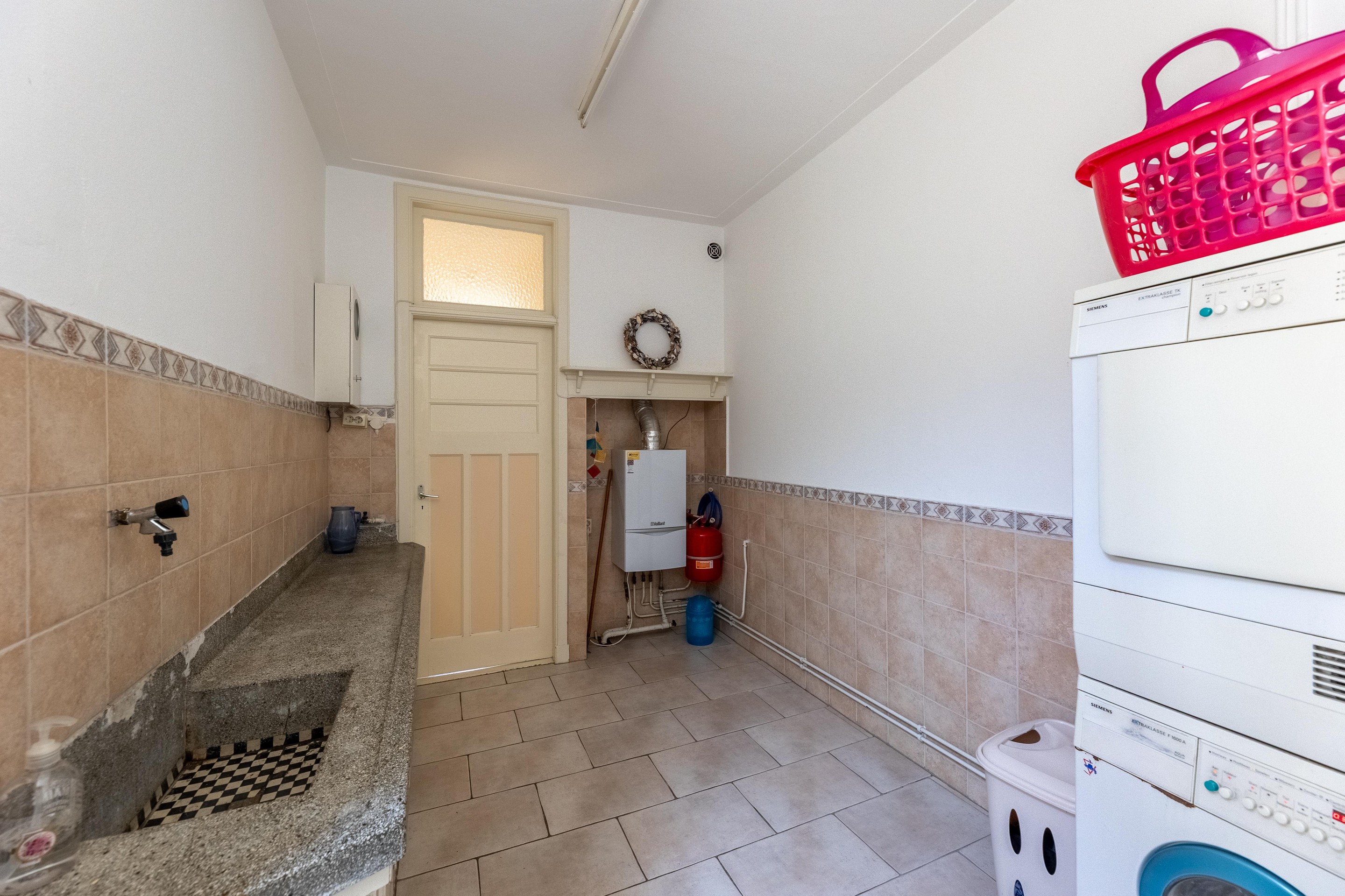 Begane grond Entree met de lange hal. Op de begane grond is al direct de fraaie en zo kenmerkende jaren ‘30 indeling terug te vinden. Er zijn twee kamers die middels de en-suitedeuren met vaste kastruimte apart van elkaar te gebruiken zijn. De kamer aan de achterzijde heeft openslaande deuren naar de achtertuin. In de hal is er een toiletruimte en de trapopgang naar de verdieping. In het verlengde van de hal is een (voormalige) keukenruimte met c.v.-installatie en aansluitend een badkamer met ligbad, douche en wastafelmeubel. Vanuit de badkamer loopt u door naar een extra (slaap)kamer.