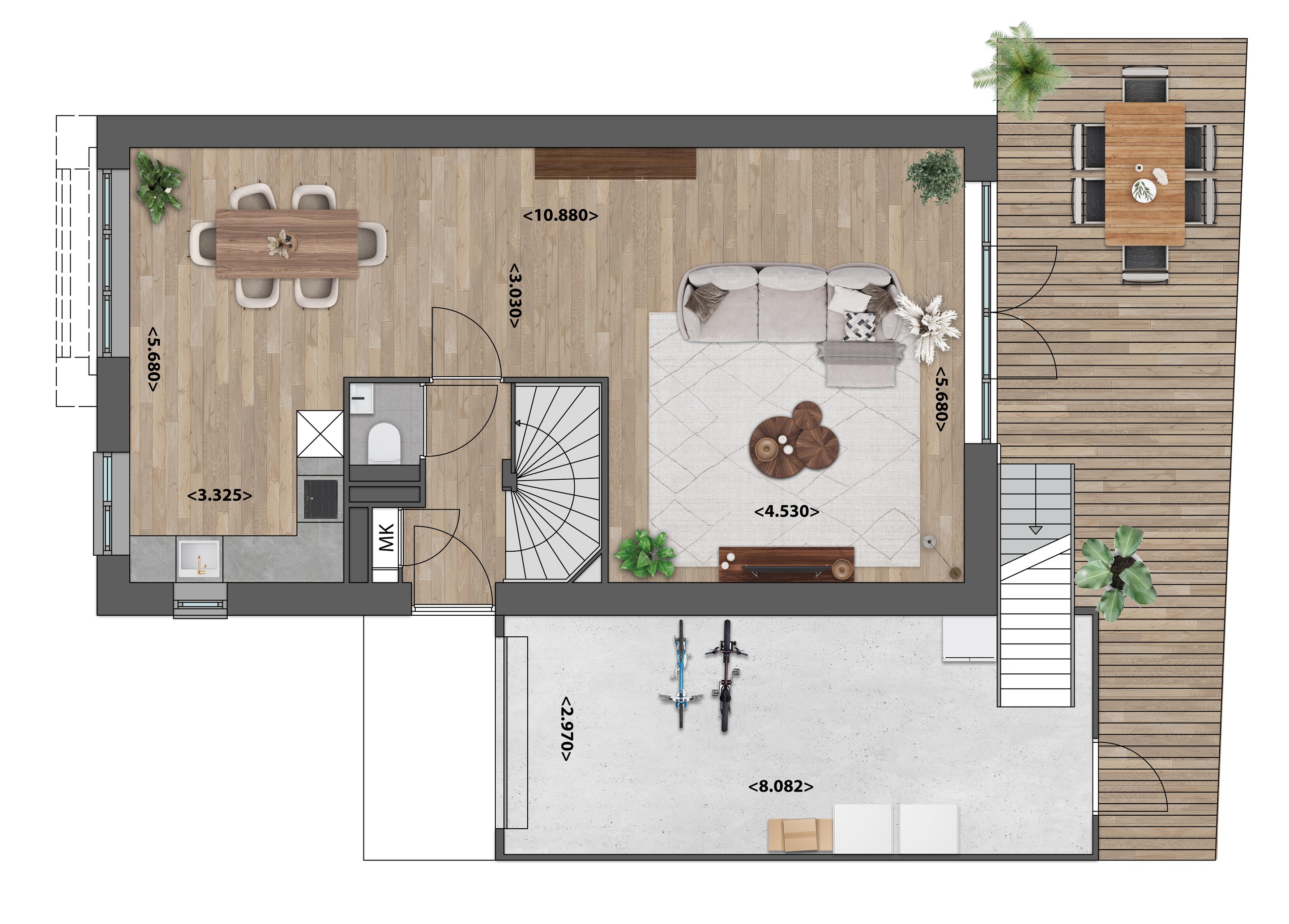 - Ruime woonkeuken met de vrijheid om een eigen indeling te kiezen