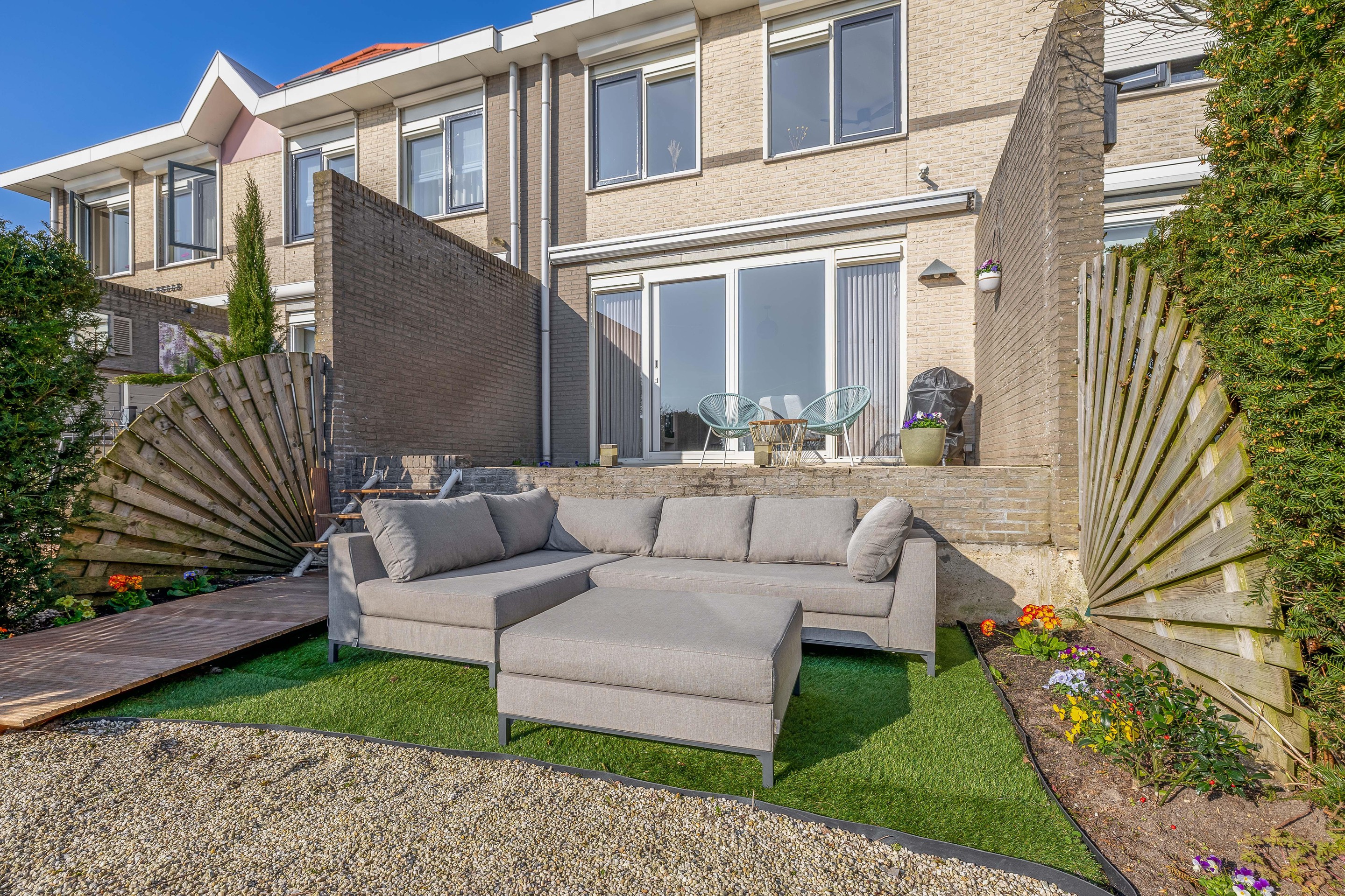 De keurig aangelegde achtertuin (ca. 8 x 5,5 meter) ligt op het oosten en grenst direct aan de rivier de Gouwe. De tuin is onderhoudsvriendelijk met bestrating en een hardhouten vlonder aan de waterkant. De sfeervolle tuinverlichting en het woningbrede zonnescherm maken het buitenverblijf compleet. In de omgeving vind je sportfaciliteiten, het Warnaarplantsoen en de Reeuwijkse Plassen op fietsafstand. Dankzij de nabijheid van het NS-station en de uitvalswegen woon je hier rustig, maar zeer centraal.