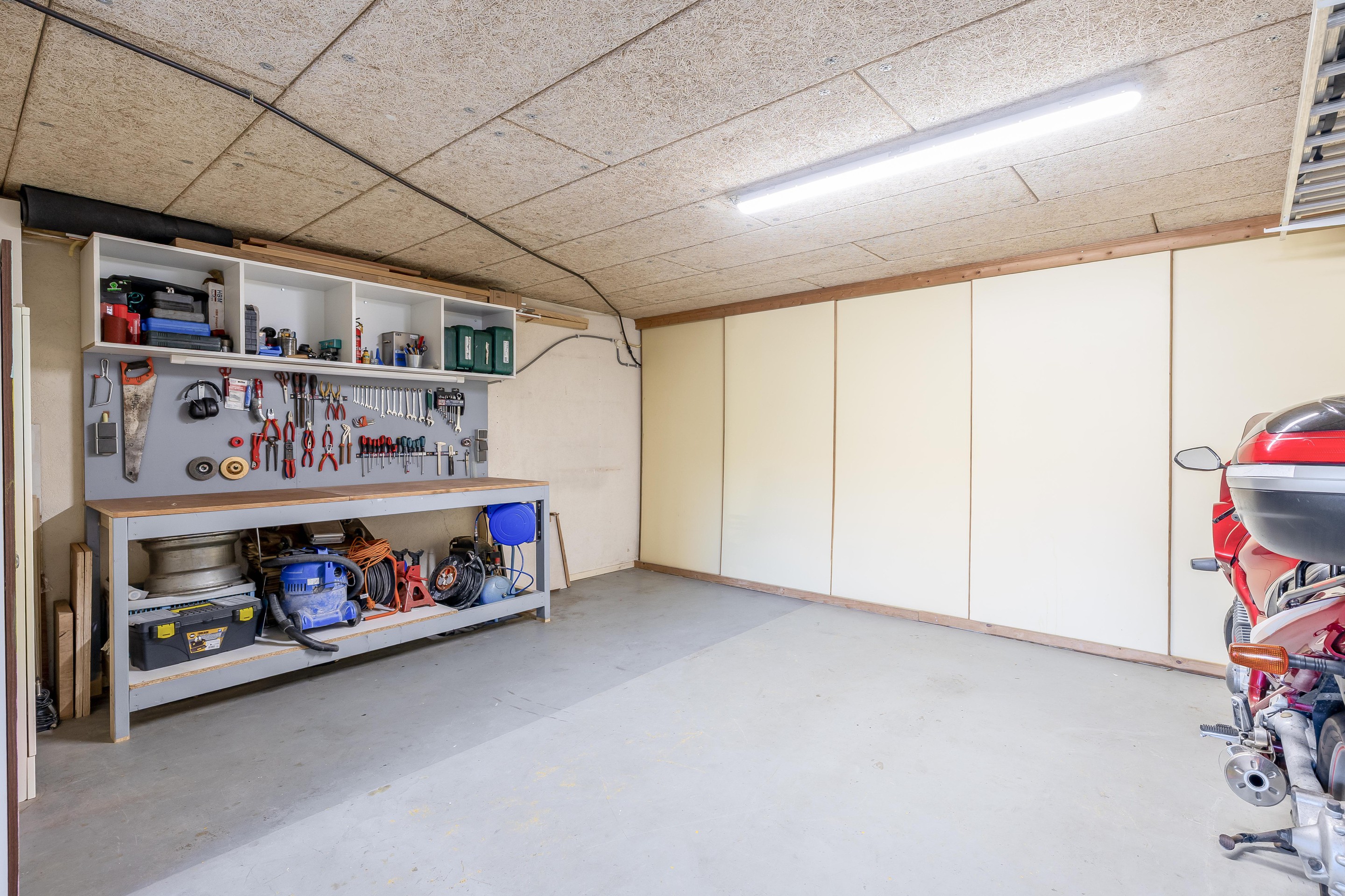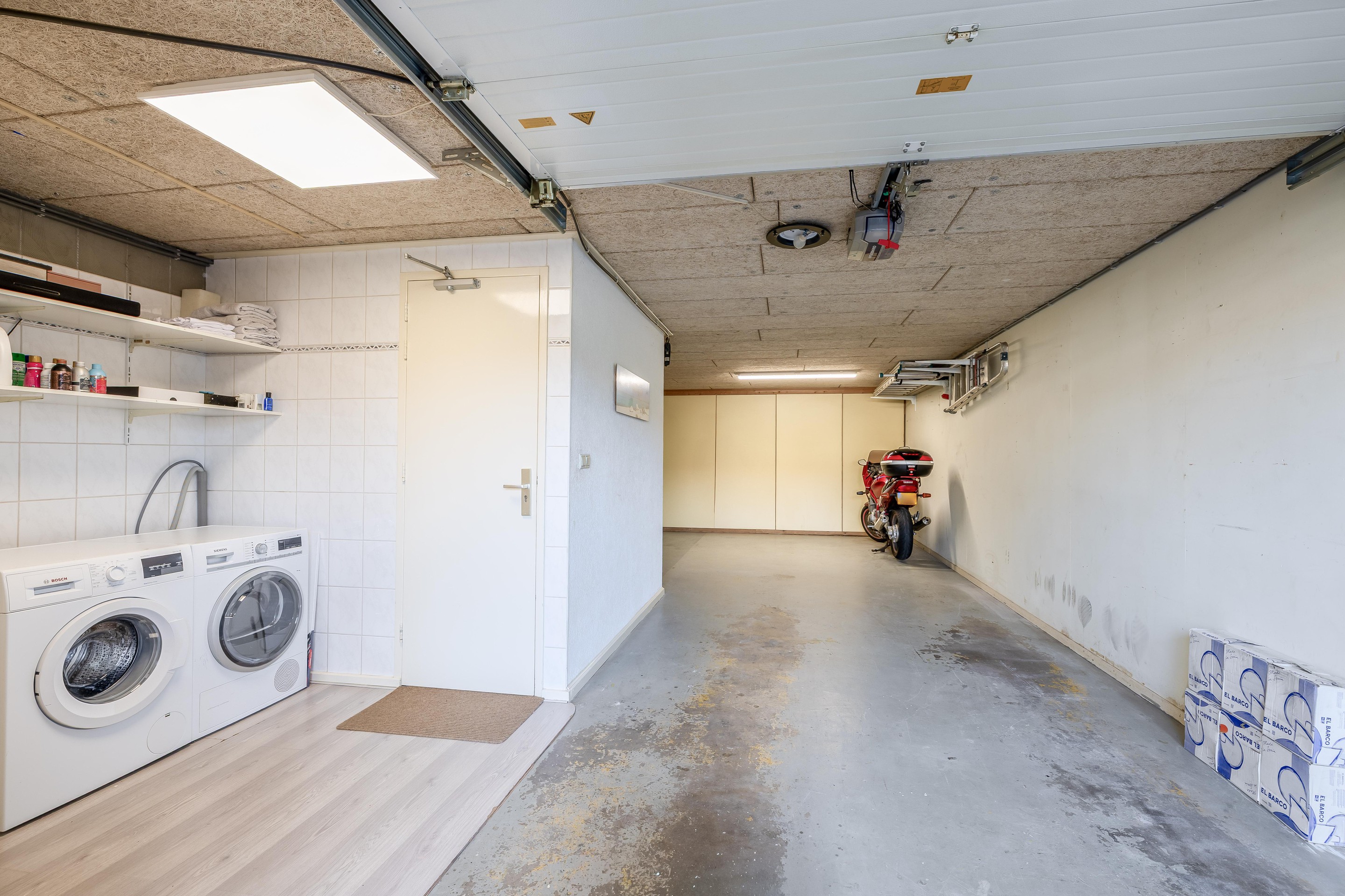 Naast de oprit aan de voorzijde bereik je de woning via een trap en een bordes. De gedeelde toegang, de voortuin en de bloembakken zijn samen met de buren met zorg aangelegd, wat direct zorgt voor een representatieve en verzorgde uitstraling. In het souterrain vind je een zeer royale garage en berging van circa 53 m2, die voorzien is van een elektrische kantel- en loopdeur met afstandsbediening. Deze ruimte biedt plek aan twee tot drie auto’s, maar je kunt er ook voor kiezen om een deel te gebruiken als extra bergruimte van circa 20 m2 terwijl je nog steeds een forse auto binnen kunt parkeren. Ook de praktische zaken zijn hier goed geregeld: de natte ruimte in het souterrain heeft een uitstortgootsteen en de nodige aansluitingen voor je wasmachine en droger. Dankzij de ruimte en de goede toegankelijkheid is het souterrain eventueel ook uitstekend te gebruiken als kantoor- of bedrijfsruimte aan huis.