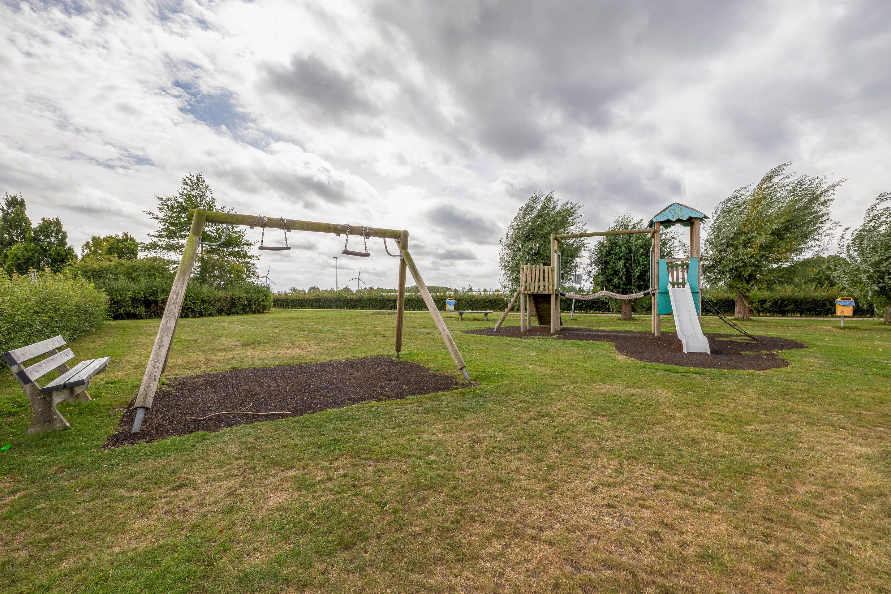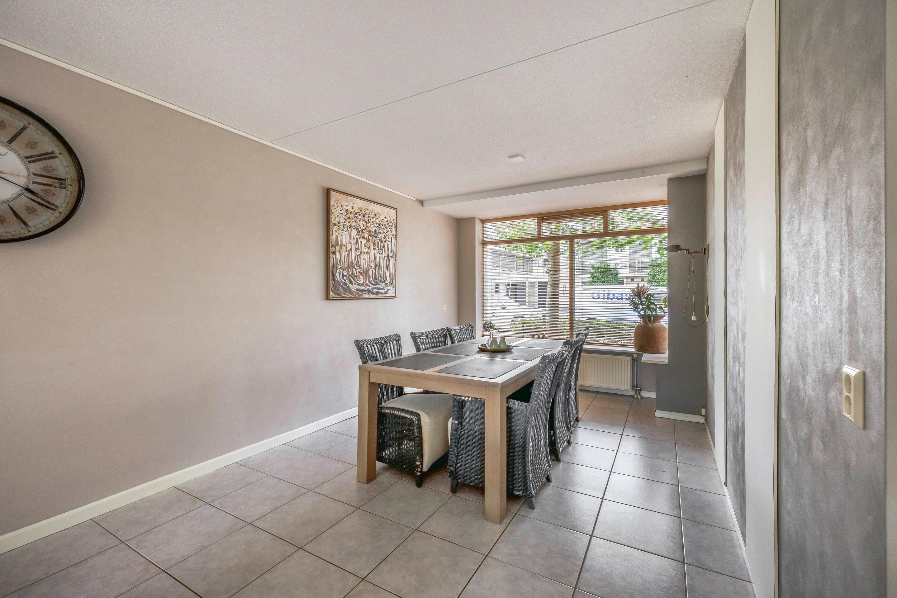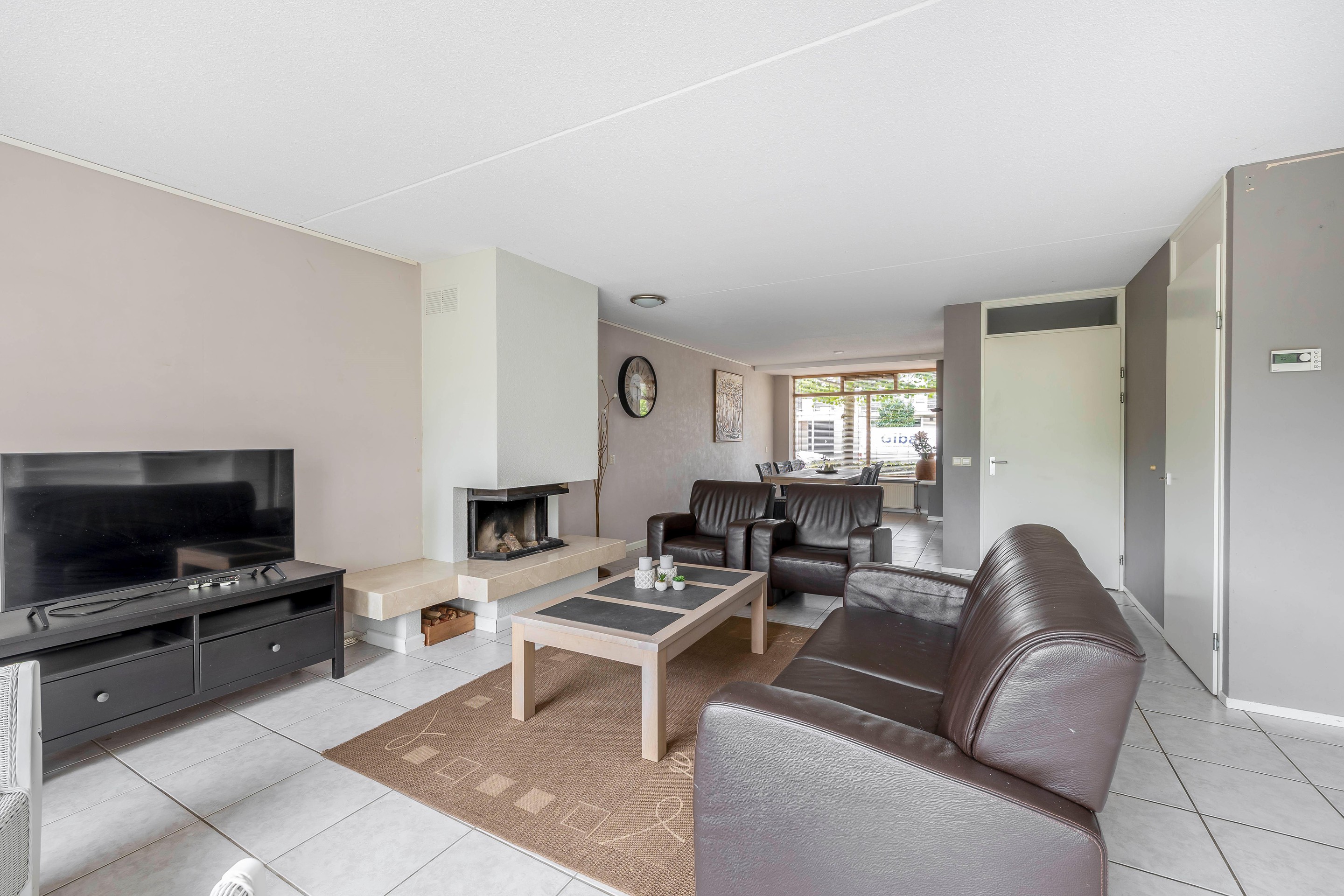 De woonkamer is royaal en biedt plaats aan een grote eethoek en een zitgedeelte. Centraal valt de fraaie schouw met houtgestookte open haard op. Via de schuifpui heb je rechtstreeks toegang tot de tuin. Verder is er een trapkast aanwezig. De vloer is afgewerkt met tegels en voorzien van vloerverwarming.
