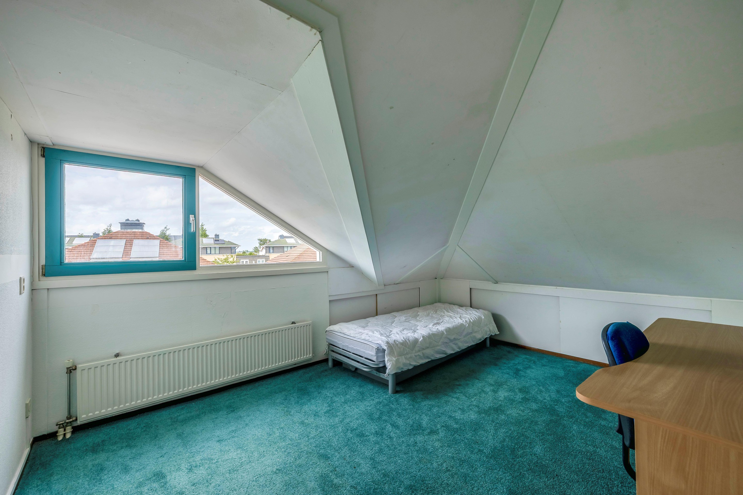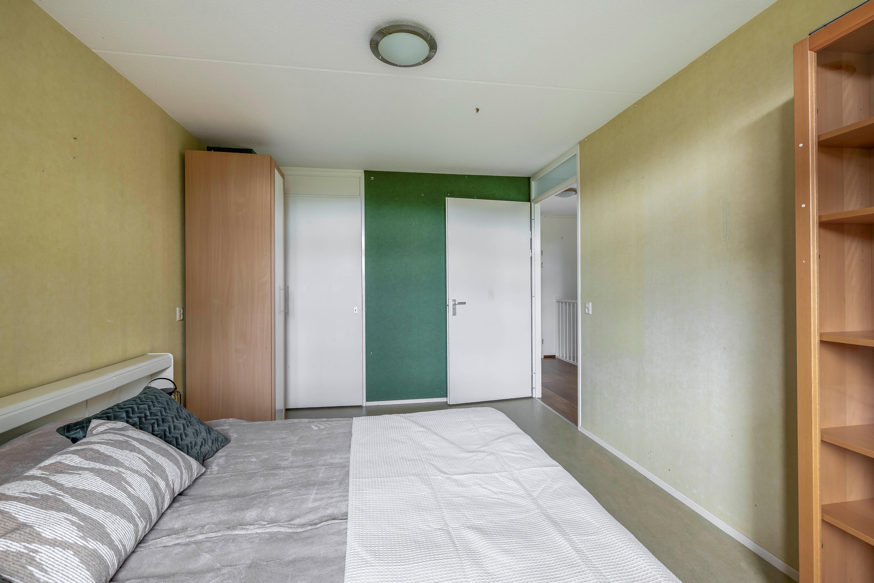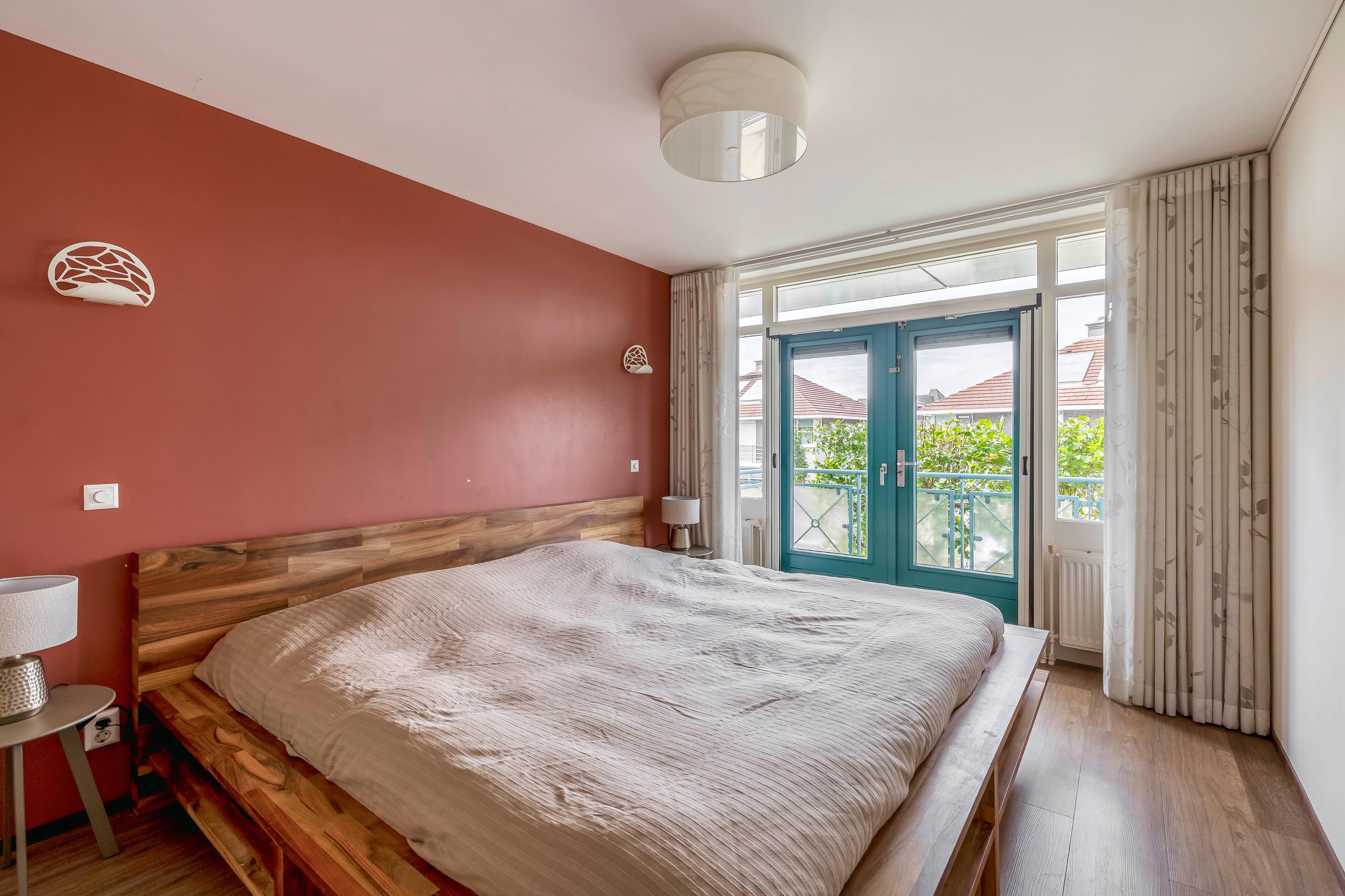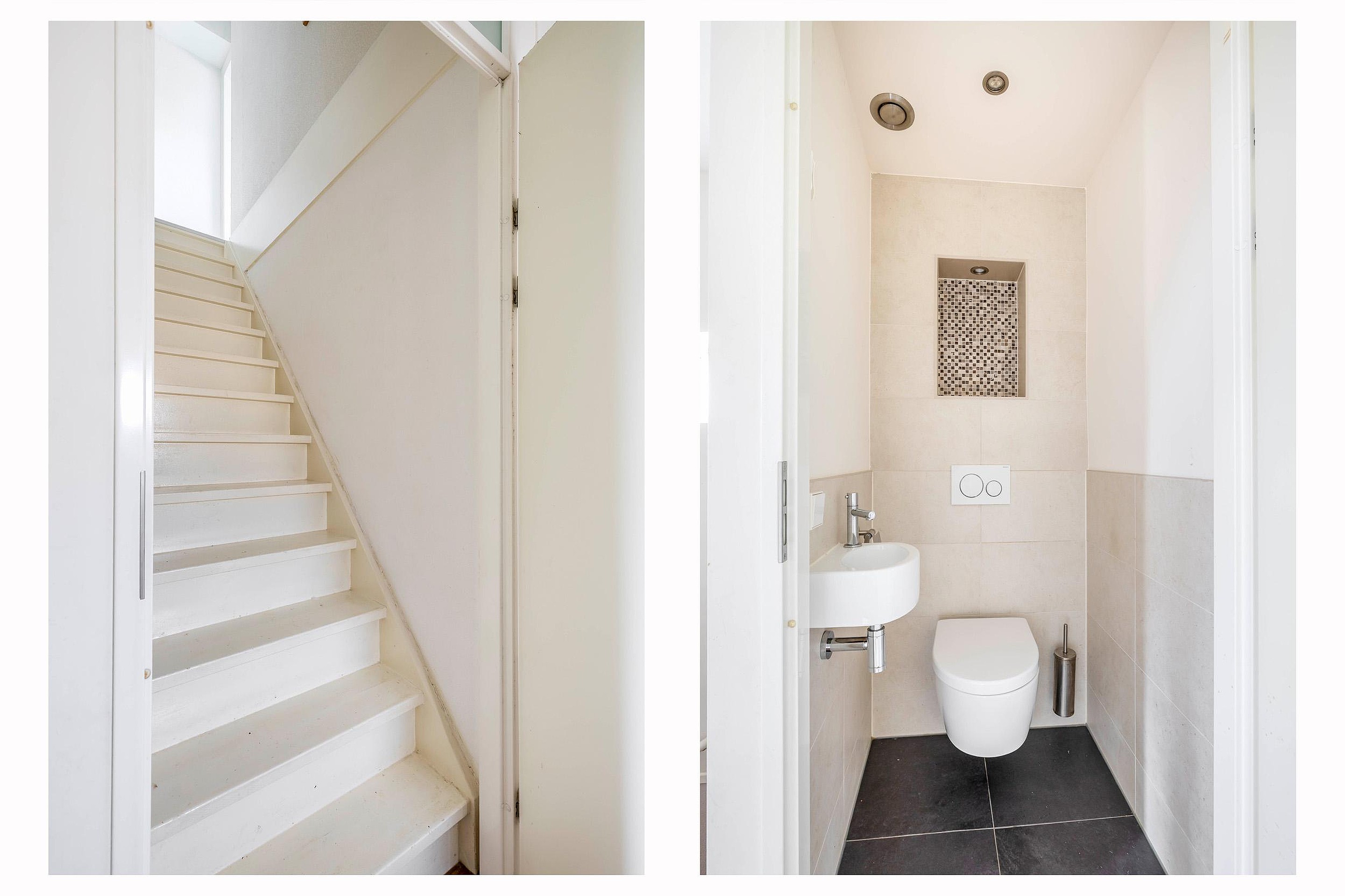 Eerste verdieping Op de eerste verdieping zijn drie slaapkamers. De slaapkamer aan de voorzijde is netjes afgewerkt, voorzien van een laminaatvloer en biedt via openslaande deuren toegang tot een klein balkon. De beide slaapkamers aan de achterzijde hebben een vinylvloer en vaste kasten. De grootste beschikt bovendien over een extra kast onder de trap naar de tweede verdieping. Op de overloop bevindt zich een apart toilet.