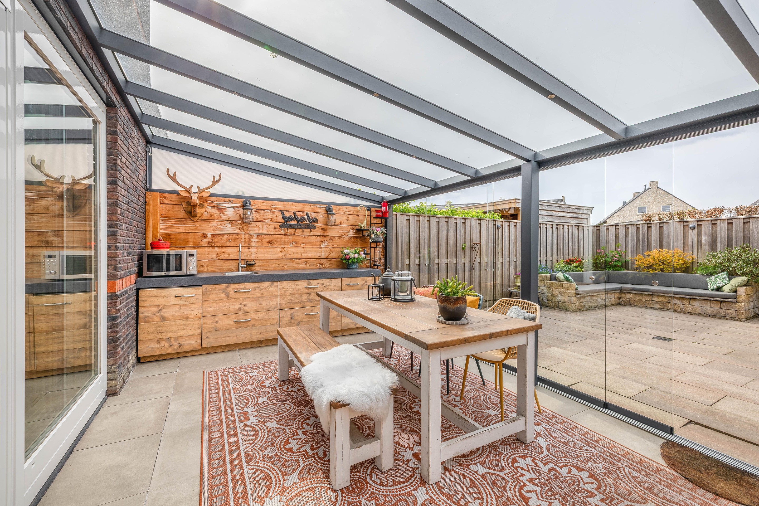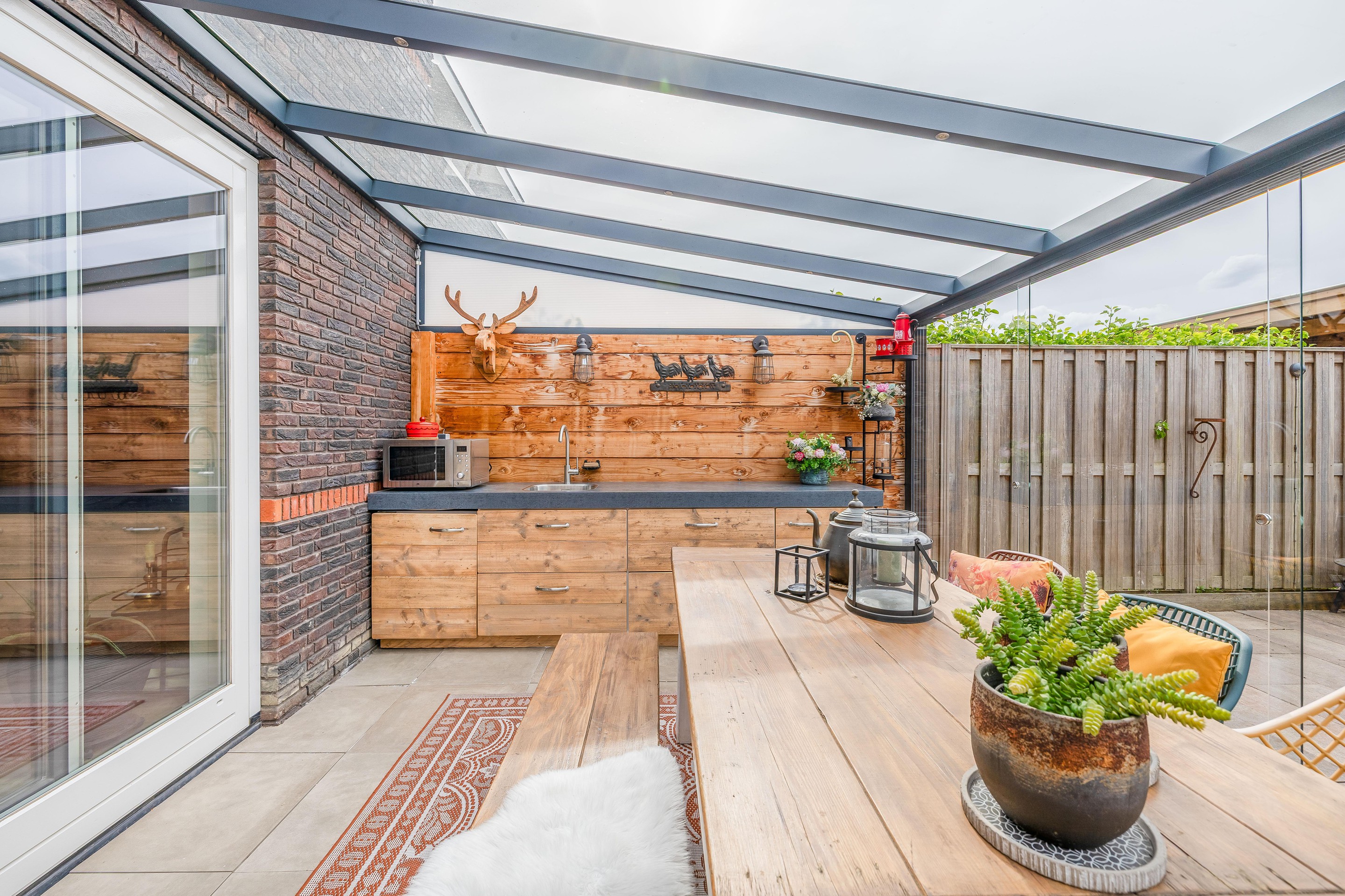 - Glazen Serre: Voorzien van glazen schuifpui en inbouwverlichting.