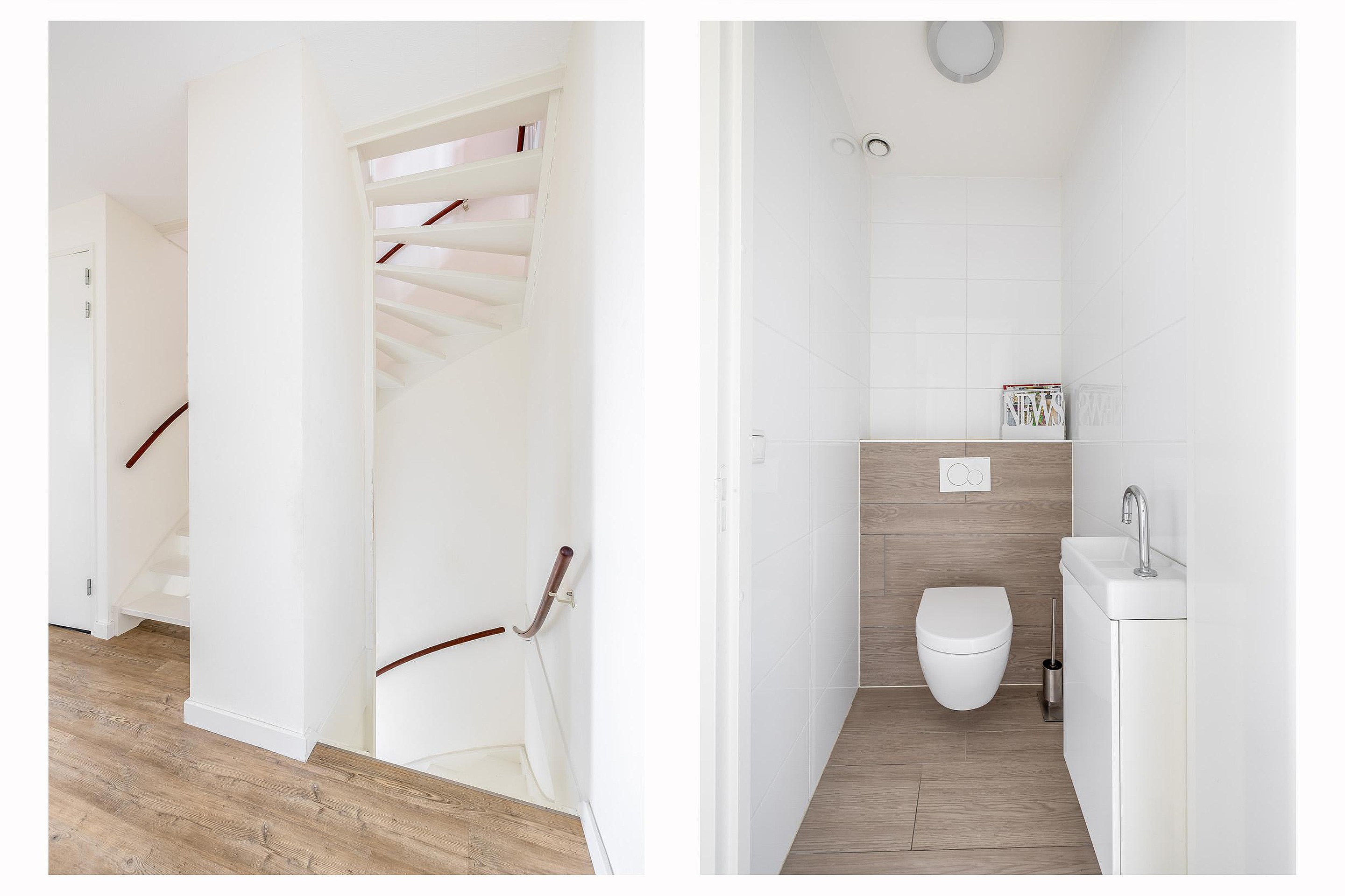 Begane grond Bij binnenkomst ervaart u direct de kwaliteit in de ruime hal met trapopgang en modern toilet. De living aan de achterzijde is door de uitbouw en de glazen serre indrukwekkend diep. Het raam in de zijgevel geeft de woonkamer een fijn, licht karakter. De vloer is voorzien van vloerverwarming en is afgewerkt met een PVC-vloer in recht verband. De luxe keuken is uitgerust met onder andere een vaatwasser, koelkast, vriezer en een gas-op-glas kookplaat. Tussen de woonkamer en de keuken is volop ruimte voor een grote eettafel.
