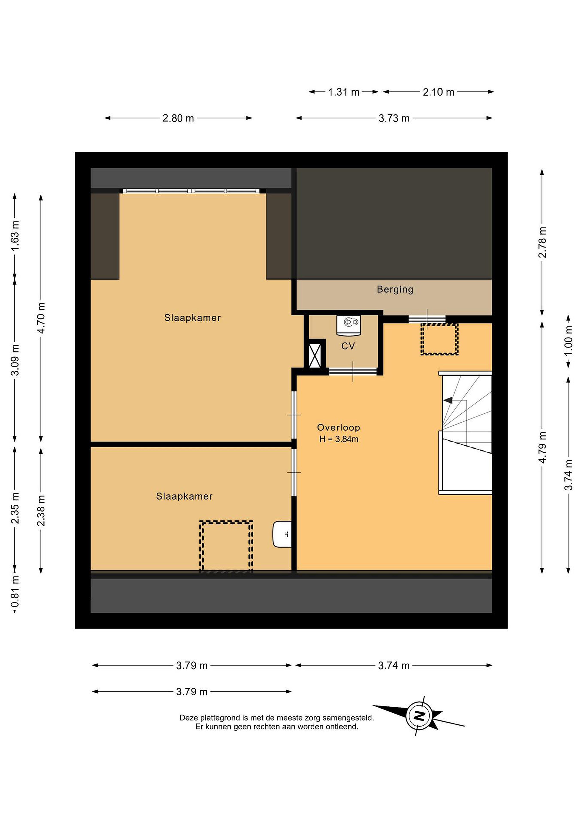Voorzolder 3,73 x 4,79m (17,00m2)