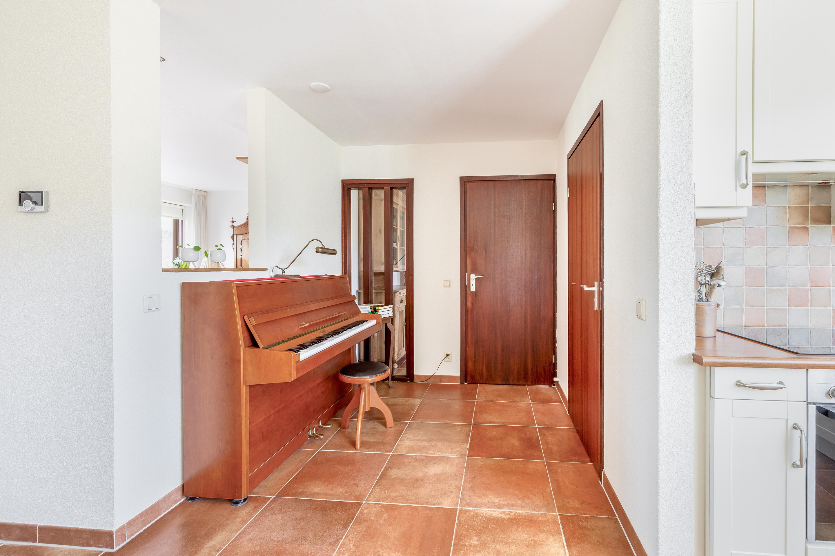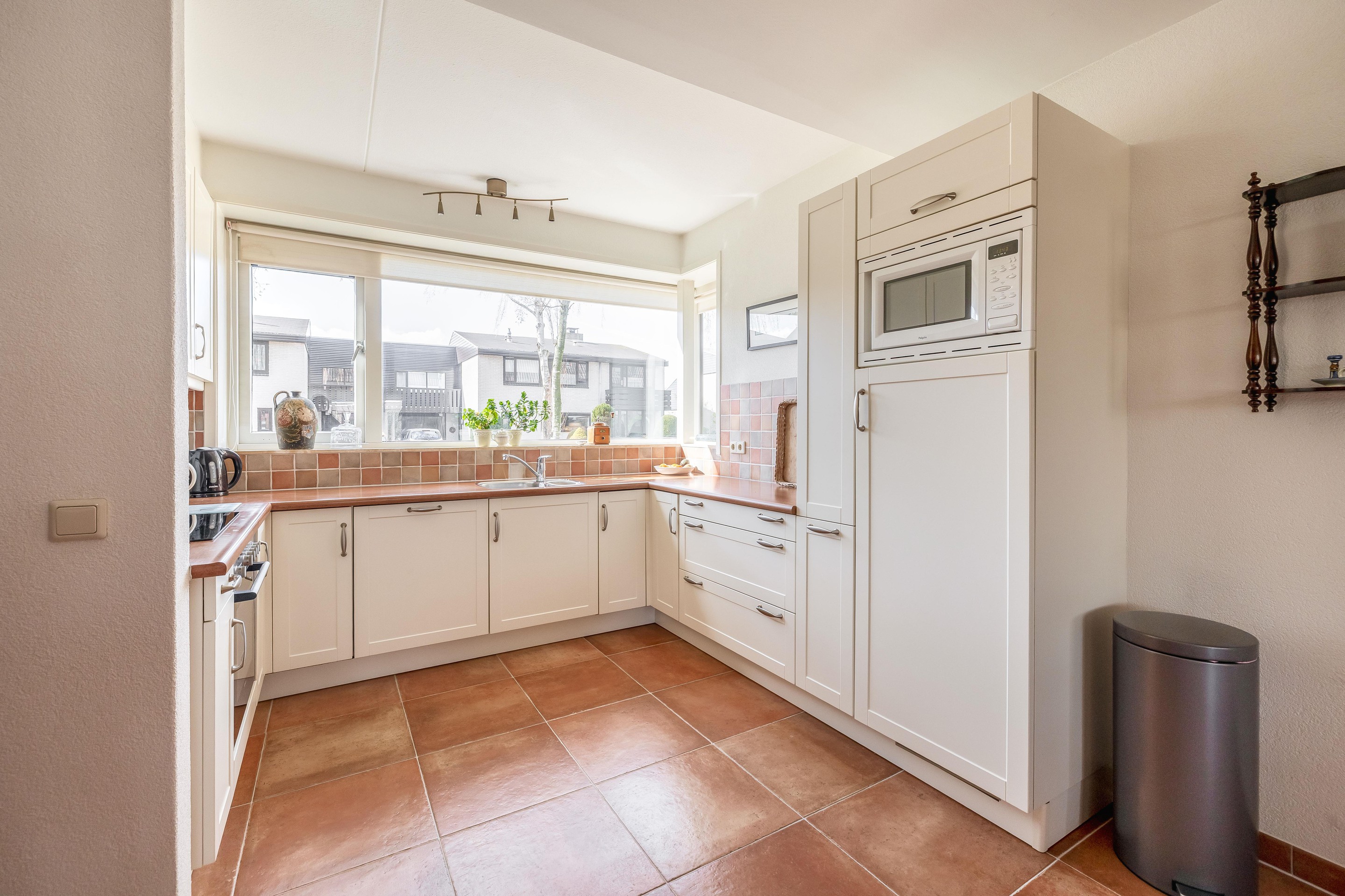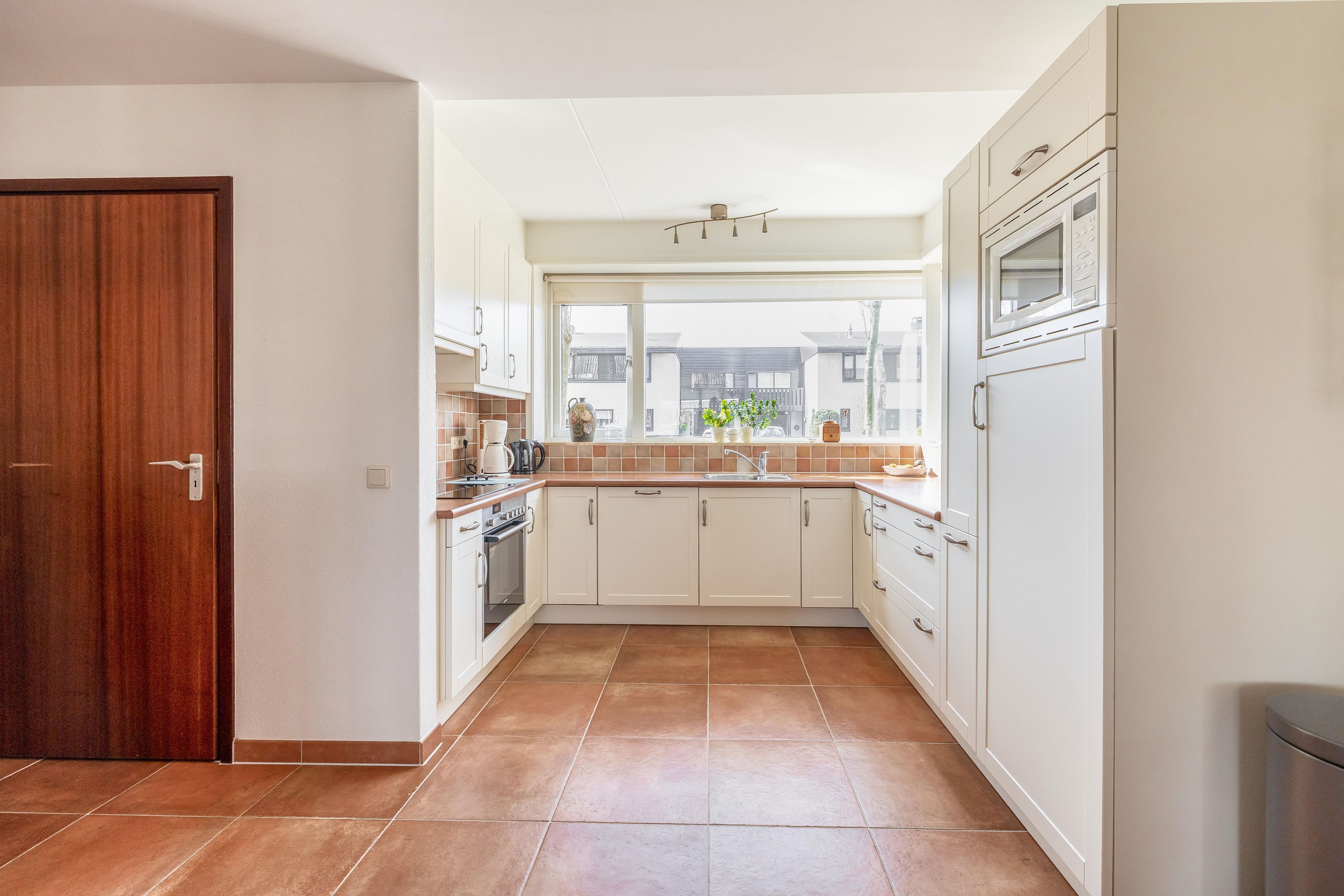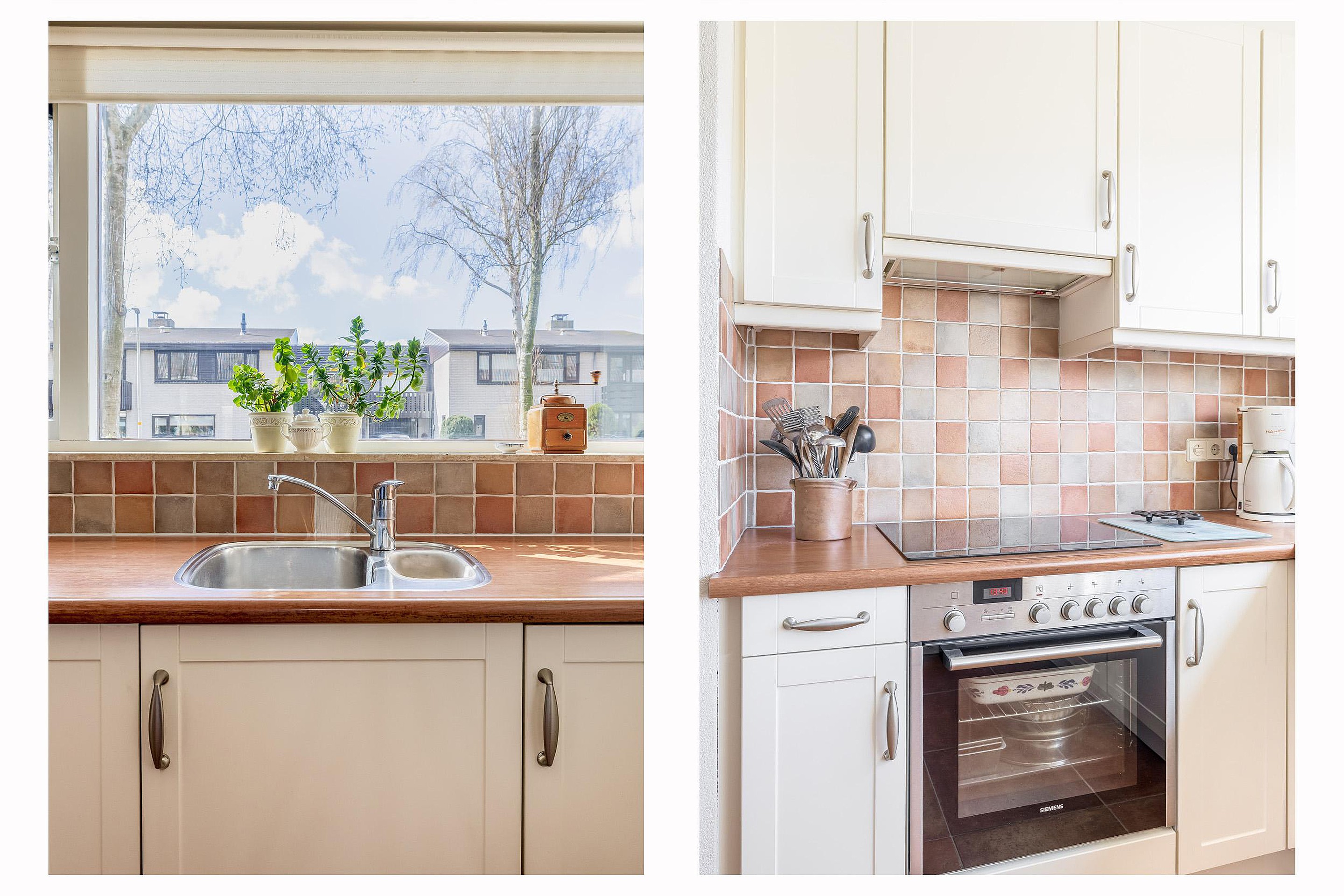 Heel praktisch is de bijkeuken die zich direct naast de keuken bevindt. Hier is een wasmachineaansluiting en veel opbergruimte beschikbaar.