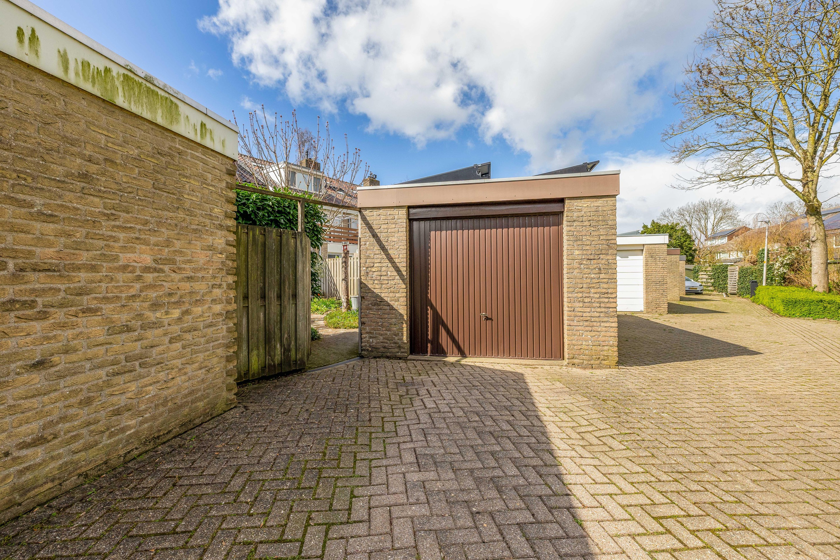 Royale vrijstaande garage met elektrisch bediende deur.