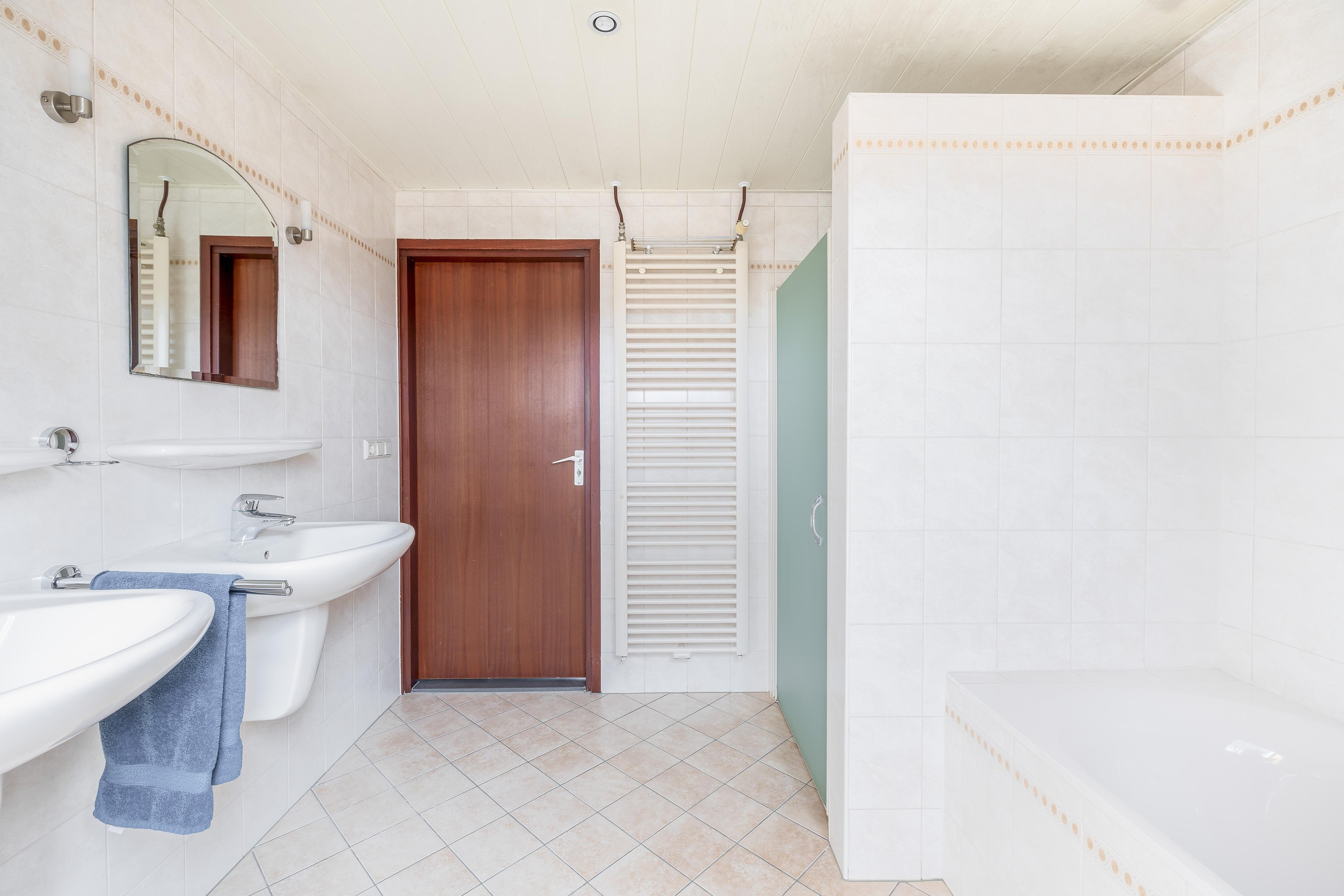 De gehele vloer op de begane grond is voorzien van plavuizen met vloerverwarming.