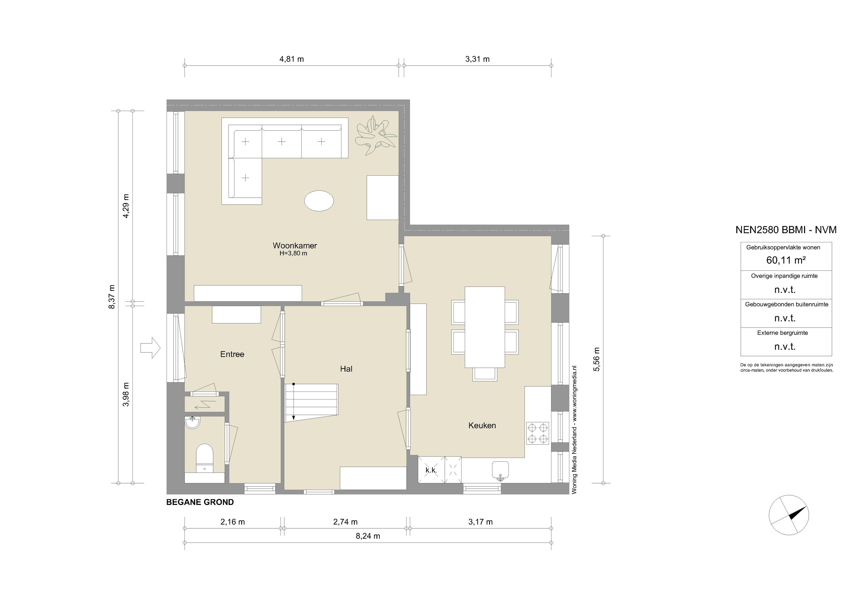 Deze informatie is door ons met de nodige zorgvuldigheid samengesteld. Onzerzijds wordt echter geen enkele aansprakelijkheid aanvaard voor enige onvolledigheid, onjuistheid of anderszins, dan wel de gevolgen daarvan. Alle opgegeven maten en oppervlakten zijn indicatief. Koper heeft zijn eigen onderzoeksplicht naar alle zaken die voor hem of haar van belang zijn. Met betrekking tot deze woning is de makelaar adviseur van verkoper. Wij adviseren je een deskundige (Vastgoed Ned.)-makelaar in te schakelen die je begeleidt bij het aankoopproces. Indien je specifieke wensen hebt omtrent de woning, adviseren wij je deze tijdig kenbaar te maken aan jouw aankopend makelaar en hiernaar zelfstandig onderzoek te (laten) doen. Indien je geen deskundige vertegenwoordiger inschakelt, acht je jezelf volgens de wet deskundige genoeg om alle zaken die van belang zijn te kunnen overzien. Van toepassing zijn de (Vastgoed Ned.)-voorwaarden