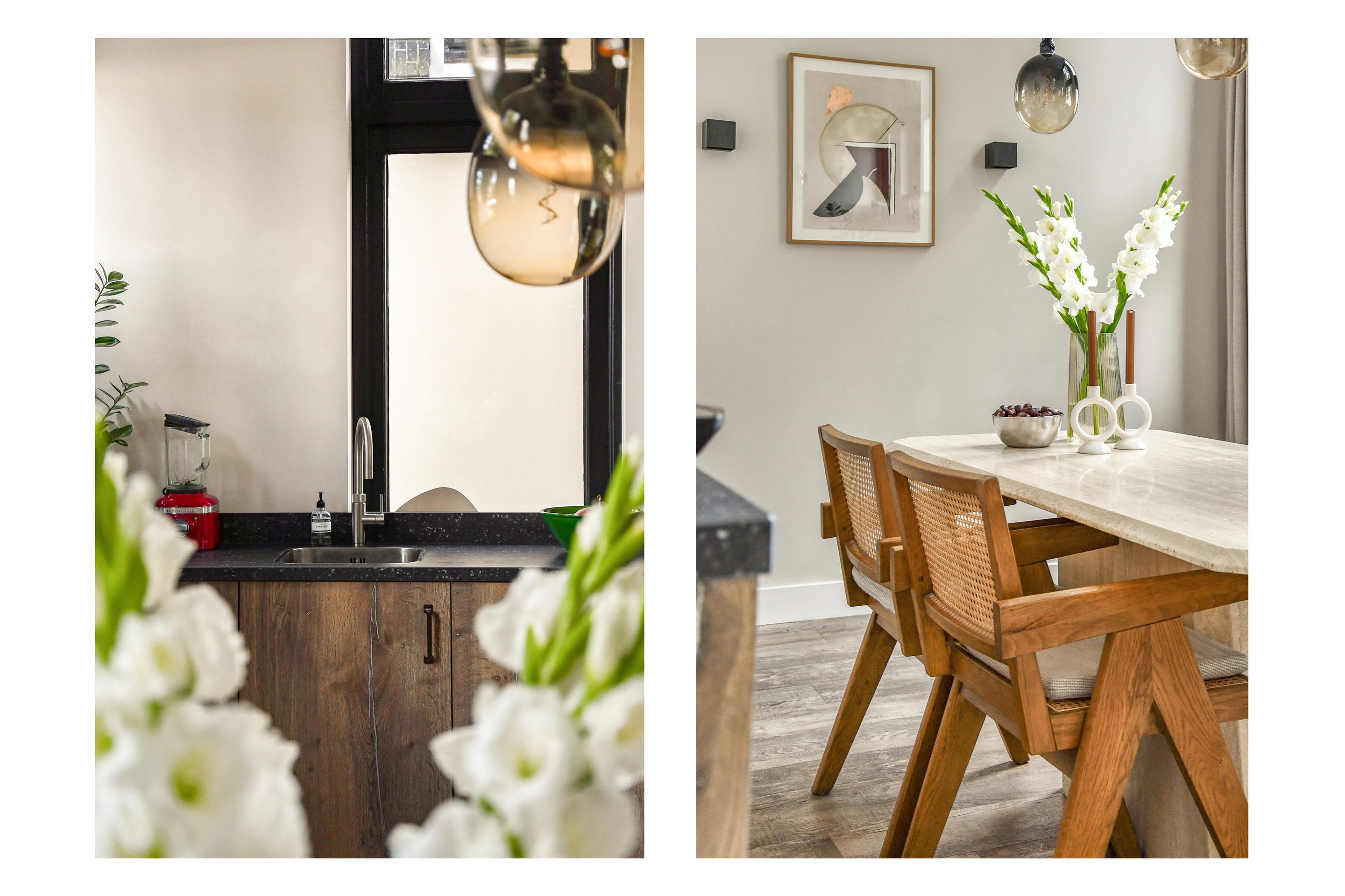 De riante living is aan de voorzijde van het woonhuis gesitueerd, met een open verbinding naar de luxe eetkeuken, welke is voorzien van luxe inbouwapparatuur.