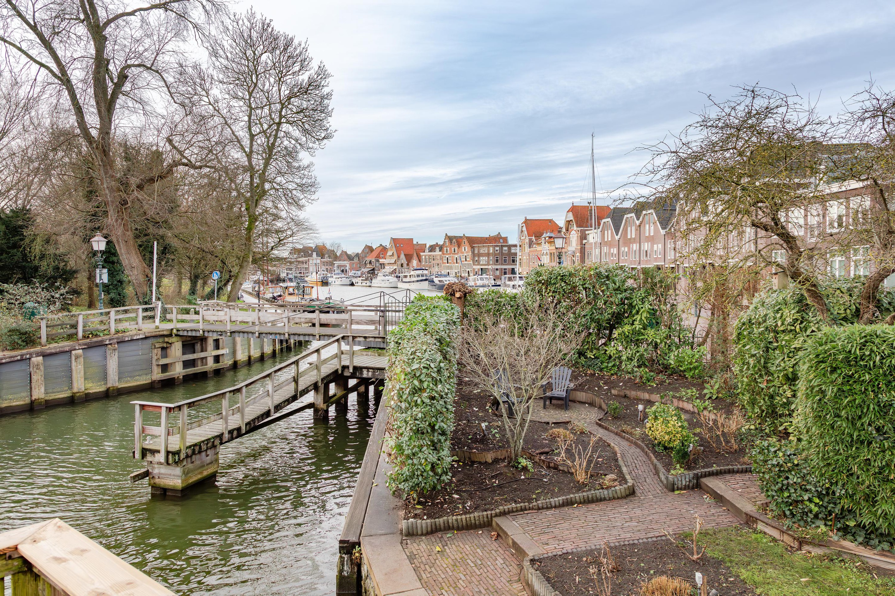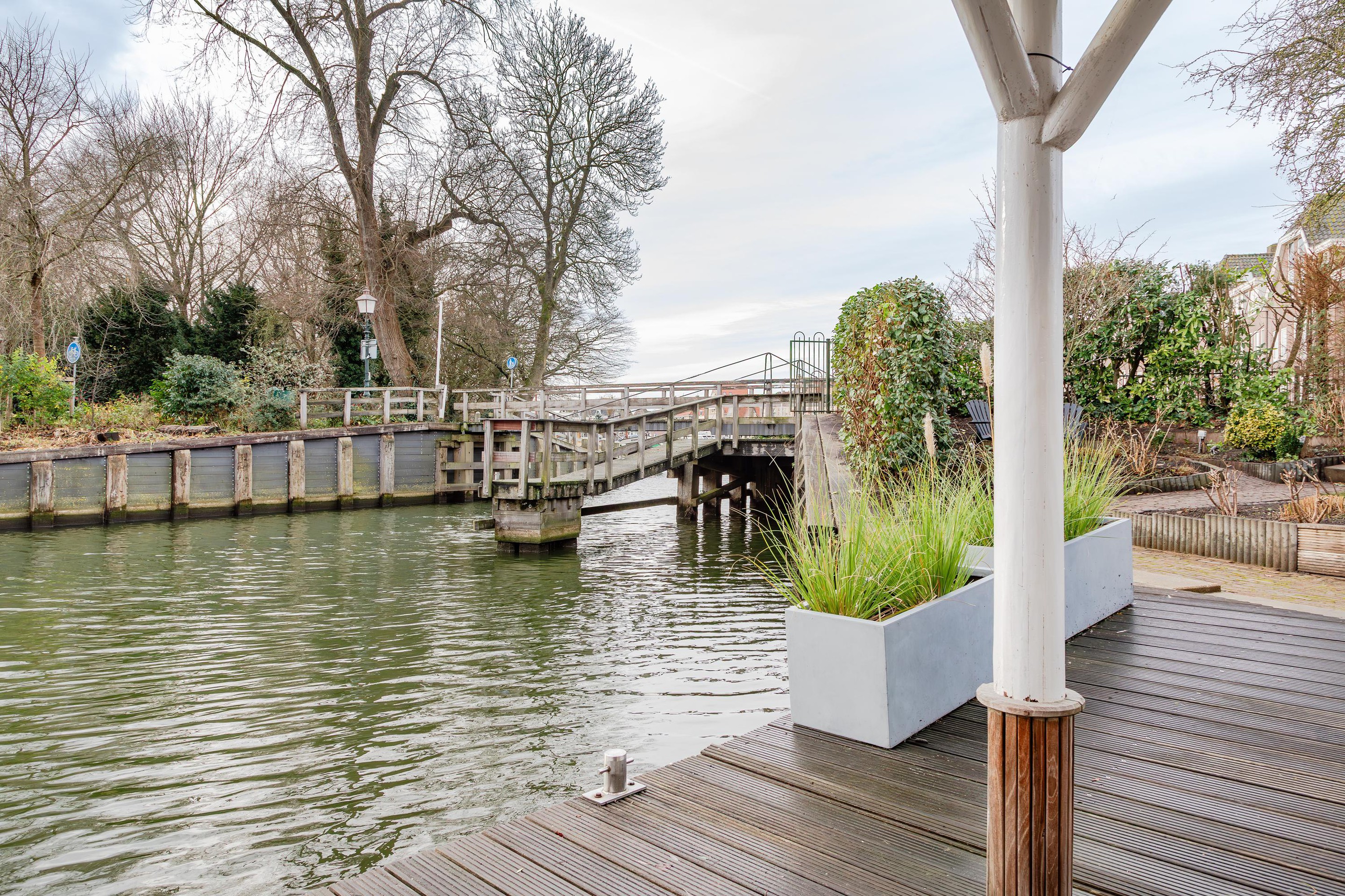 De zonnige tuin van ca. 224 m2 op het zuidwesten met een groot terras geeft zicht op het water en de gezellige haven. De tuin wordt gehuurd van de Gemeente en is onlosmakelijk verbonden aan de ligplaats van de ark.