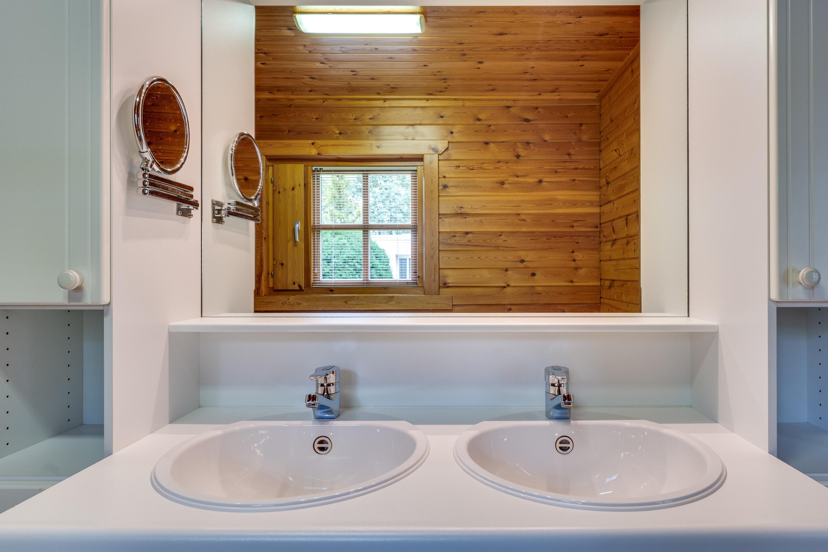 Op de begane grond bevindt zich tevens een riante slaapkamer met badkamer en suite – ideaal voor levensloopbestendig wonen. De ruime badkamer is uitgerust met ligbad, douche, dubbele wastafel met meubel, kastruimte en een extra toilet. De kamer kan ook uitstekend dienstdoen als werk- of speelkamer.