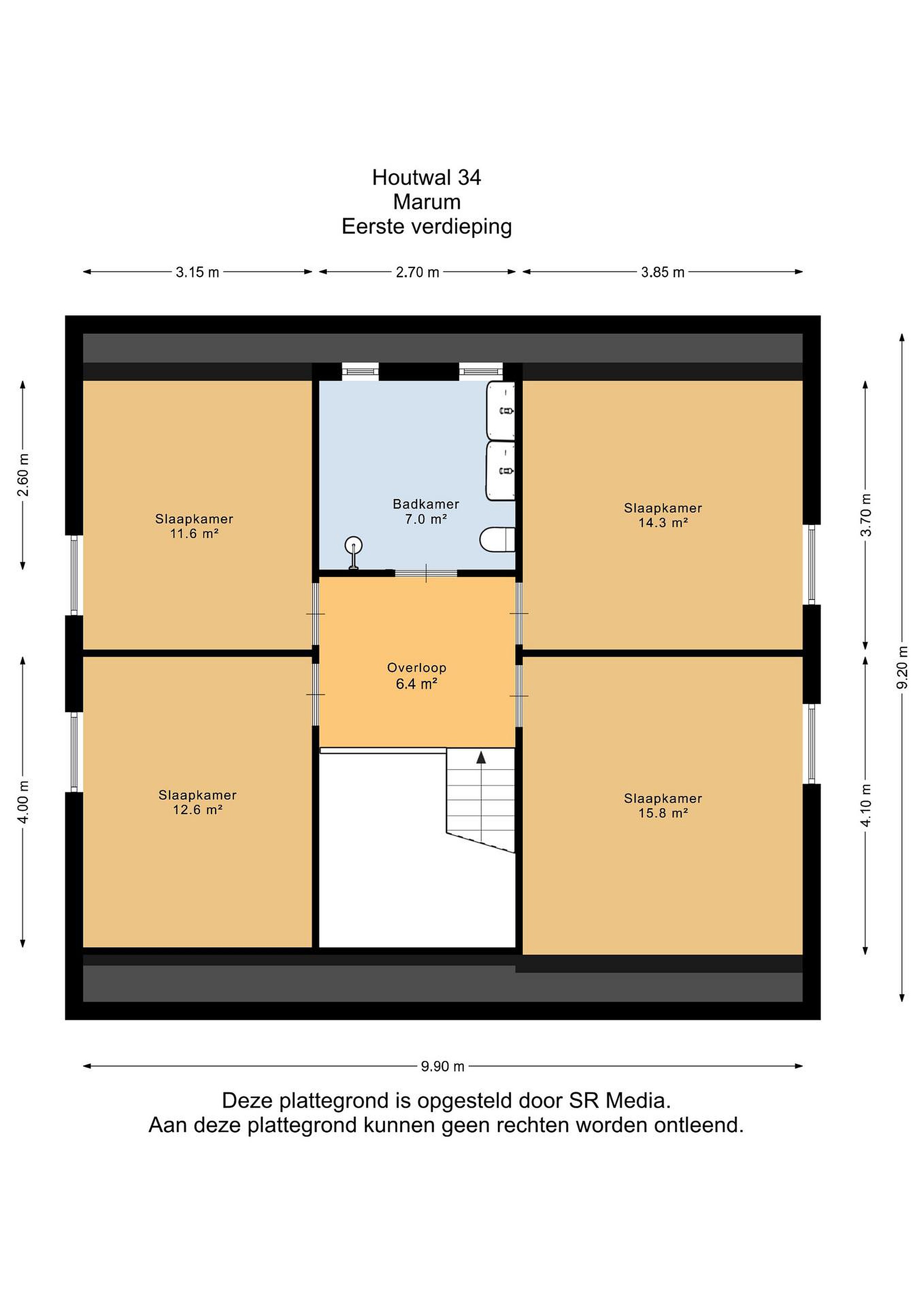 Op de eerste verdieping zijn vier ruime slaapkamers gesitueerd en de badkamer. De in 2019 vernieuwde badkamer biedt een dubbele wastafel, inloopdouche en toilet. Met royale leefruimtes is dit huis helemaal klaar voor de toekomst.