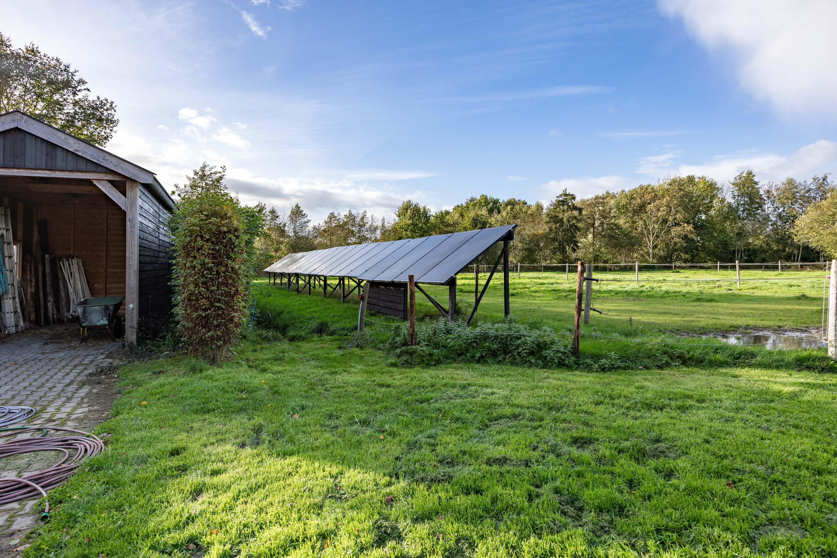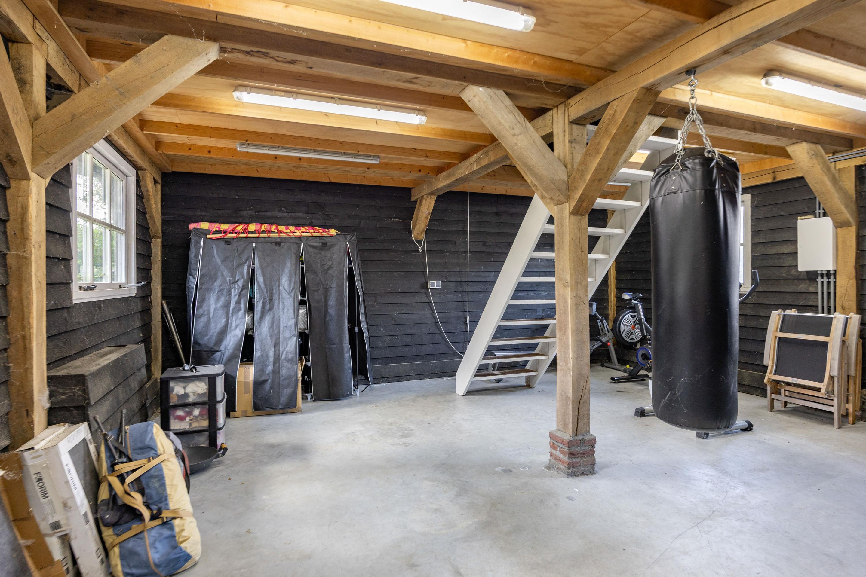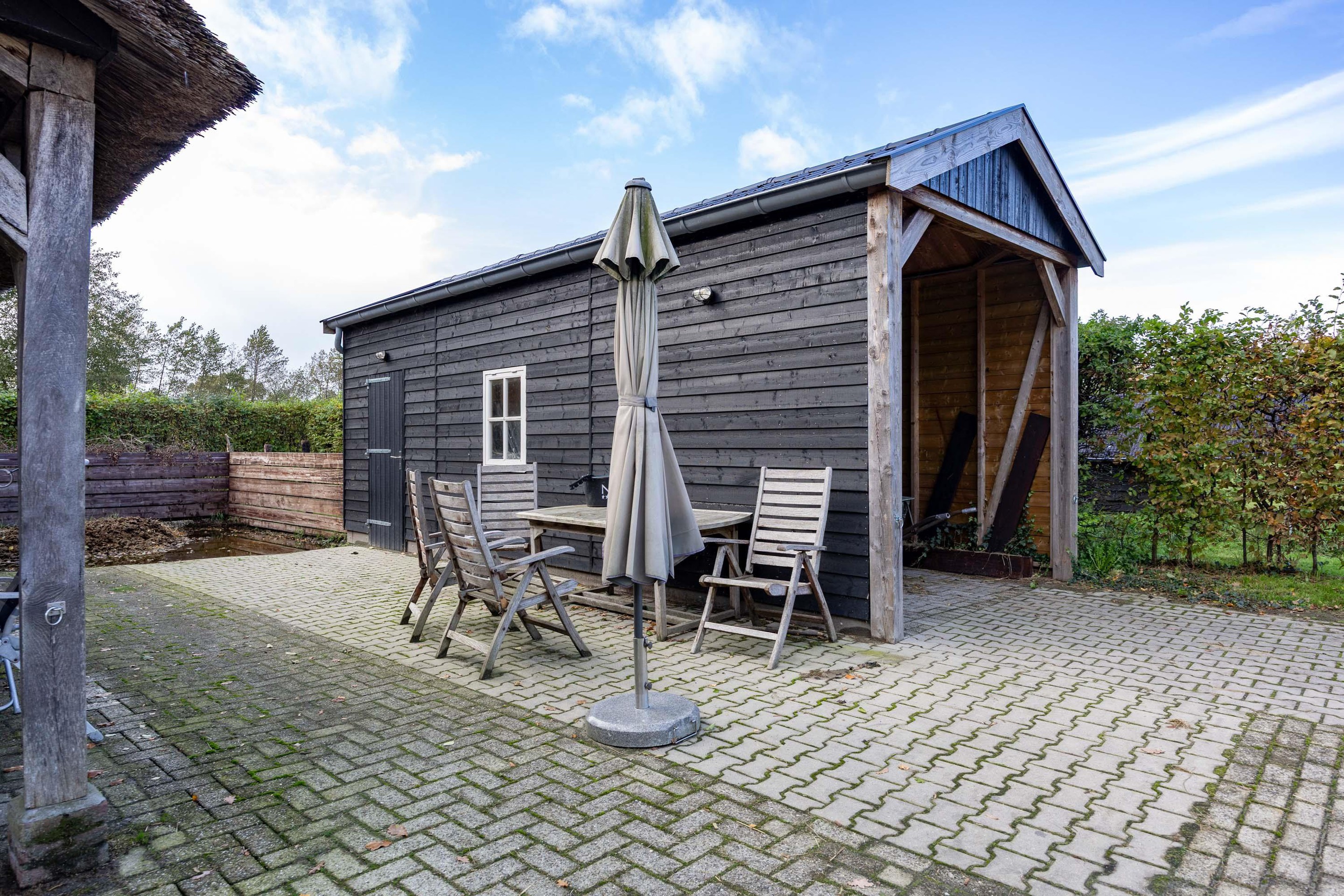 Op het erf staat een bijgebouw dat is ingevuld met vele mogelijkheden. De huidige indeling bestaat uit een praktijk- of werkruimte, een garage met berging, een zolderverdieping en maar liefst vier paardenboxen en zadelkamer. Er is zelfs een paarde douche aangelegd. Ideaal voor de paardenliefhebber, de ondernemer aan huis of degene die droomt van eigen atelier of studio.