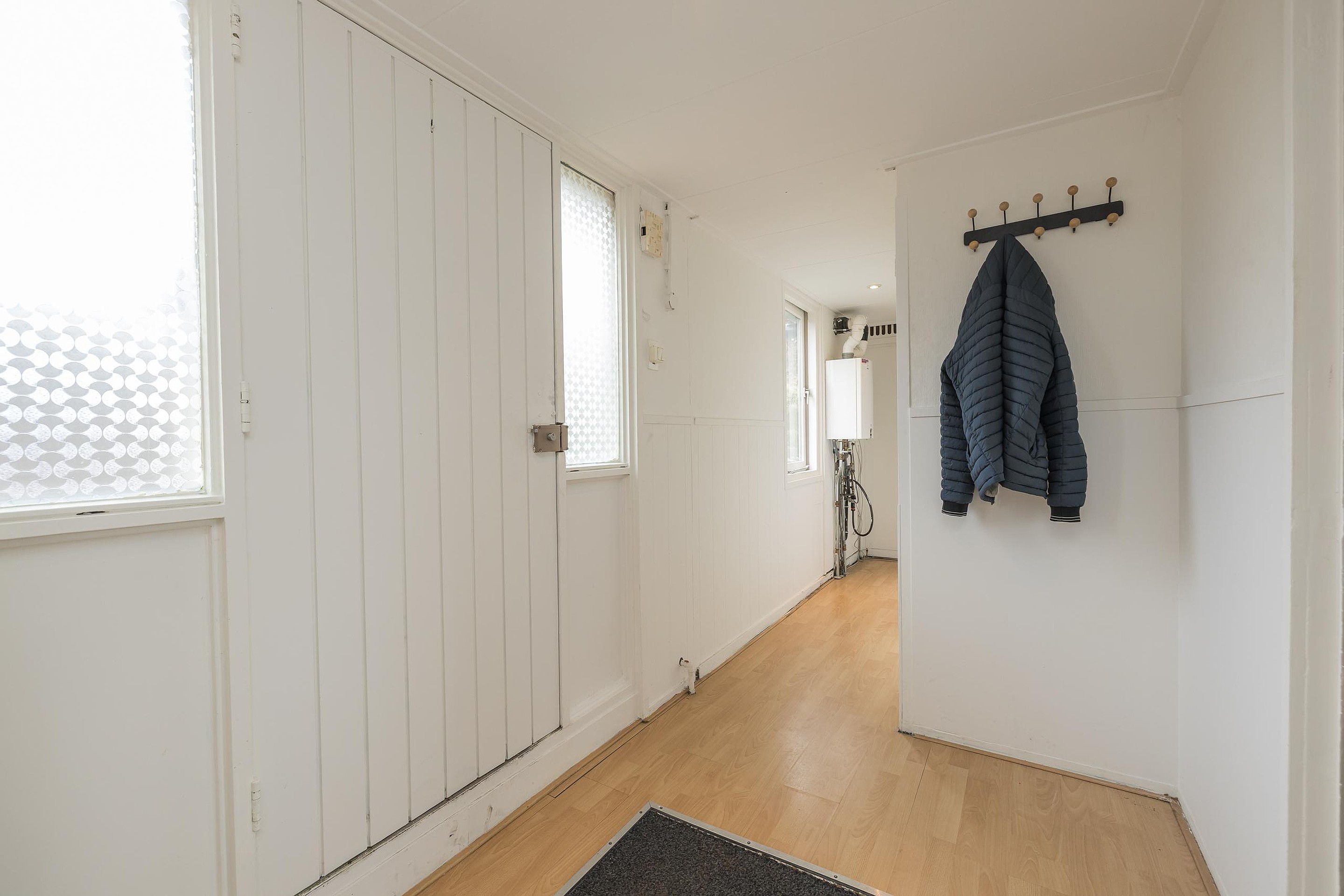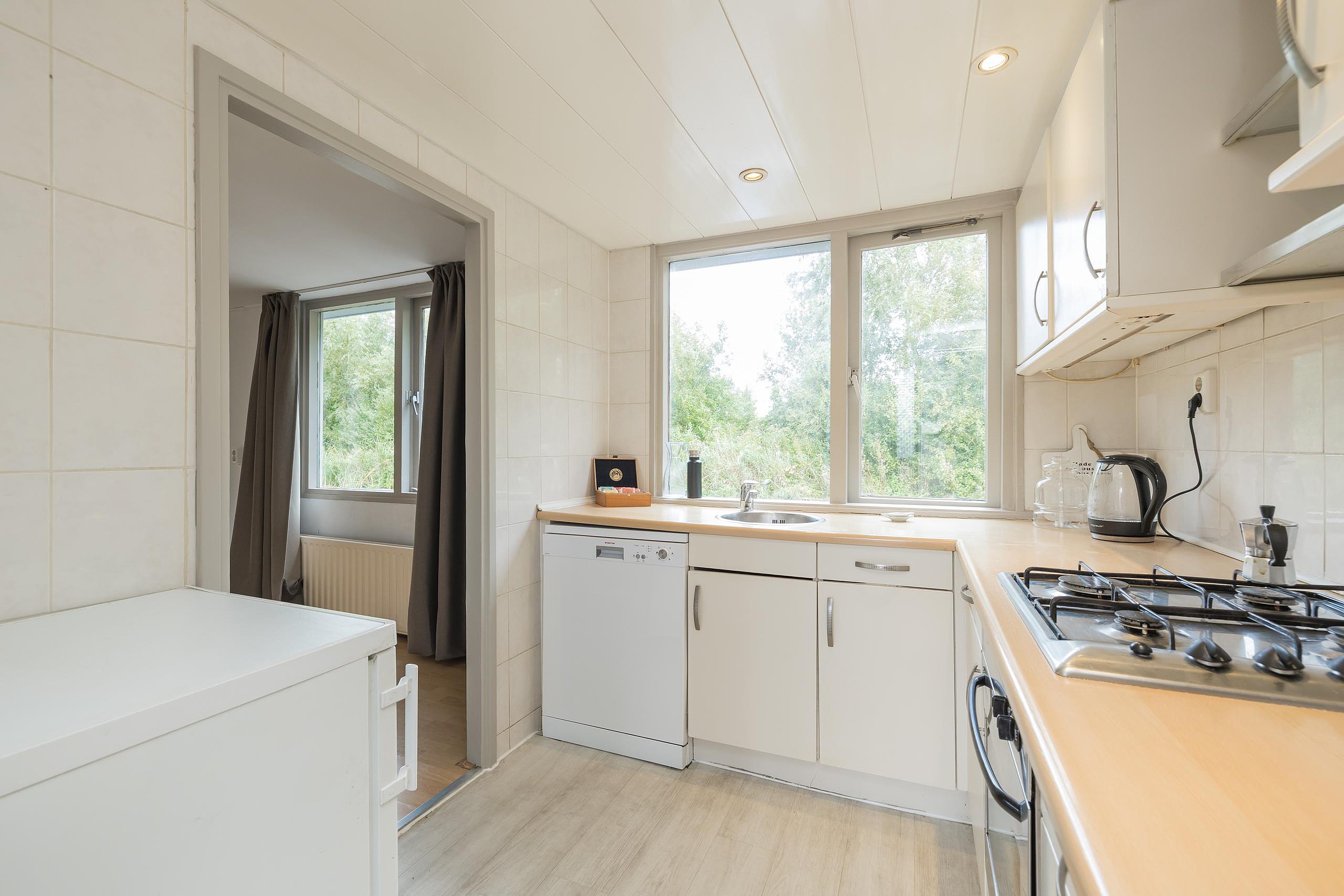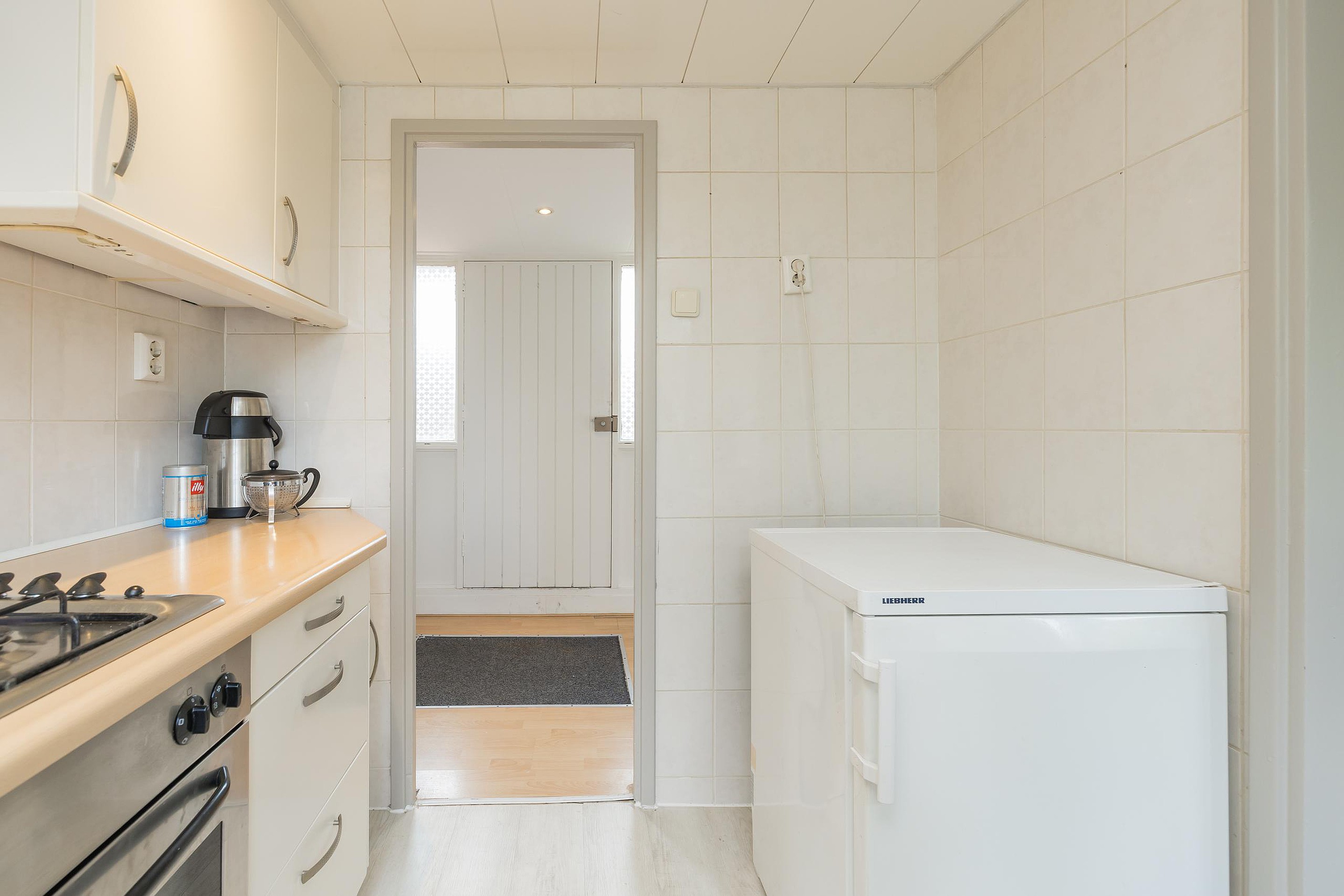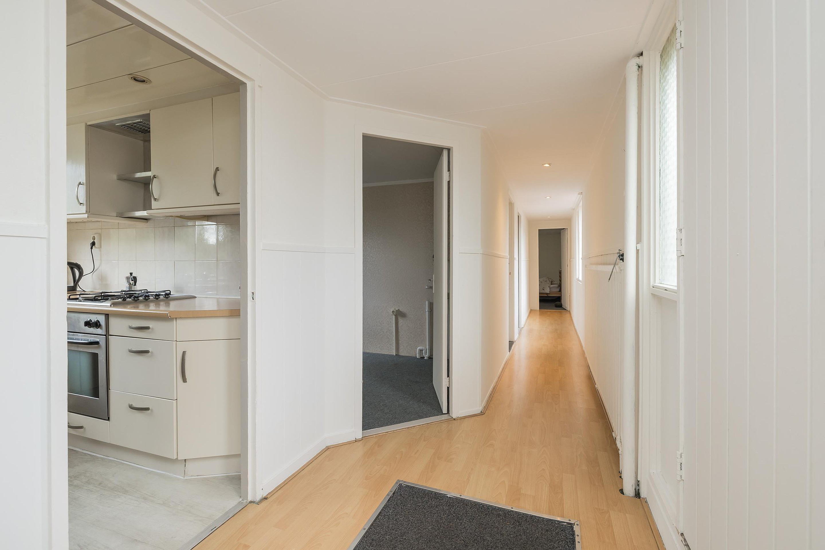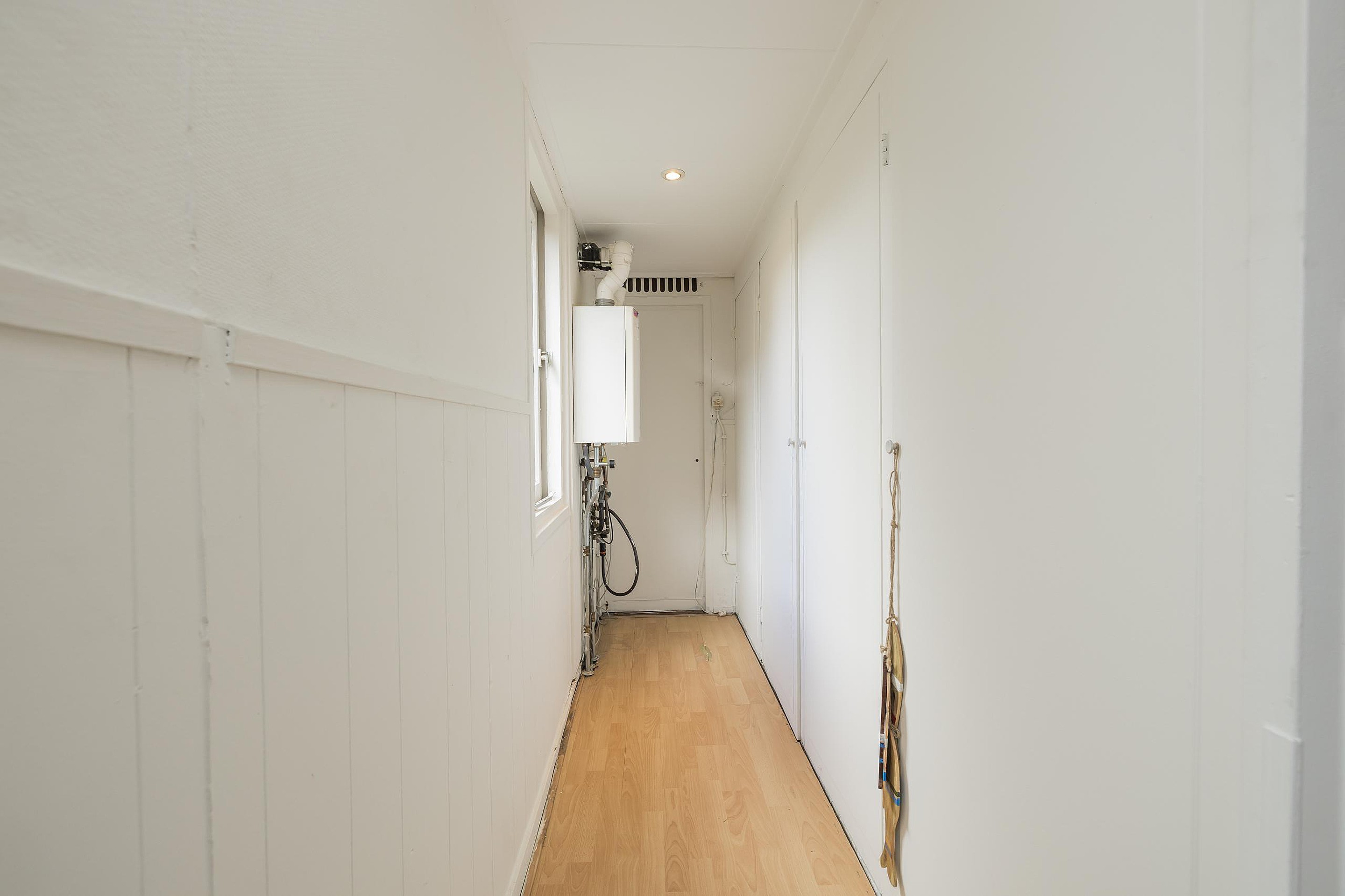 Begane grond Entree, een grote hal met veel ingebouwde kastruimte met daarin de meterkast en de CV-ketel. De woonkamer is riant en heeft een prachtig uitzicht naar alle kanten. De woonkamer is volledig voorzien van een laminaatvloer. De keuken is eenvoudig en heeft een vaatwasser, een oven en een 4-pits gaskookplaat en ingebouwde verlichting. Via de lange gang bereikt u de eerste slaapkamer met de aansluitingen voor de wasapparatuur. De in lichte kleuren uitgevoerde badkamer heeft een inloopdouche, een wandcloset, een wastafel en een handdoekradiator. De ruime derde slaapkamer heeft ingebouwde kastruimte en een toiletruimte met een wastafelmeubel.