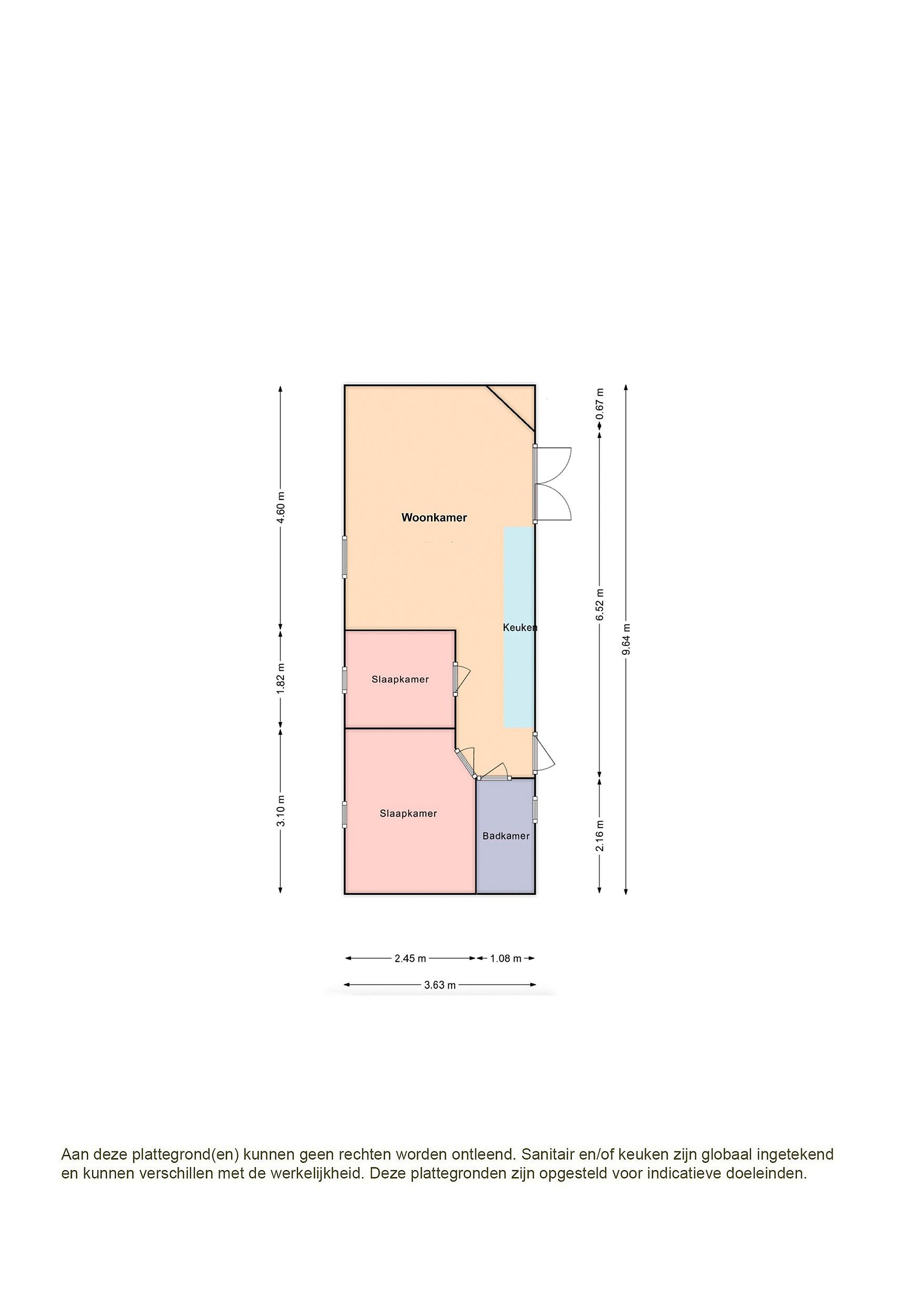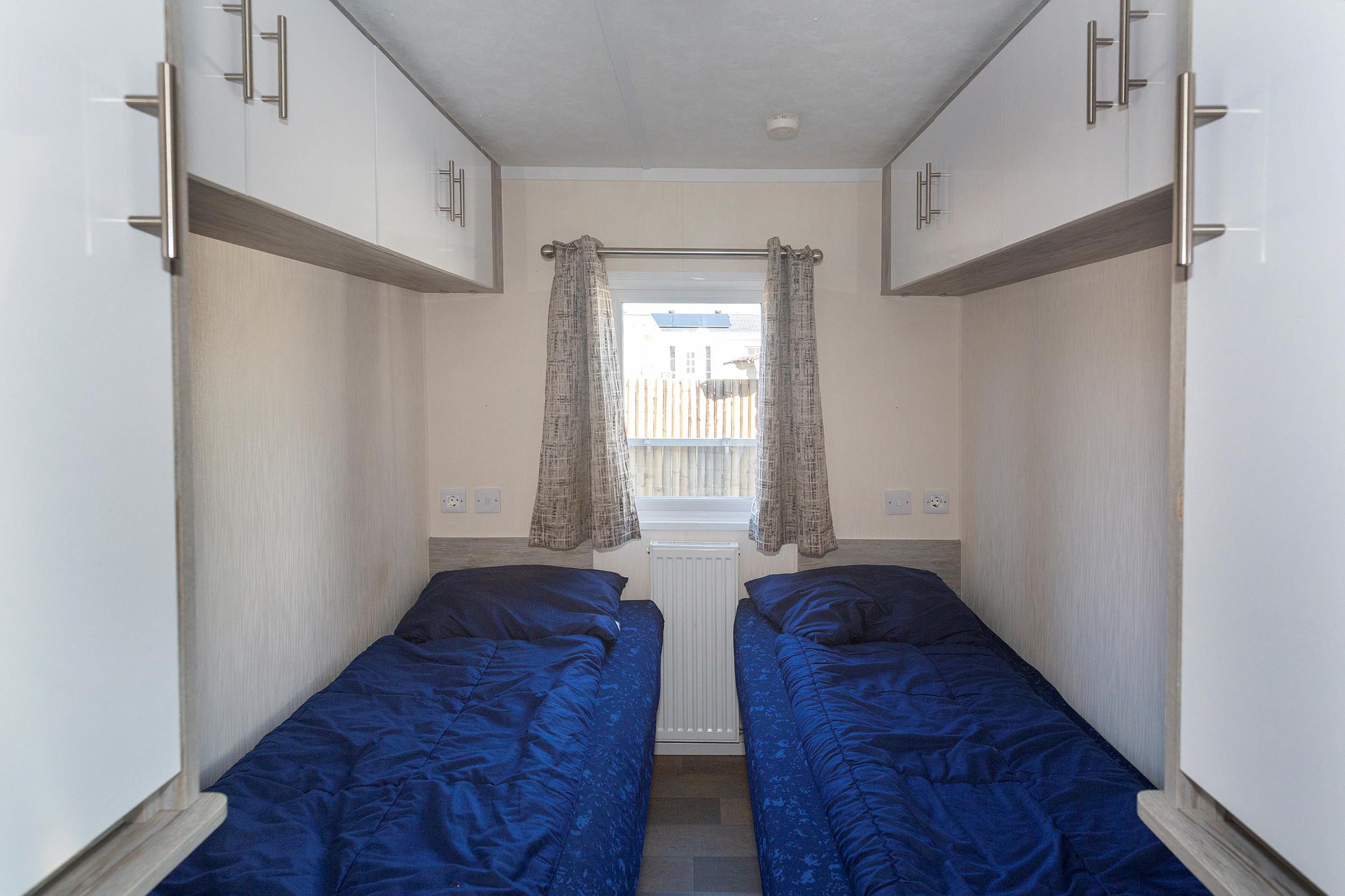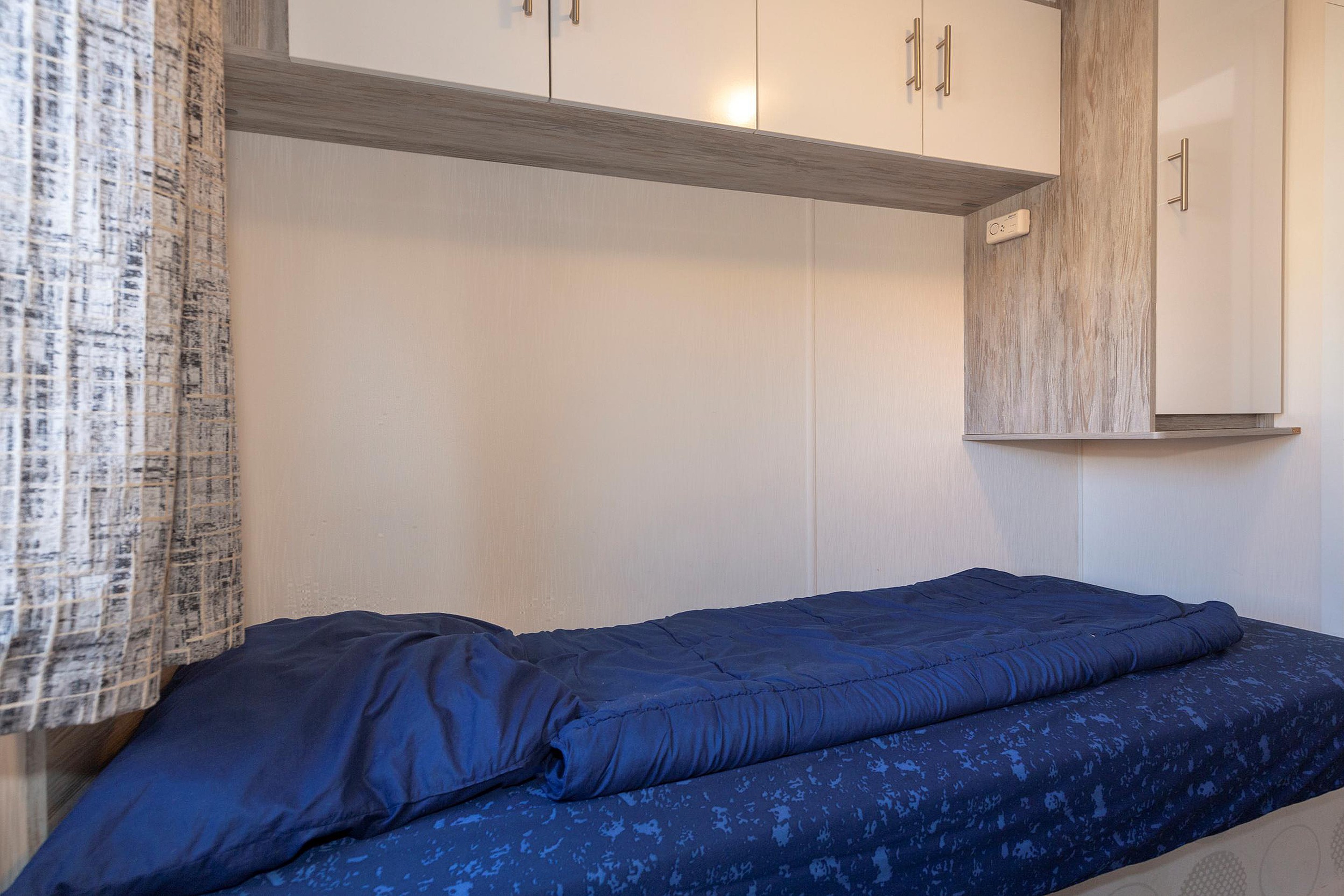 Er zijn twee comfortabele slaapkamers, waarvan één geschikt is voor een tweepersoonsbed en de andere voor een stapelbed of twee losse bedden. De badkamer is voorzien van een douche, toilet en wastafel.