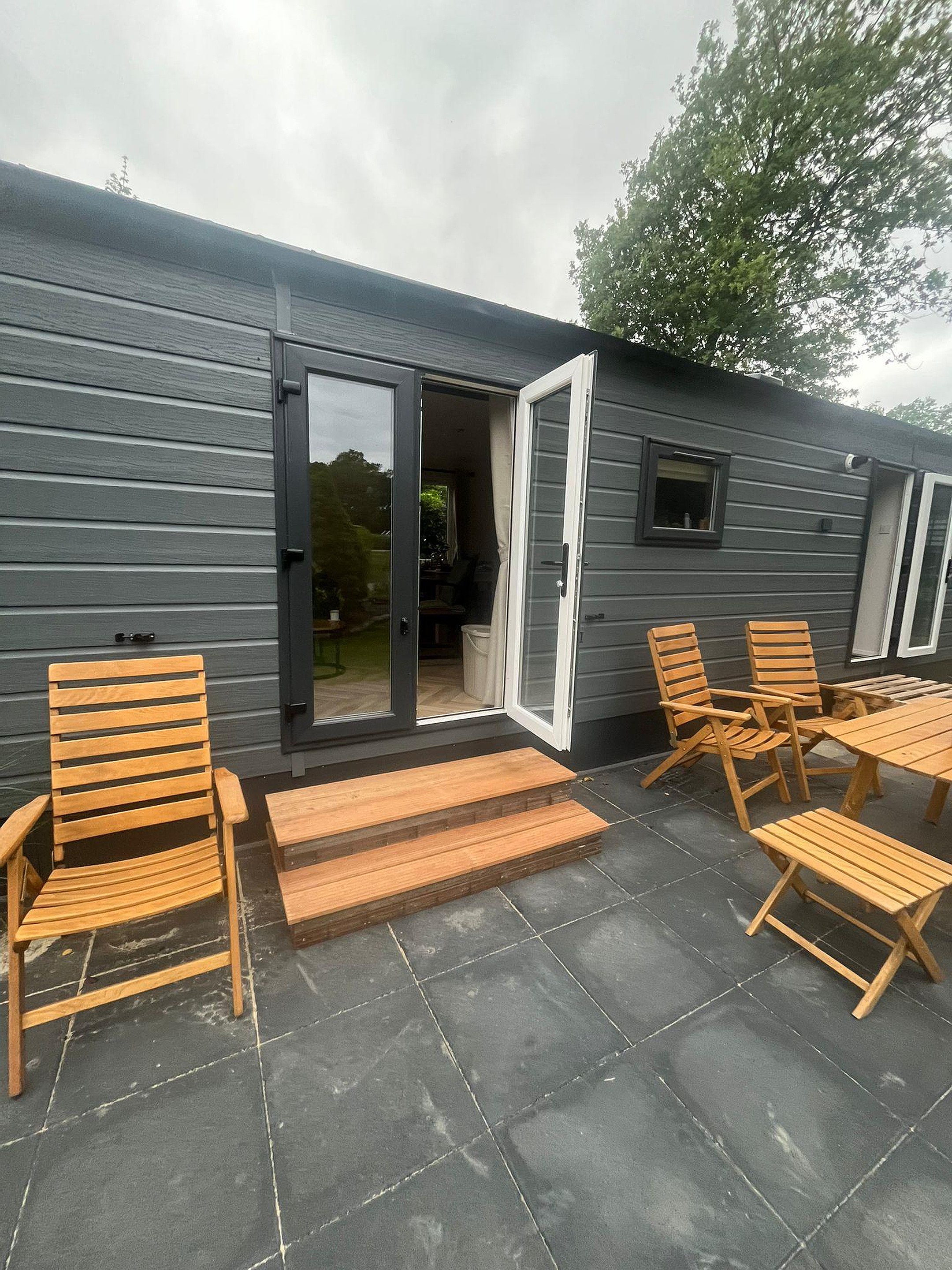 - veel ruimte voor het chalet, alsmede een groot zonnig terras (met tuinmeubelen)