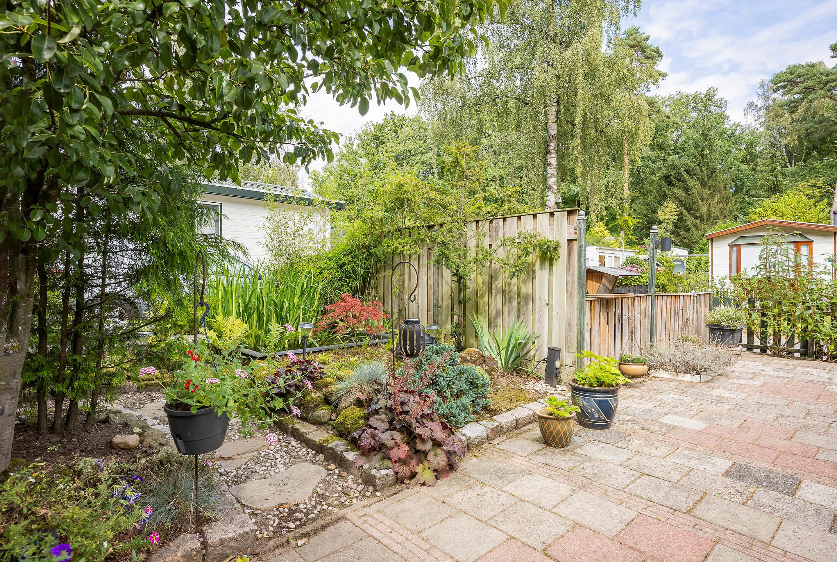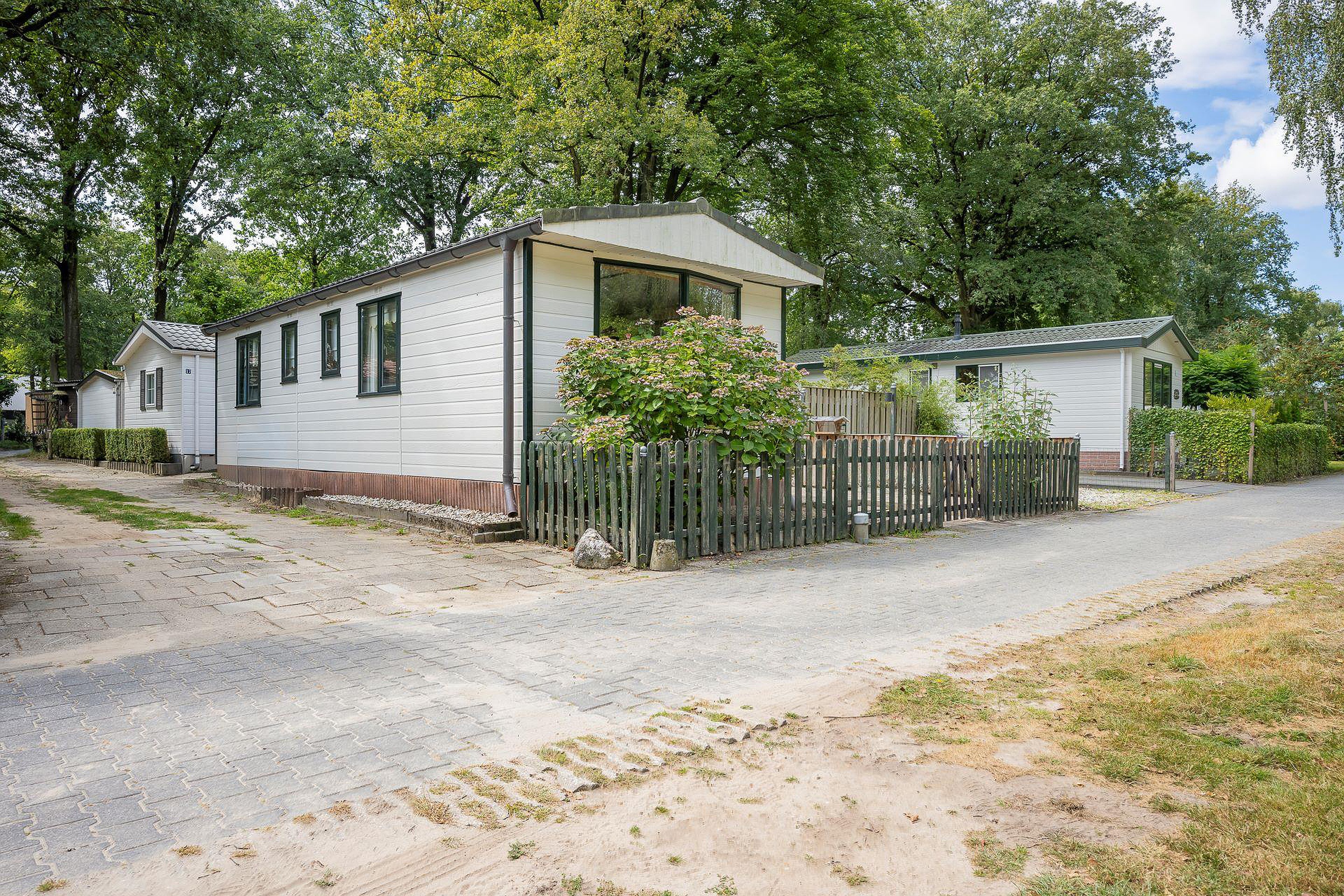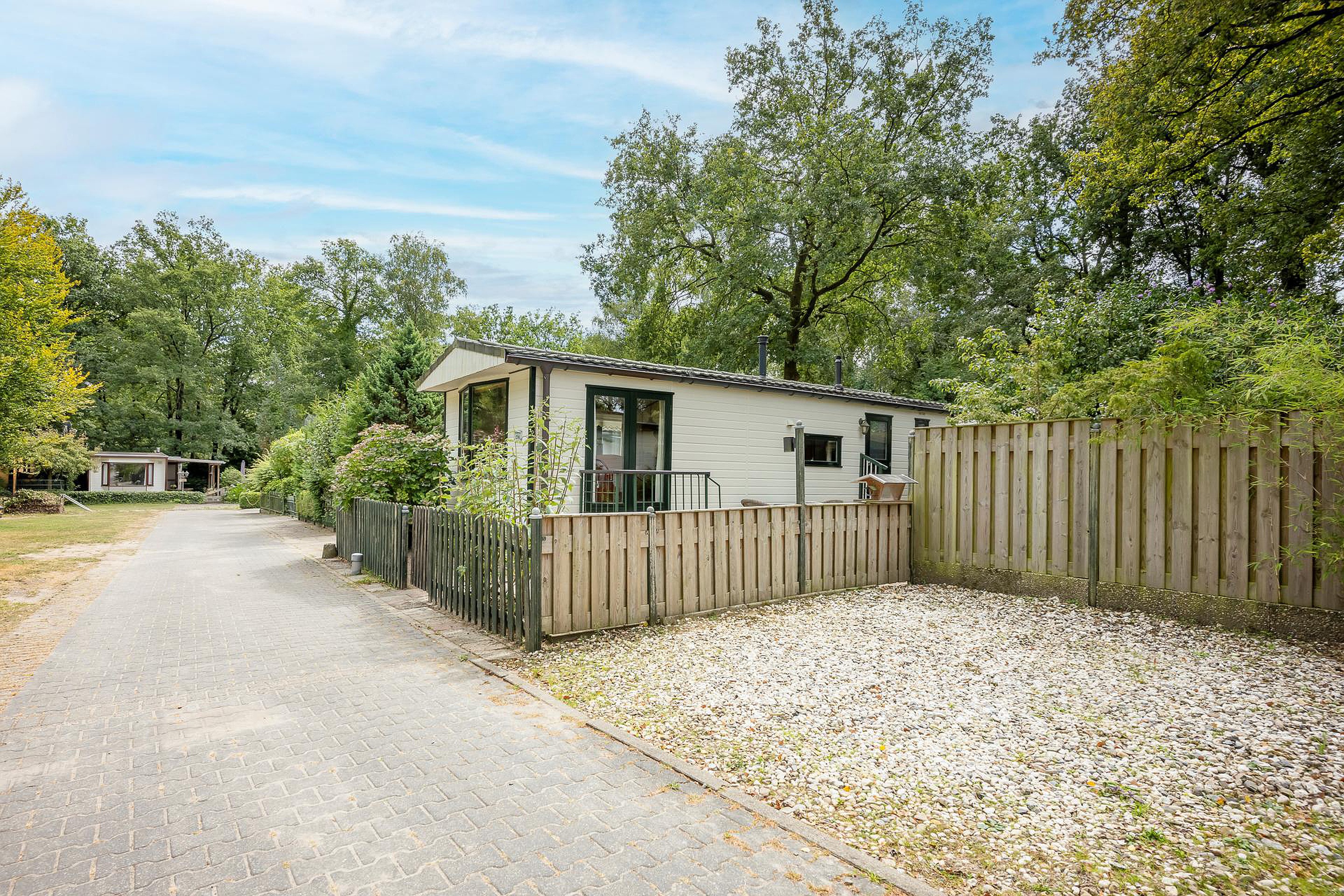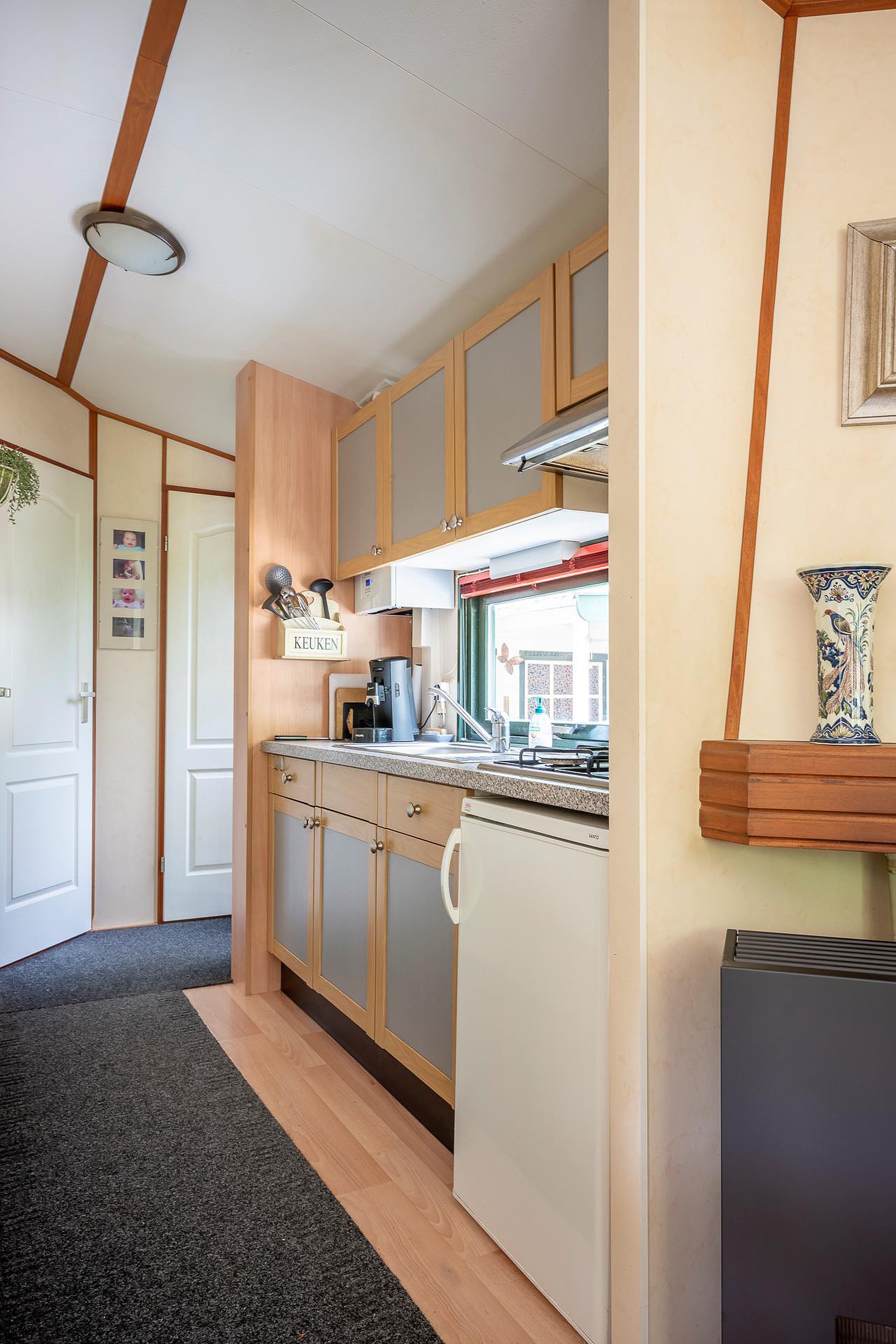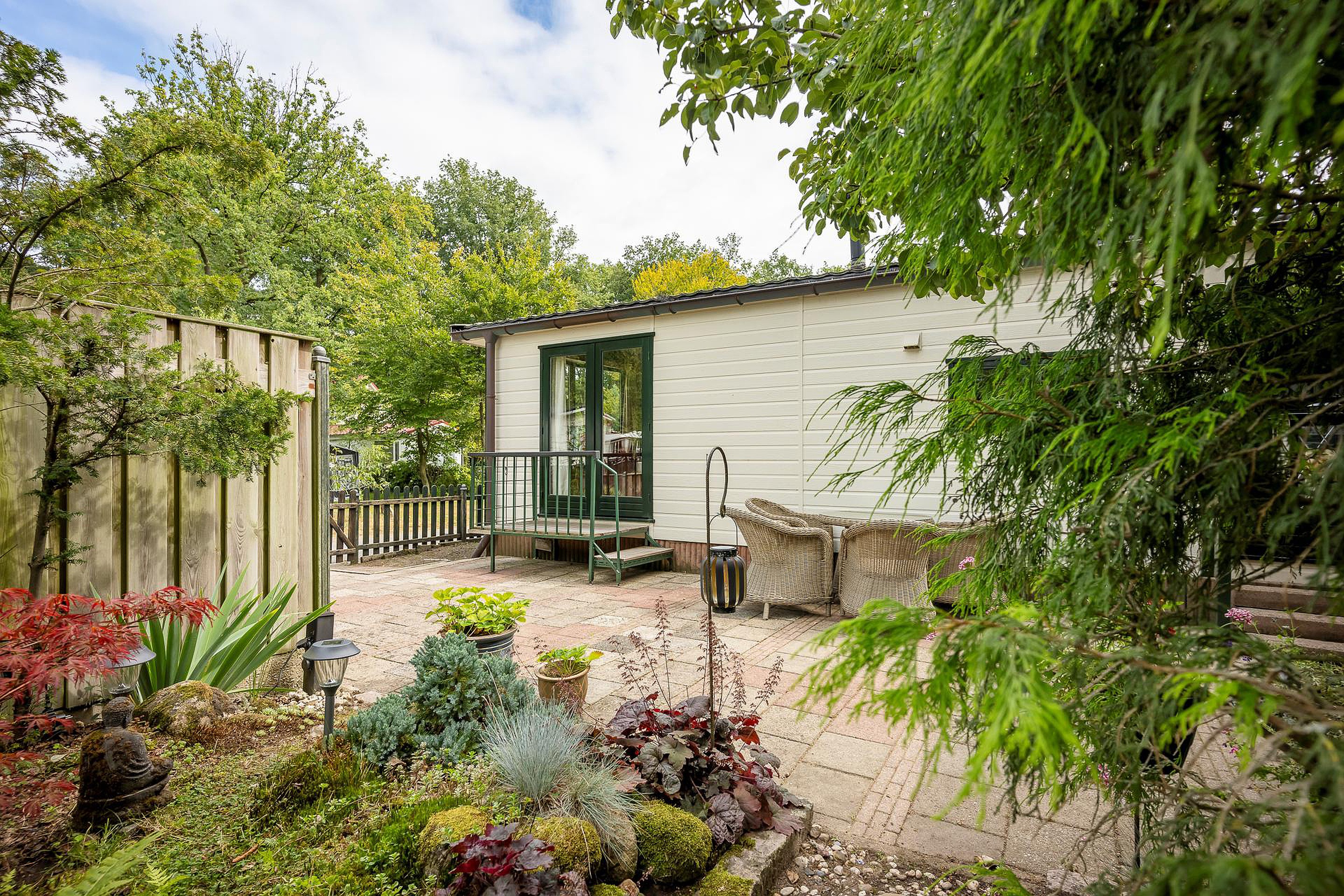 Begane grond naast de eigen parkeerplaats loop je door het hek naar zijkant chalet, opstap naar entree met garderobe-nis, 1 grote slaapkamer incl. vaste kast en 1 kleinere slaapkamer met 2 bedden en vaste kast, badkamer met douche-instap, toilet en wastafelmeubel/spiegel, keukeninrichting met 4-pits gaskookplaat en wasemkap, koelkast, geiser (Vaillant 2024), mooie living met gashaard en vrij nieuwe meubels, openslaande terrasdeuren (hardhout), erker aan voorzijde, vrijstaande tuinberging met overkapping.