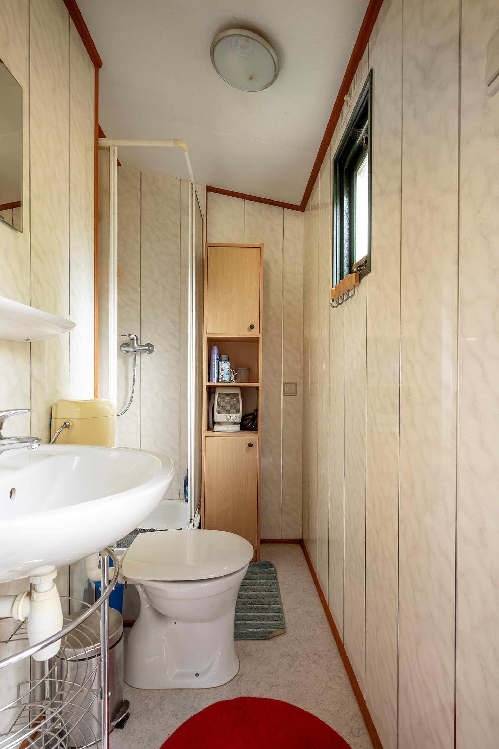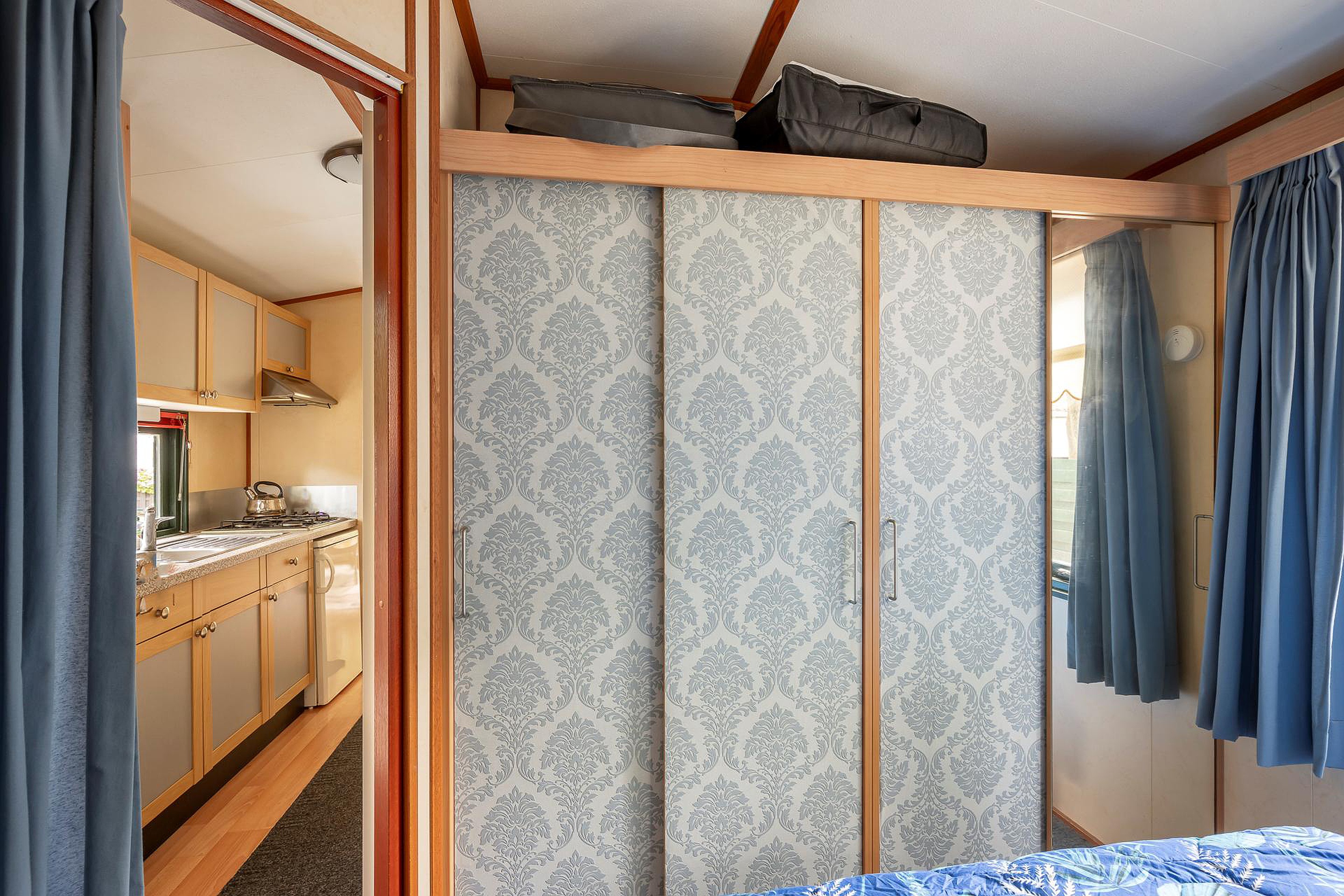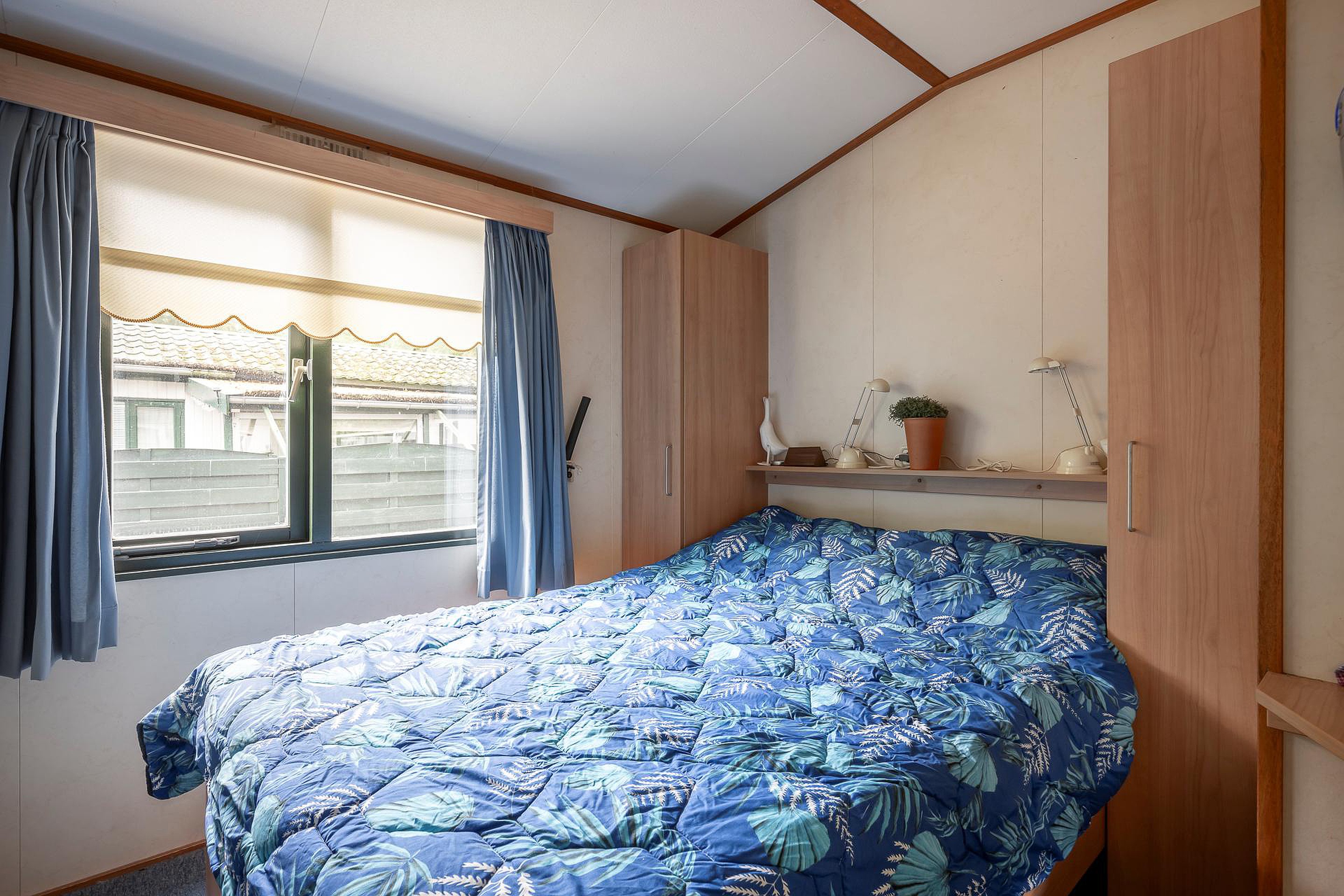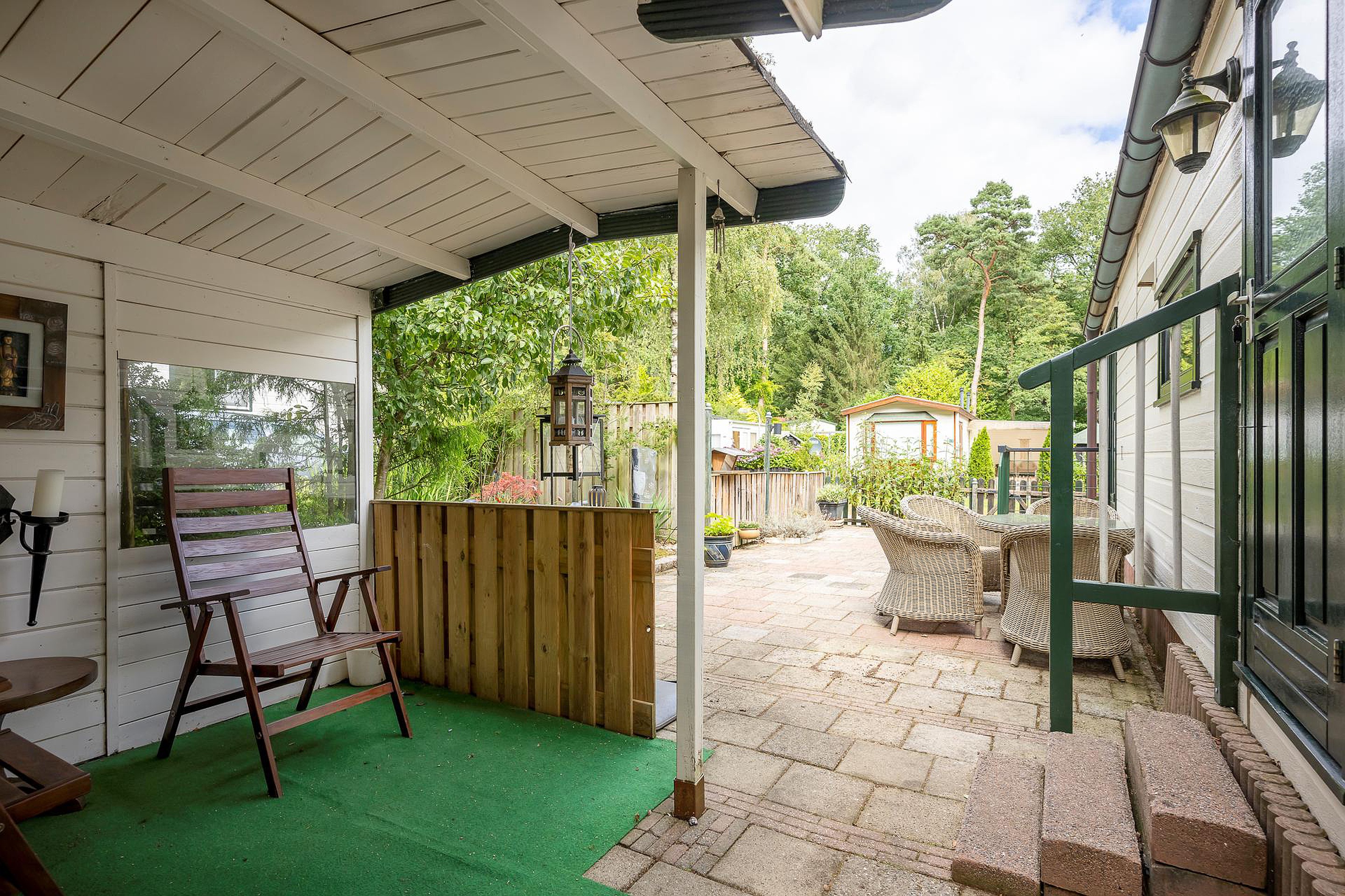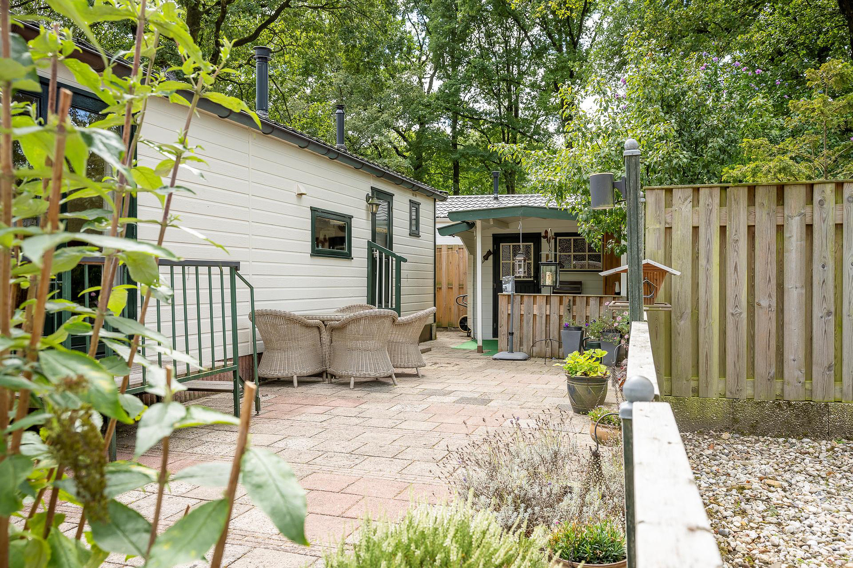 Begane grond naast de eigen parkeerplaats loop je door het hek naar zijkant chalet, opstap naar entree met garderobe-nis, 1 grote slaapkamer incl. vaste kast en 1 kleinere slaapkamer met 2 bedden en vaste kast, badkamer met douche-instap, toilet en wastafelmeubel/spiegel, keukeninrichting met 4-pits gaskookplaat en wasemkap, koelkast, geiser (Vaillant 2024), mooie living met gashaard en vrij nieuwe meubels, openslaande terrasdeuren (hardhout), erker aan voorzijde, vrijstaande tuinberging met overkapping.
