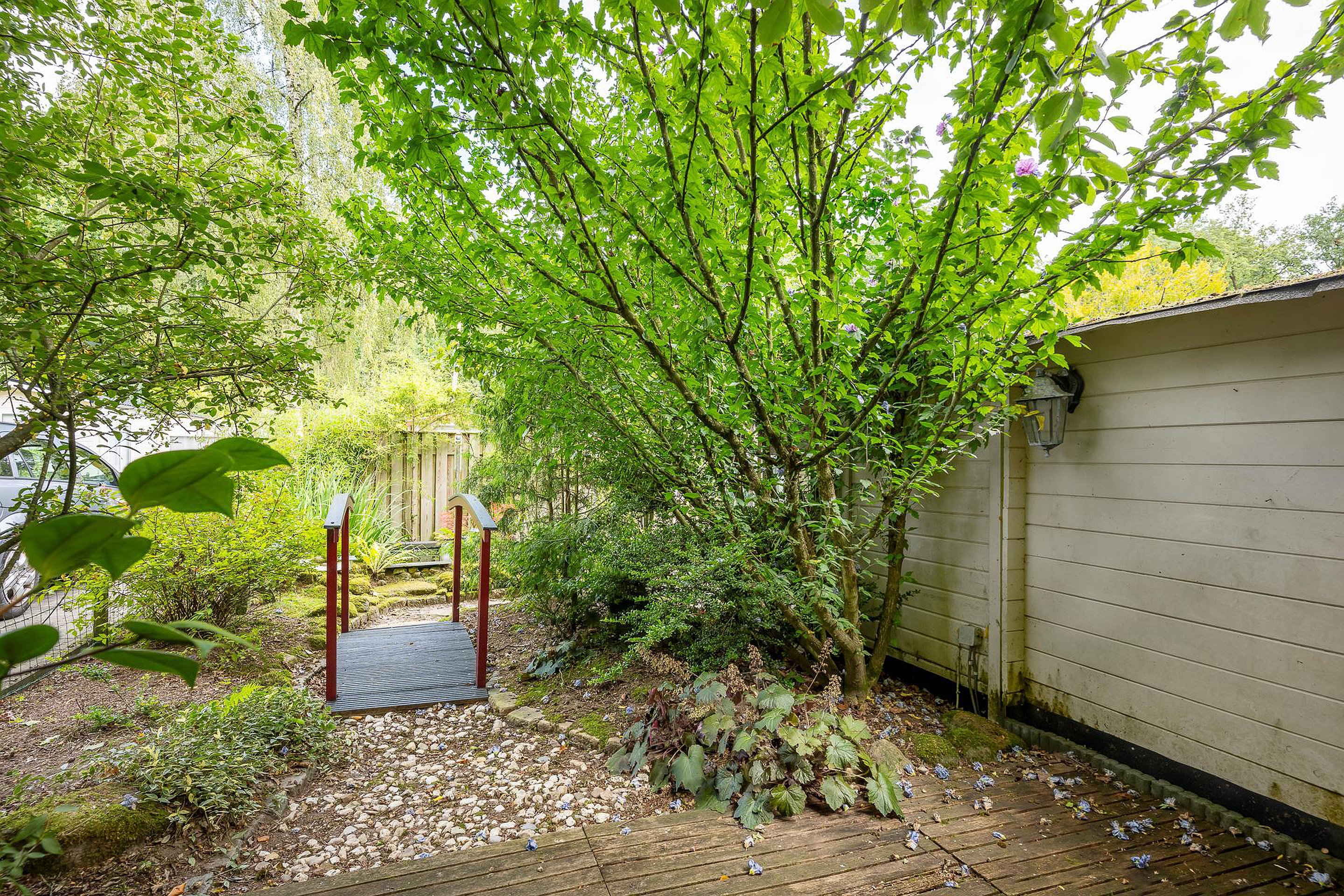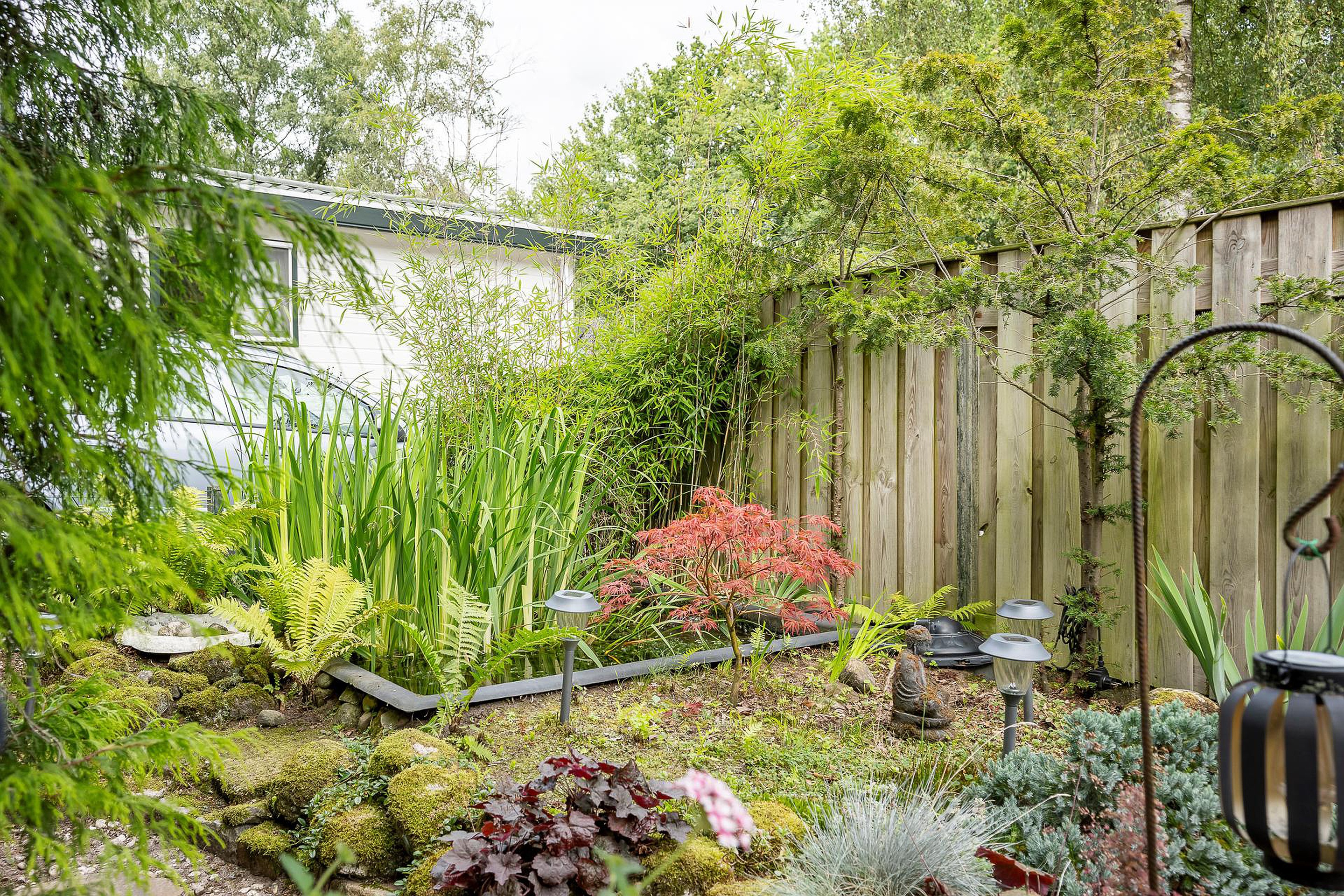 Tuin De onderhoudsvriendelijk aangelegde tuin op het zuidwesten gericht is aan de zijkant gelegen; vanaf het terras is het genieten van de rust met de vijver in zicht en de stilte van het natuurschone buitengebied.