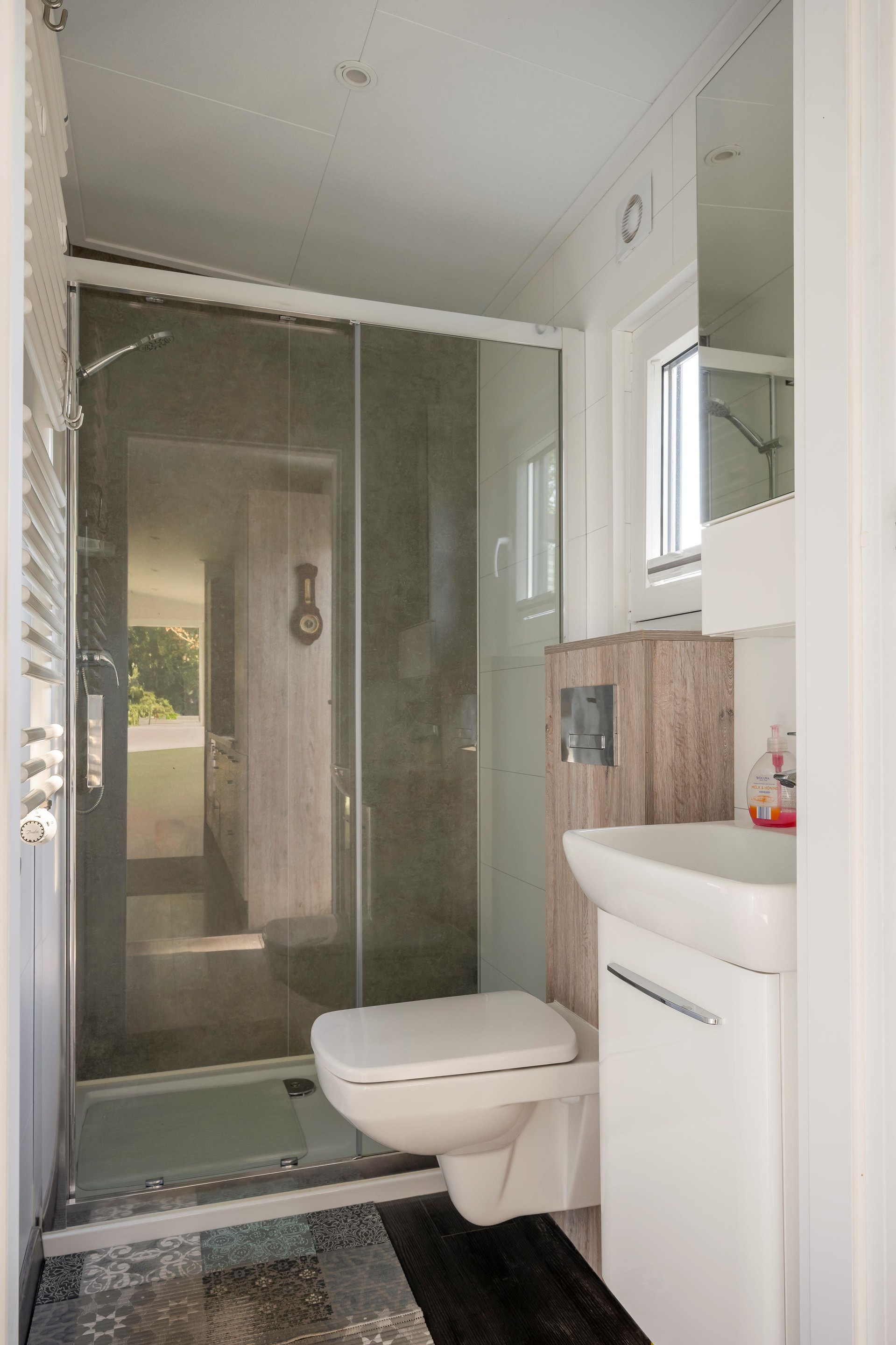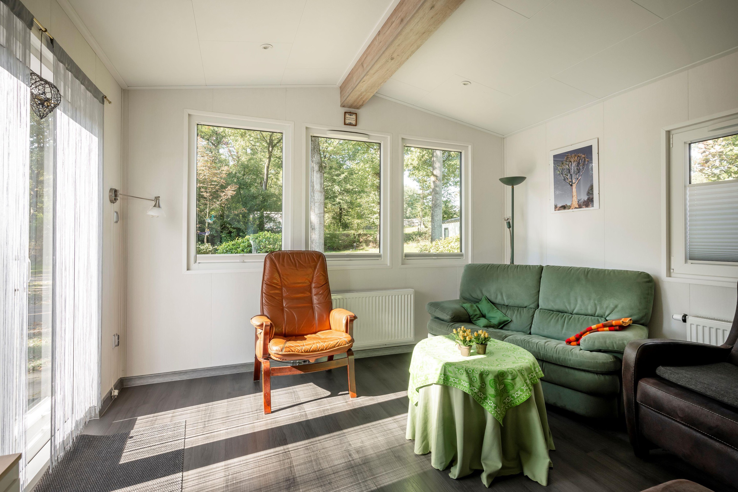 - het is een kwalitatief duurzaam chalet (merk Dahlmann), van kunststof kozijnen gemaakt en met stalen dakpanprofielen gedekt