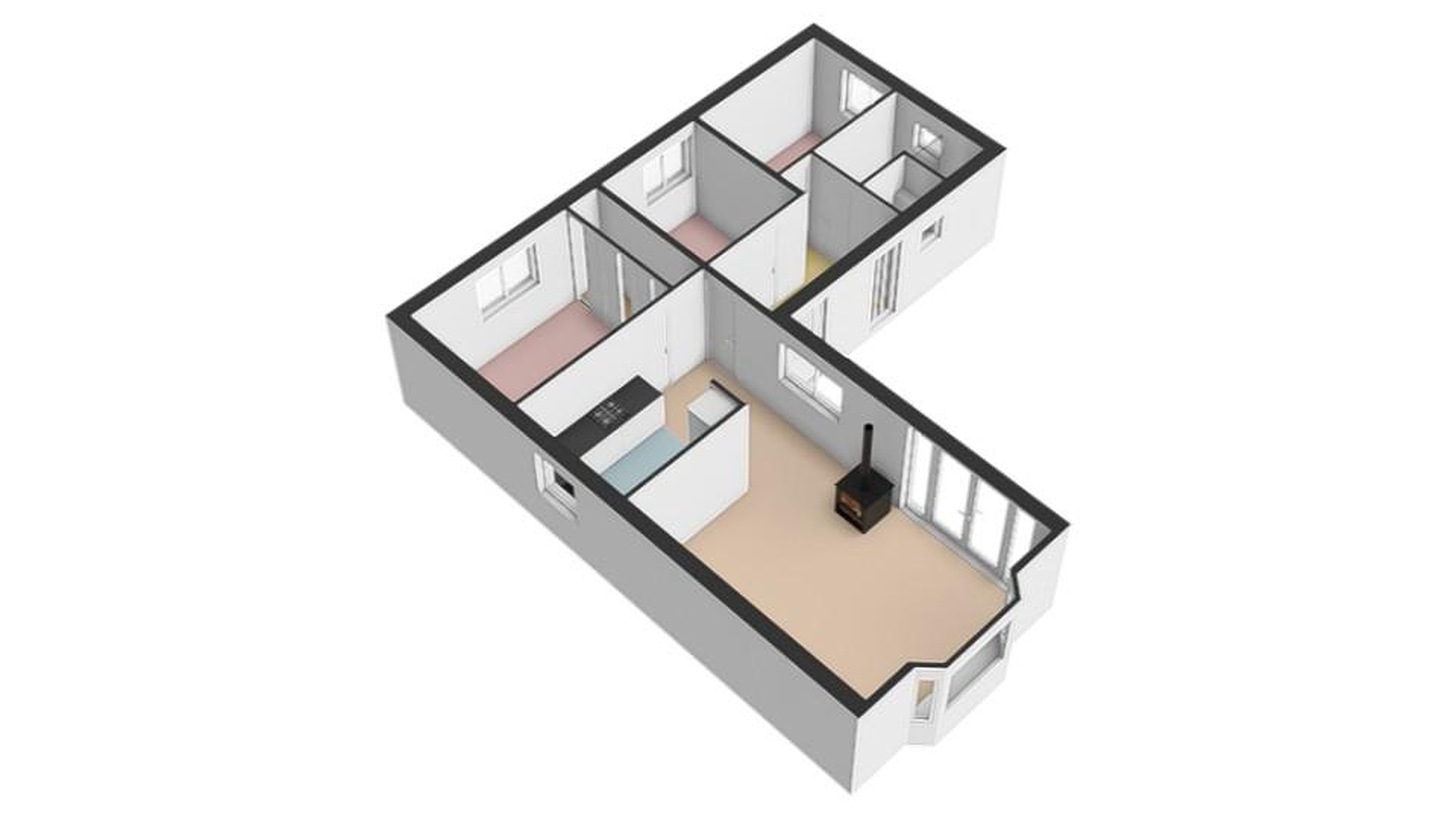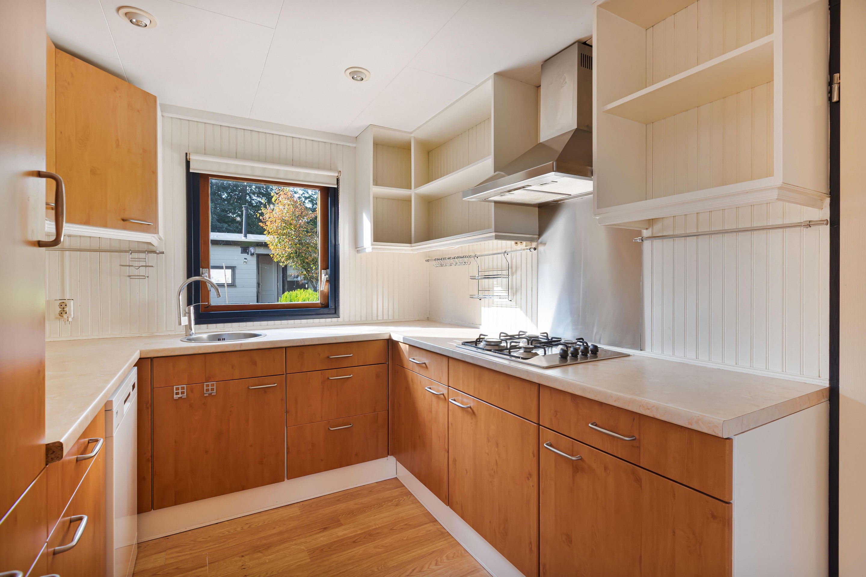 Het chalet is ruim van opzet en ingedeeld met een lichte woonkamer voorzien van openslaande deuren, een palletkachel en airconditioning. De U-vormige keuken is functioneel ingericht en beschikt over diverse inbouwapparaten. Verder zijn er drie slaapkamers, wat het chalet geschikt maakt voor gezinnen of voor wie graag gasten ontvangt. De badkamer is netjes en compleet uitgevoerd.