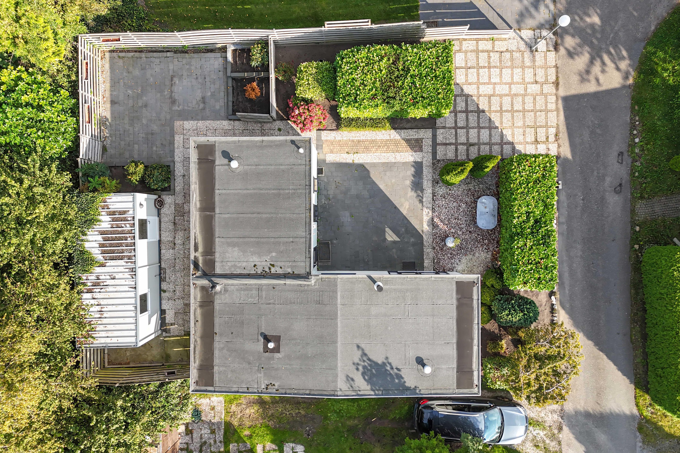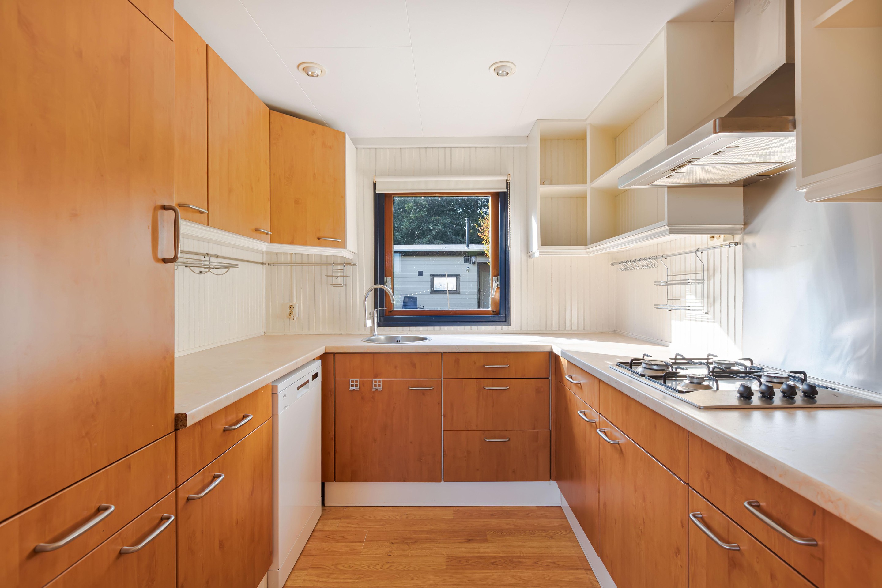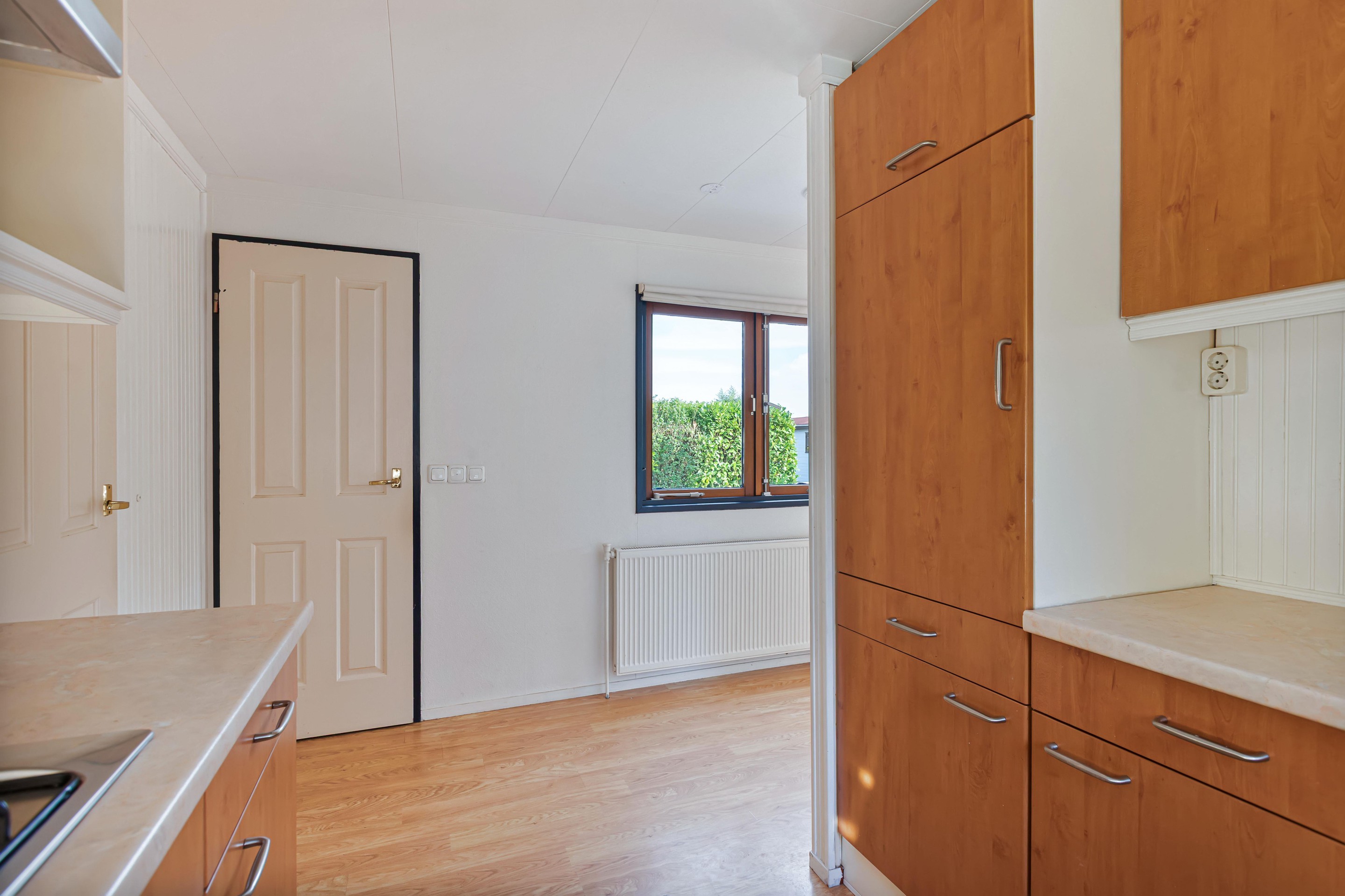 De tuin rondom biedt volop ruimte om buiten te zitten of te tuinieren, en de onderhoudsvriendelijke kunststof berging met witgoedaansluitiing is handig voor het opbergen van fietsen of tuingereedschap.