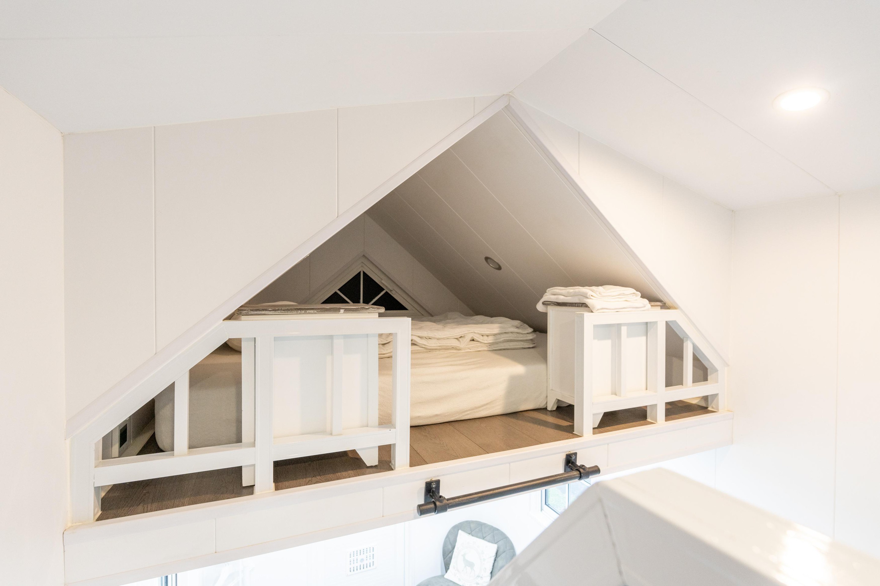 Dit gezellige Tiny House verwelkomt je met een lichte woonkamer en open keuken, waardoor de ruimte optimaal wordt benut. Met overvloedig natuurlijk licht en een doordachte indeling voelt de woonruimte uitnodigend aan. Een subtiele trapopgang leidt naar de knusse slaapruimte voor twee personen. De andere slaapruimte kan bereikt worden middels een vaste ladder. Tevens is er een separate badkamer met toilet. De efficiënte indeling maakt dit vakantieverblijf op de Friese Wadden tot een comfortabele en praktische plek om te ontspannen. De woning is voorzien van kunststof kozijnen en gedeeltelijk van vloerverwarming. Cv-installatie (Vaillant, 2021) is gesitueerd in de woonkamer.