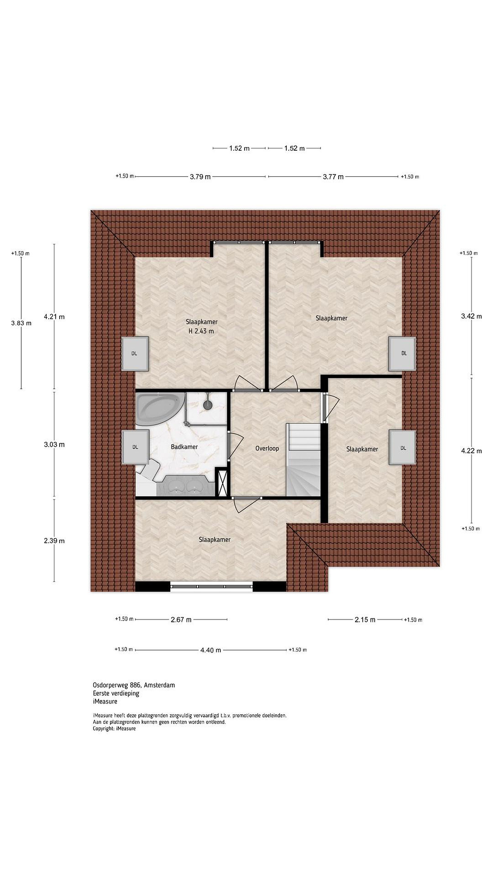 1e verdieping; Vier slaapkamers en de badkamer.