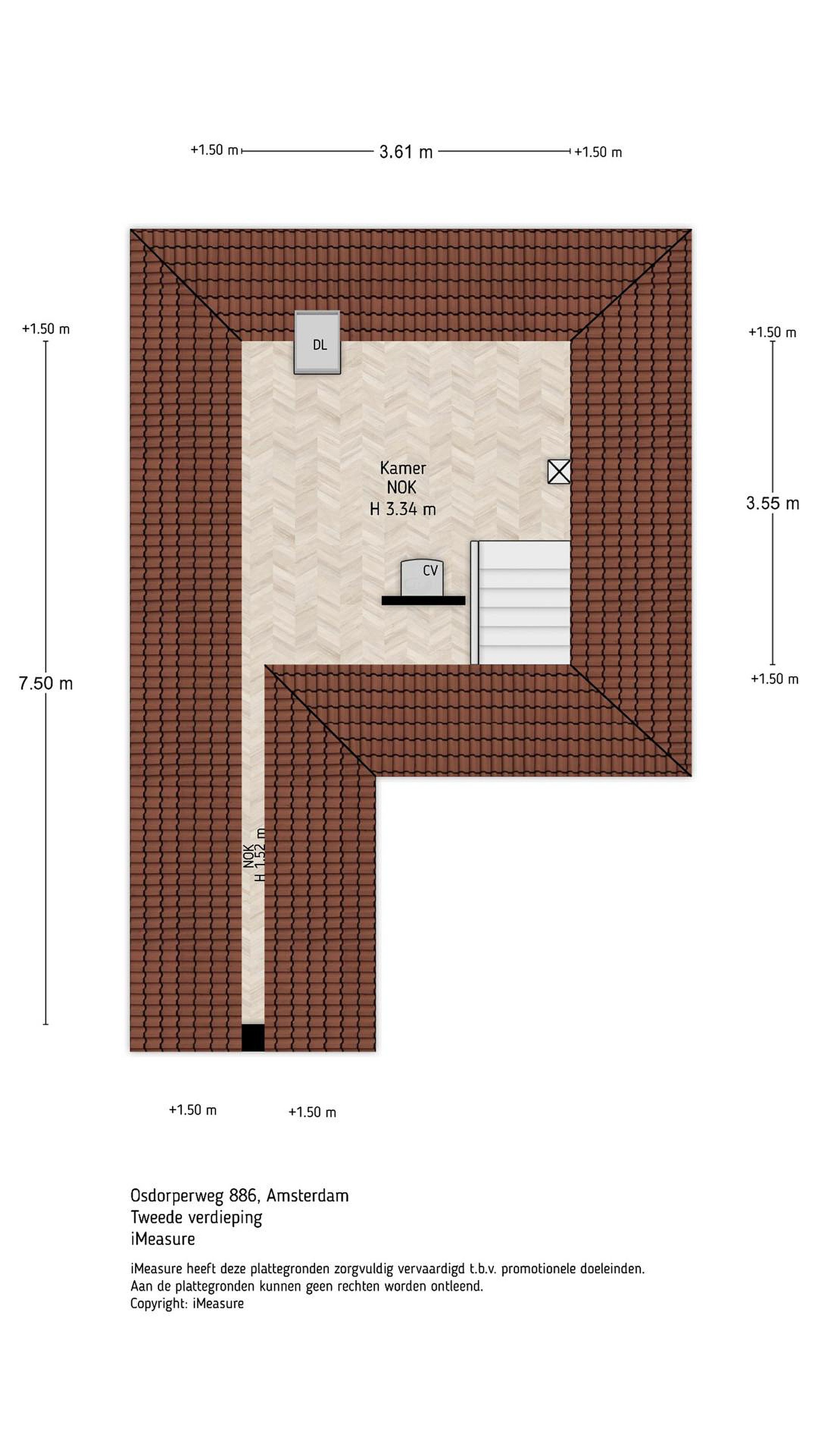 2e verdieping; Zolderverdieping, slaapkamer en berging.
