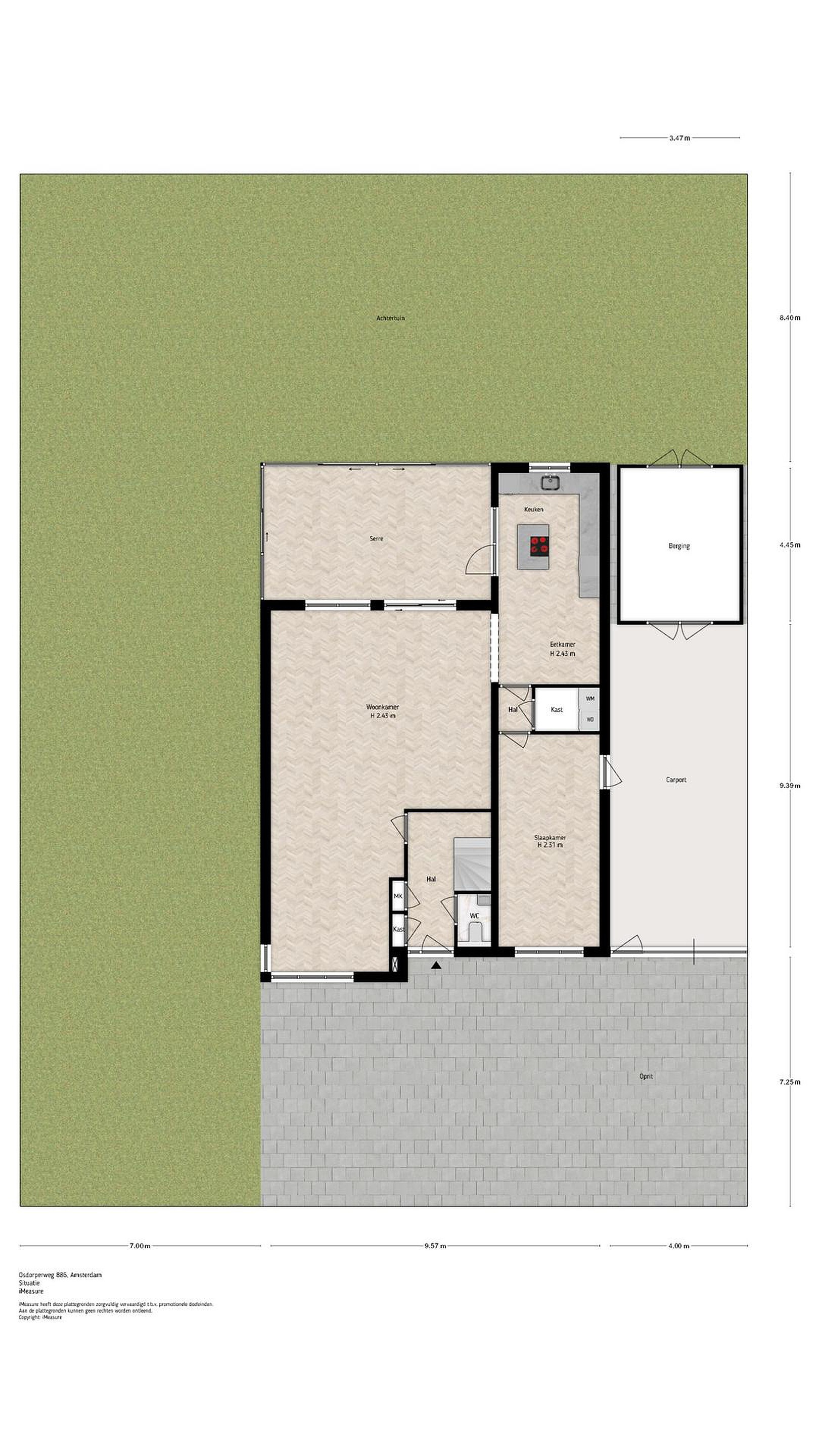 Aan de voorzijde en onder de (afsluitbare) carport is er ruime parkeergelegenheid op eigen terrein. Daarnaast is er nog een berging van ruim 15 m2, bereikaar vanuit zowel de tuin als de carport.