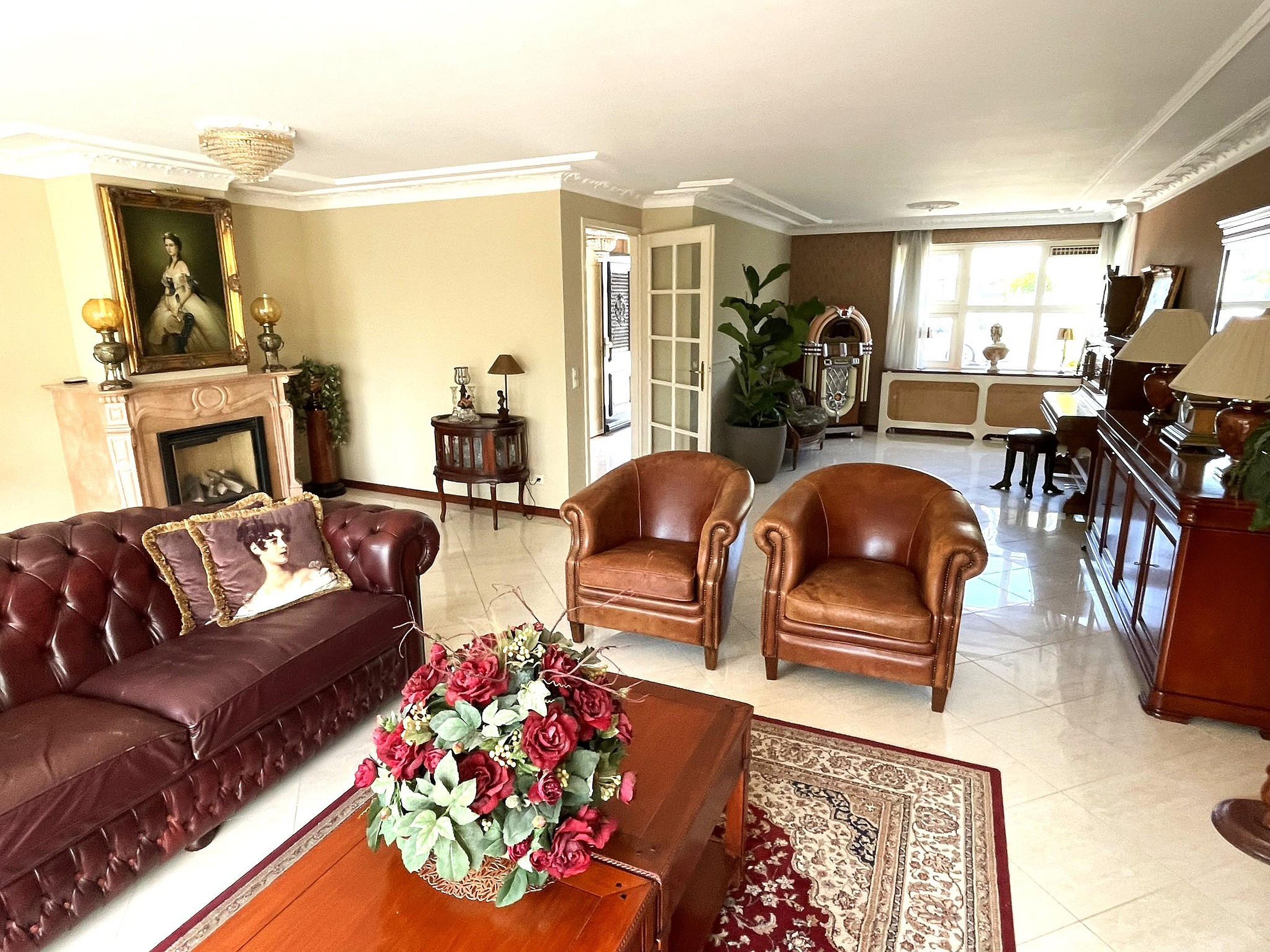 De begane grond is v.v. een fraaie plavuizen vloer en in de woonkamer treft u onder meer een gezellige (gas) haard met marmeren schouw aan. De keuken is v.v. diverse inbouwapparatuur. Op de 1e verdieping ligt, m.u.v. de ruime badkamer een vrijwel nieuwe pvc vloer. De markiezen aan de voorzijde zijn van 2023.