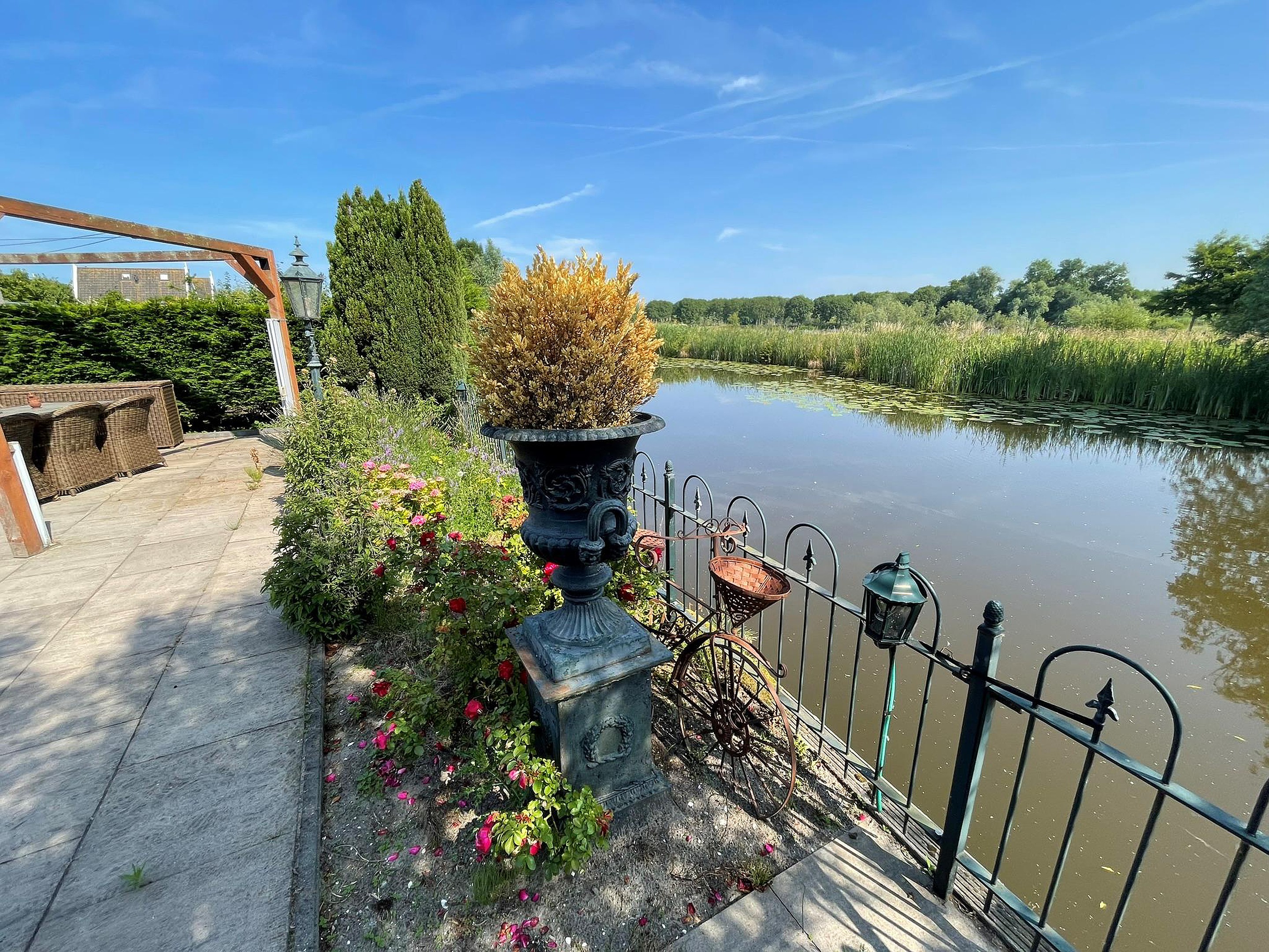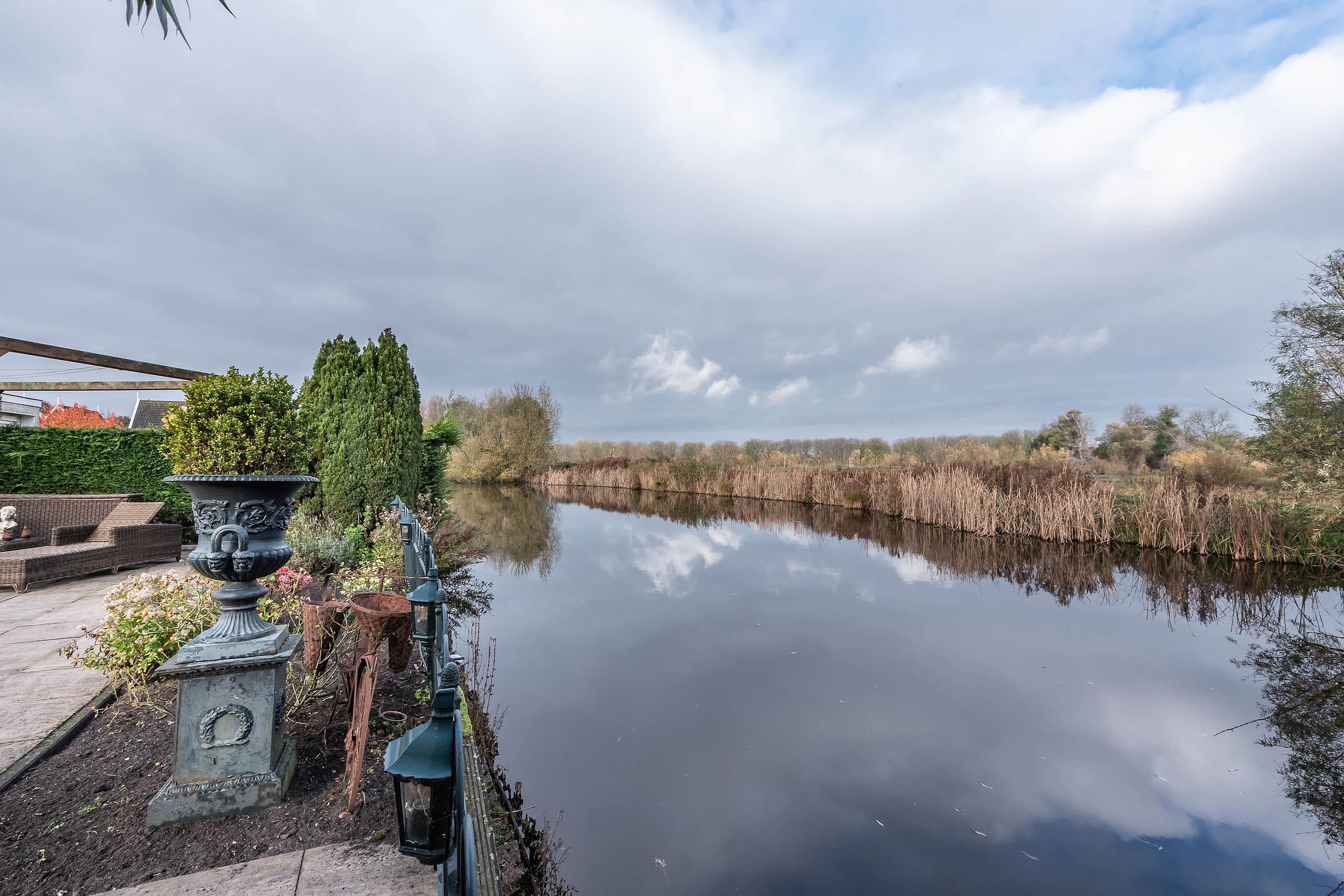 Prachtig gelegen vrijstaande villa met een grote tuin (eigen grond), oprit voor meerdere auto´s en volop privacy met vrij uitzicht over water en natuurgebied.
