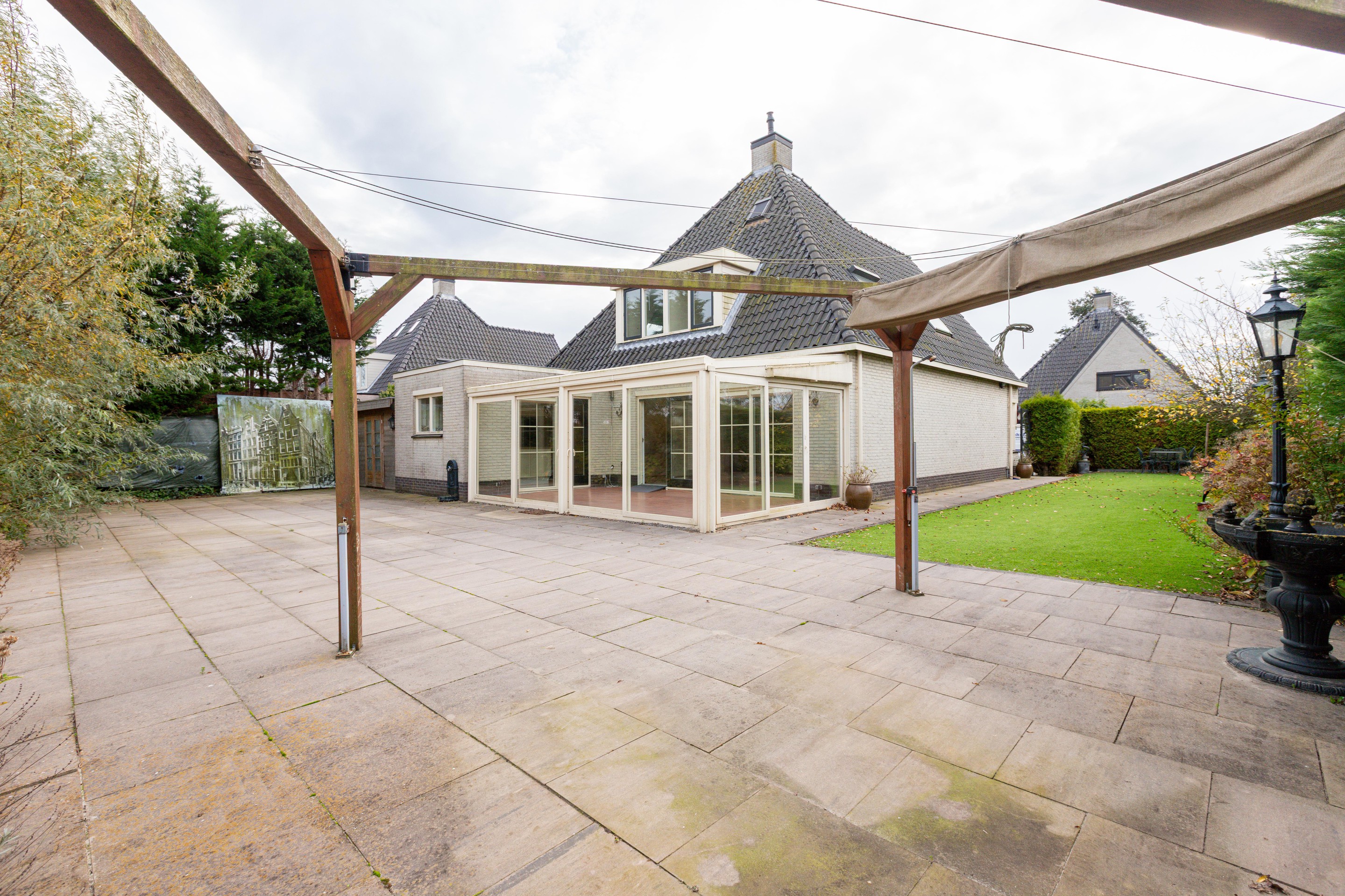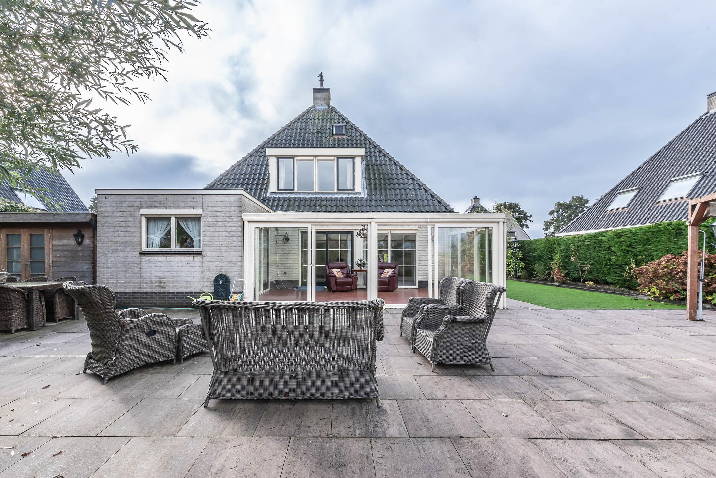 A spacious and well-maintained detached villa with a floor area of 189 m2, conservatory, carport, storage room and parking for several cars on site. In addition to the garden at the front, there is a side garden and delightful rear garden. The house, built in 1999, is part of a small courtyard of 10 detached houses.