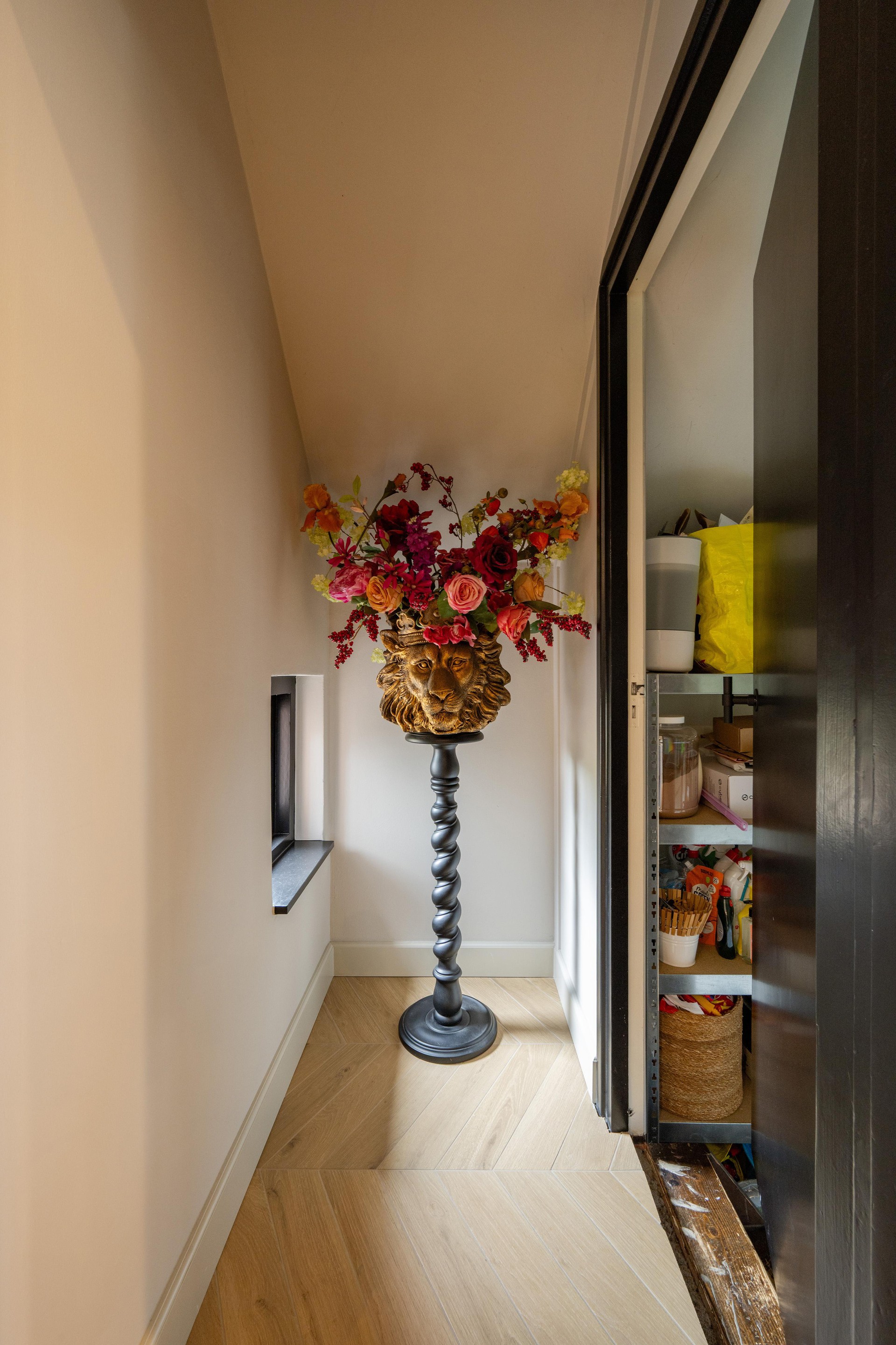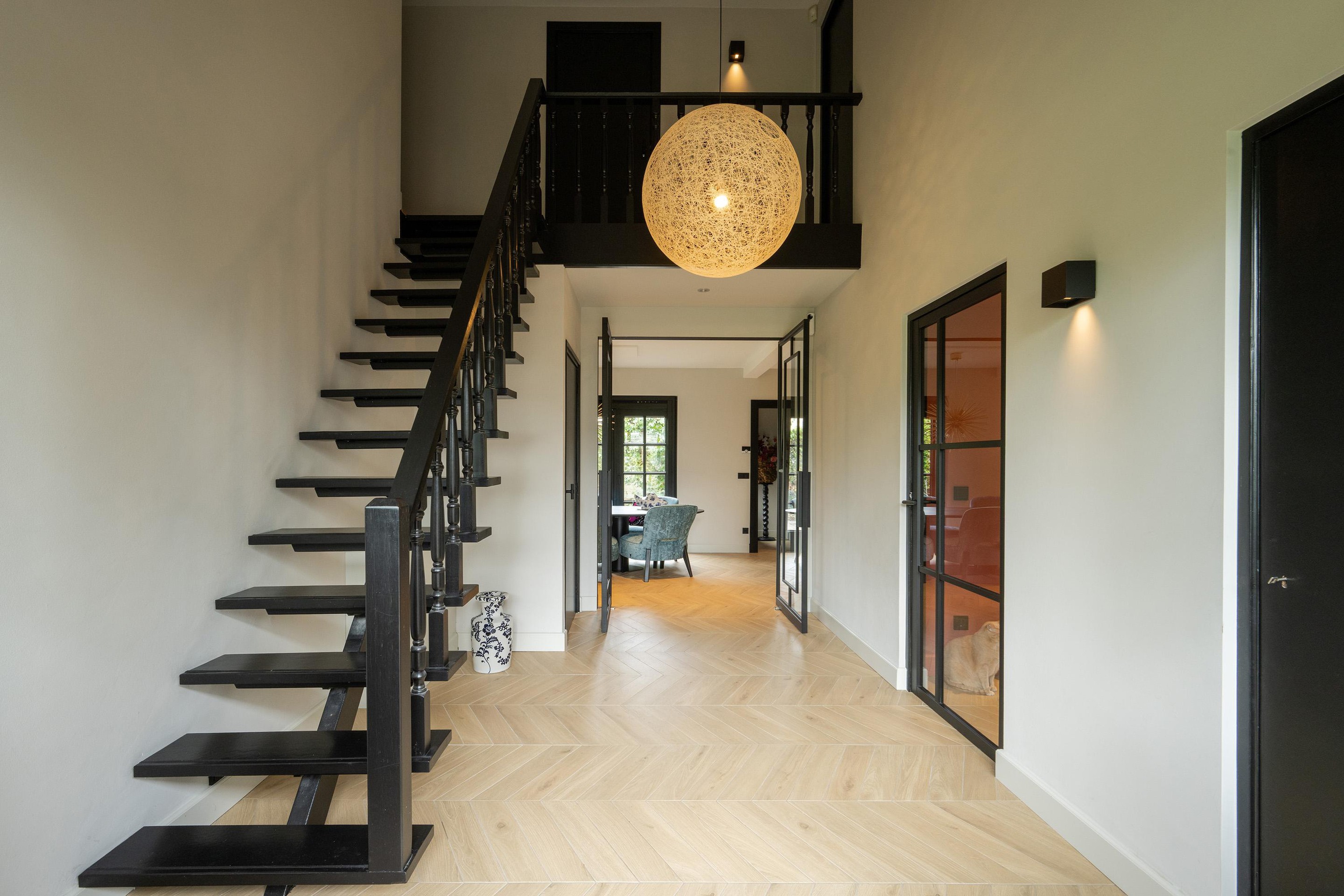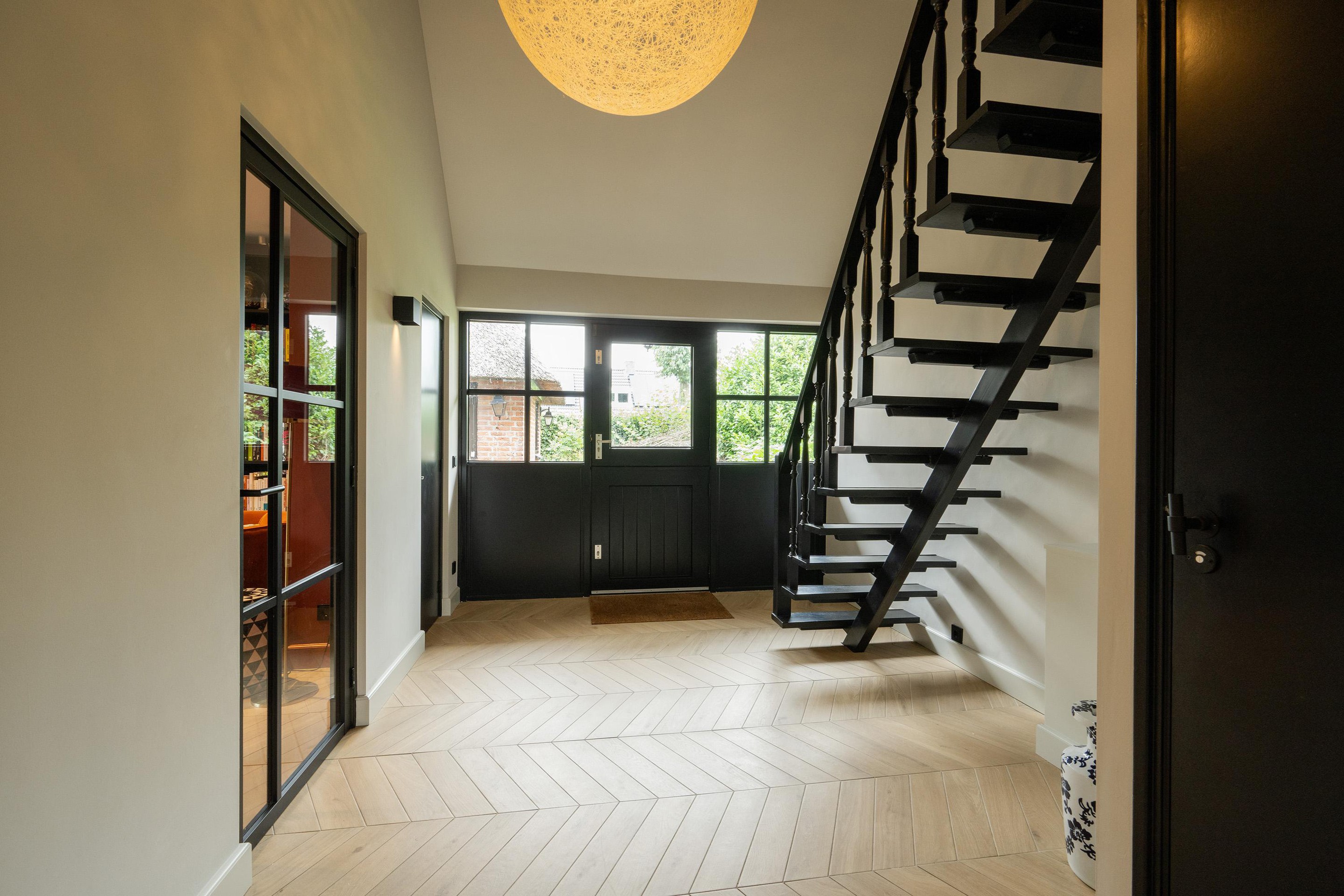 Begane grond Via de royale hal met vide stap je binnen in deze lichte en sfeervolle woning. De hal biedt toegang tot het toilet, de woonkamer, de keuken en de werkkamer.