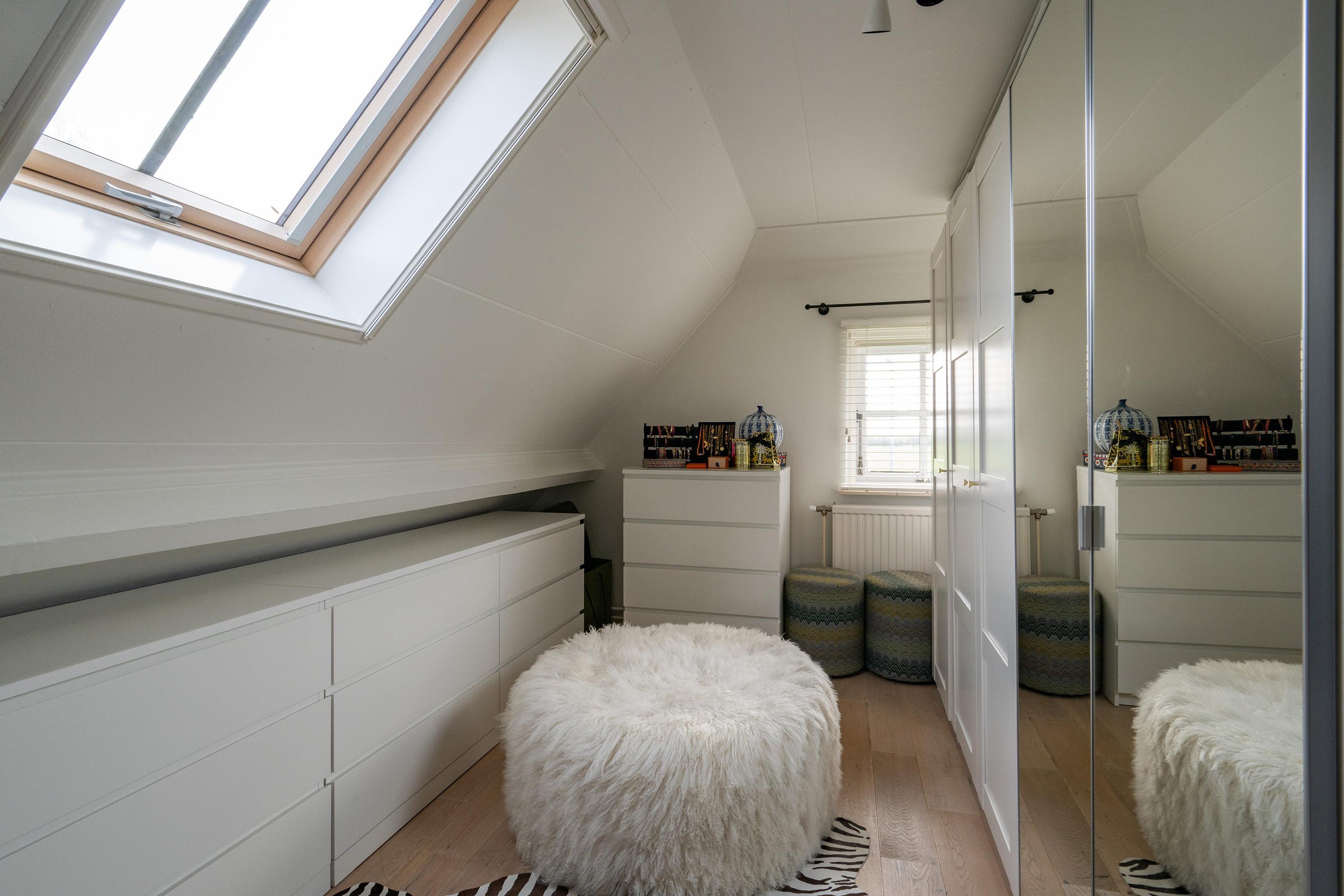 De master bedroom beschikt over veel bergruimte in de vaste kasten.