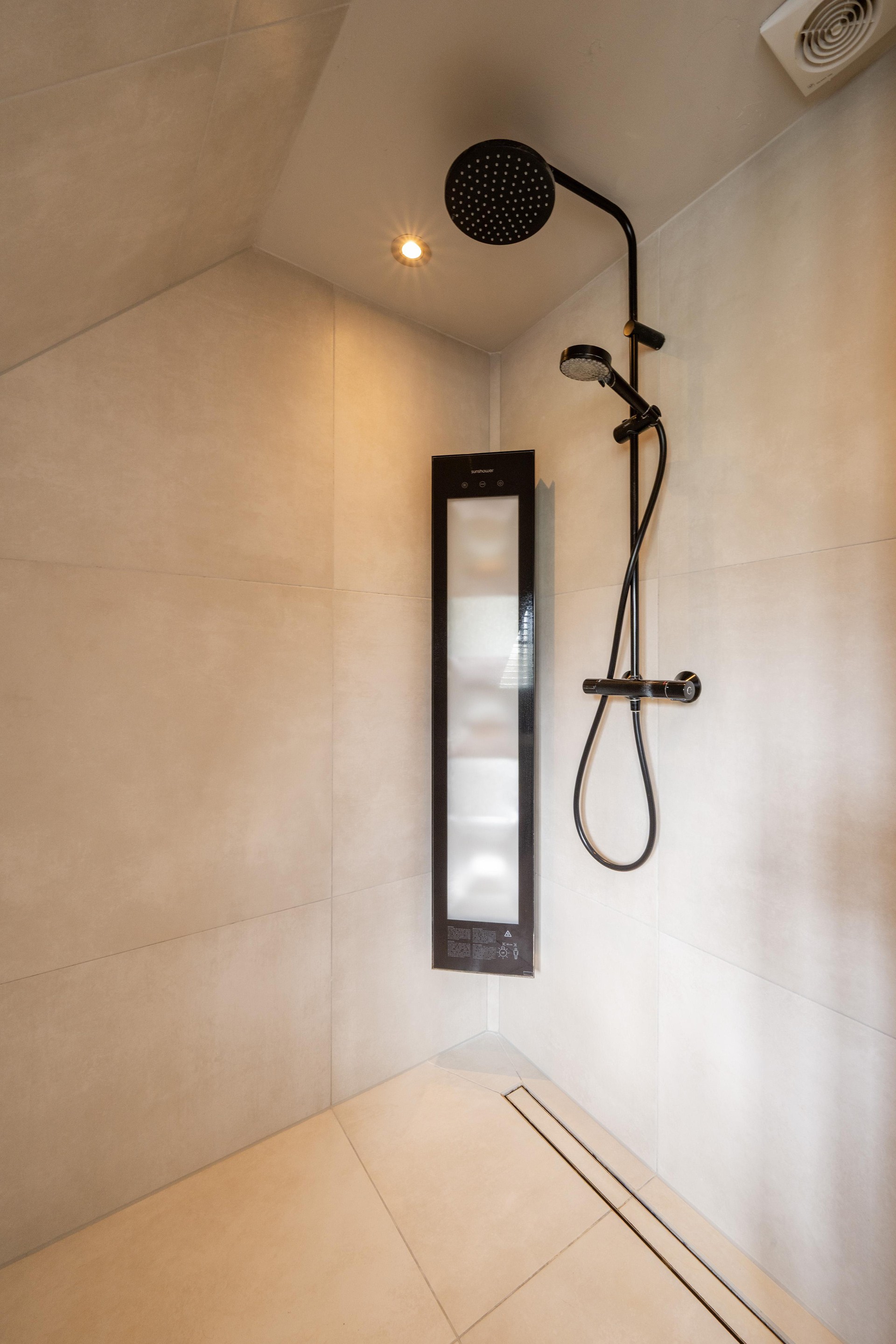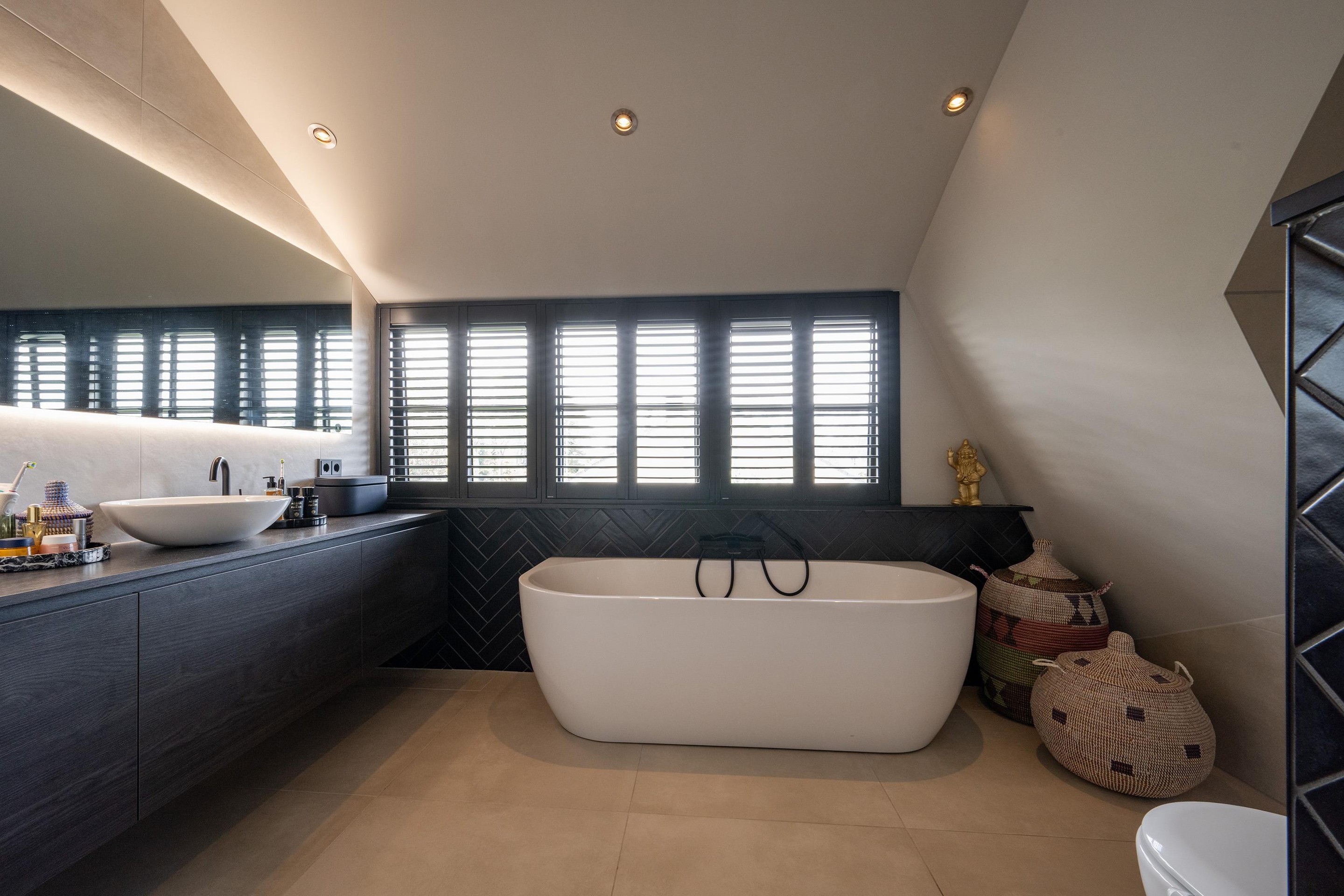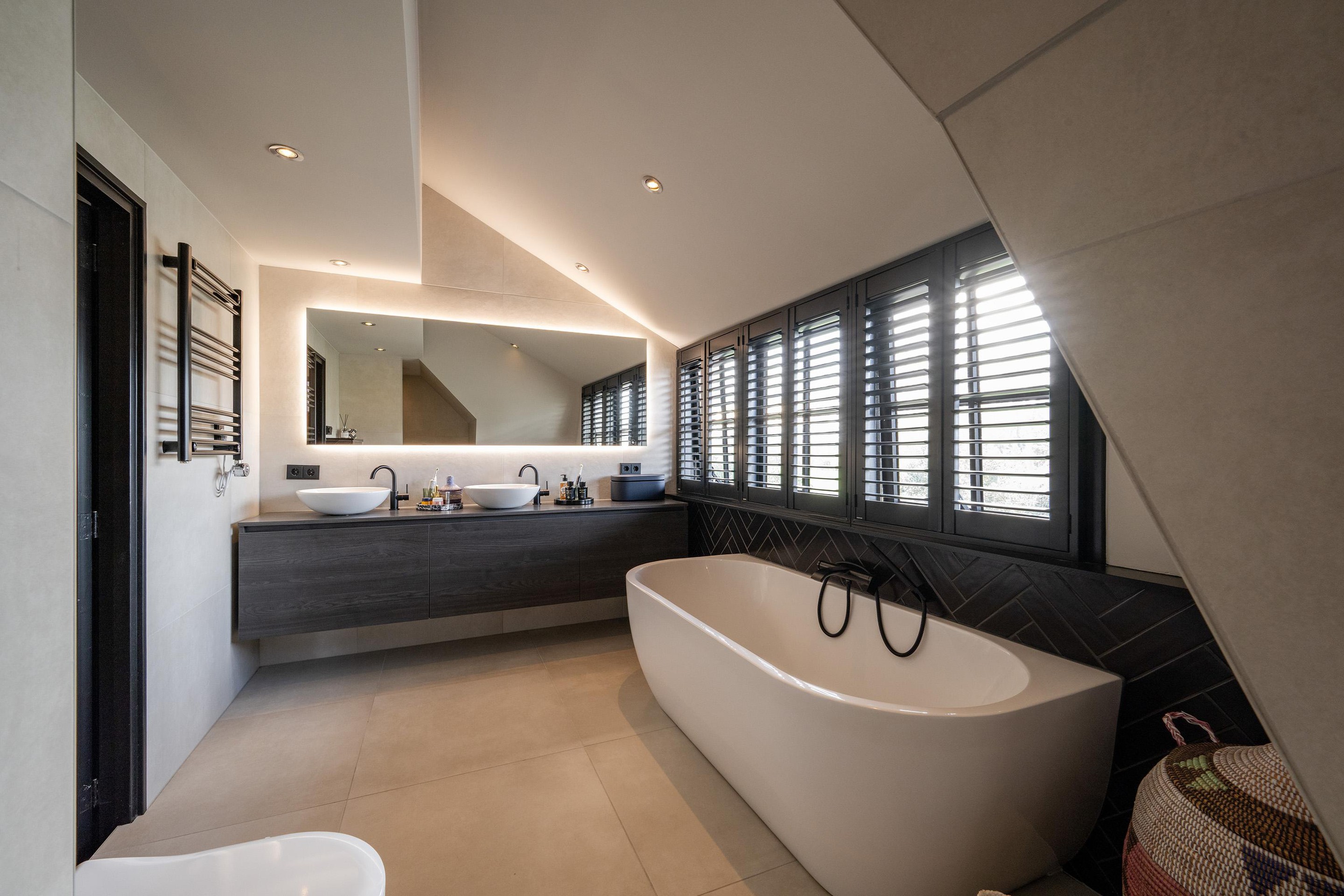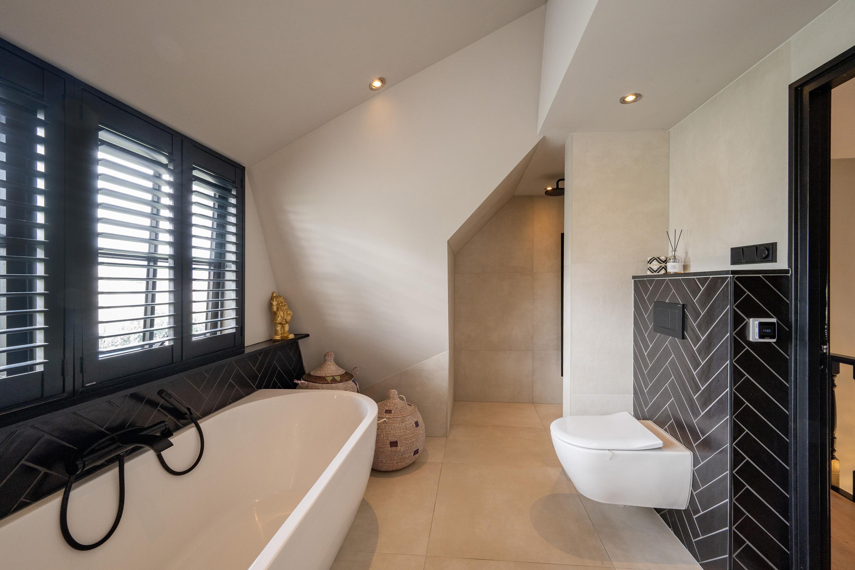 Net als de keuken is ook in 2022 de badkamer vernieuwd. Een lust voor het oog en veel comfort door de vloerverwarming, de ruime inloopdouche met sunshower, het dubbele wastafelmeubel, toilet en het duo-ligbad.
