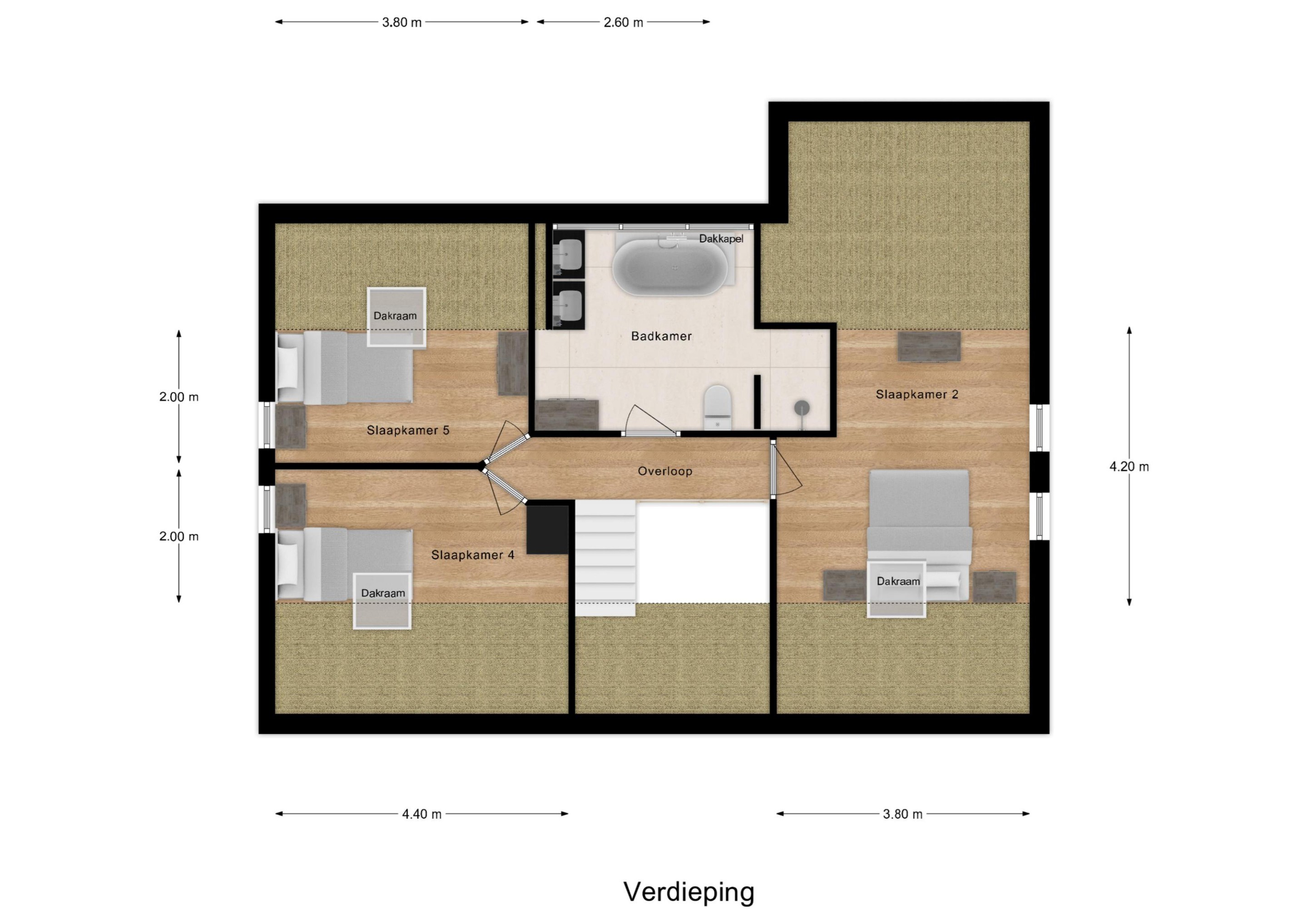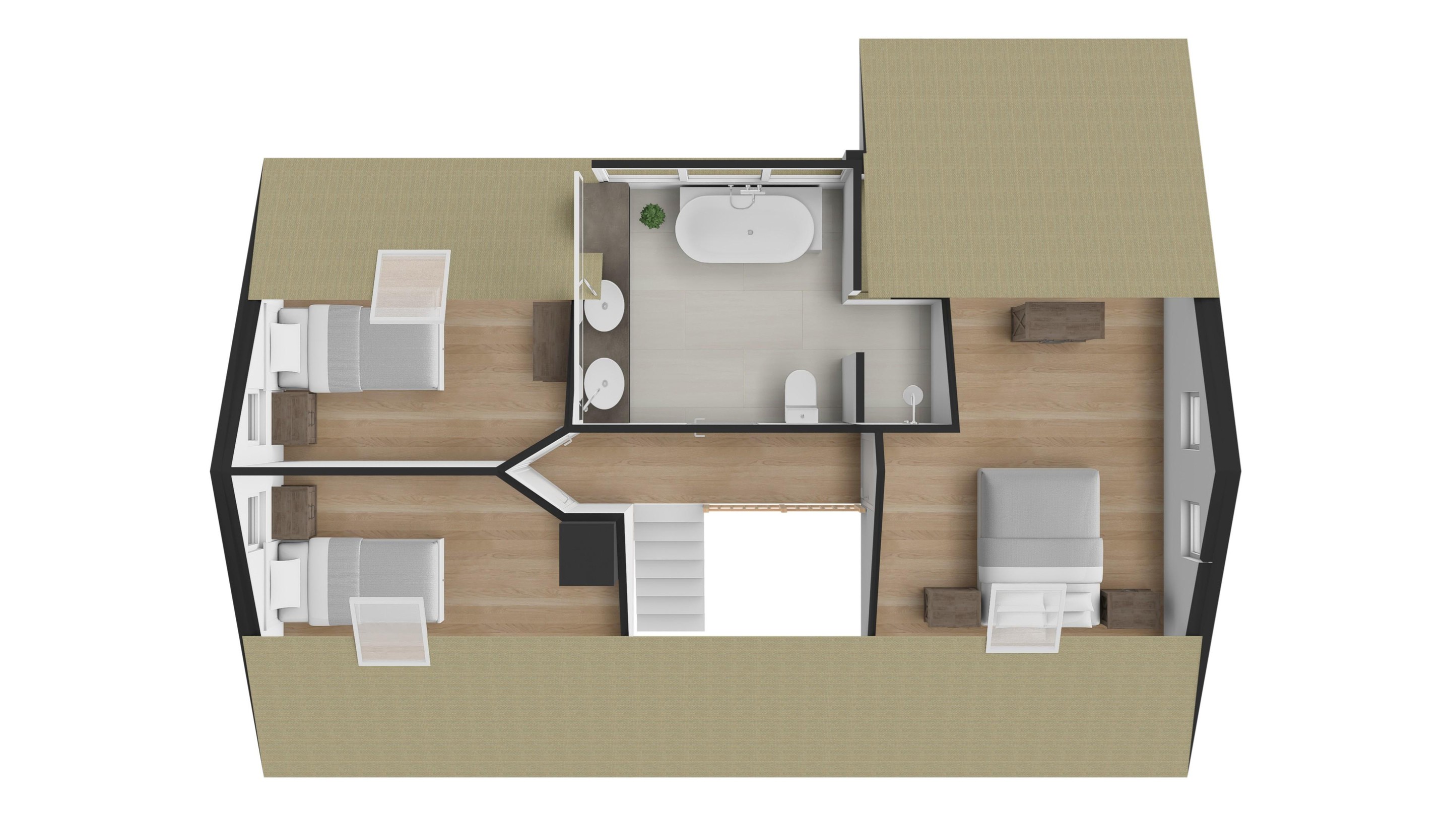 - Drie slaapkamers verdieping