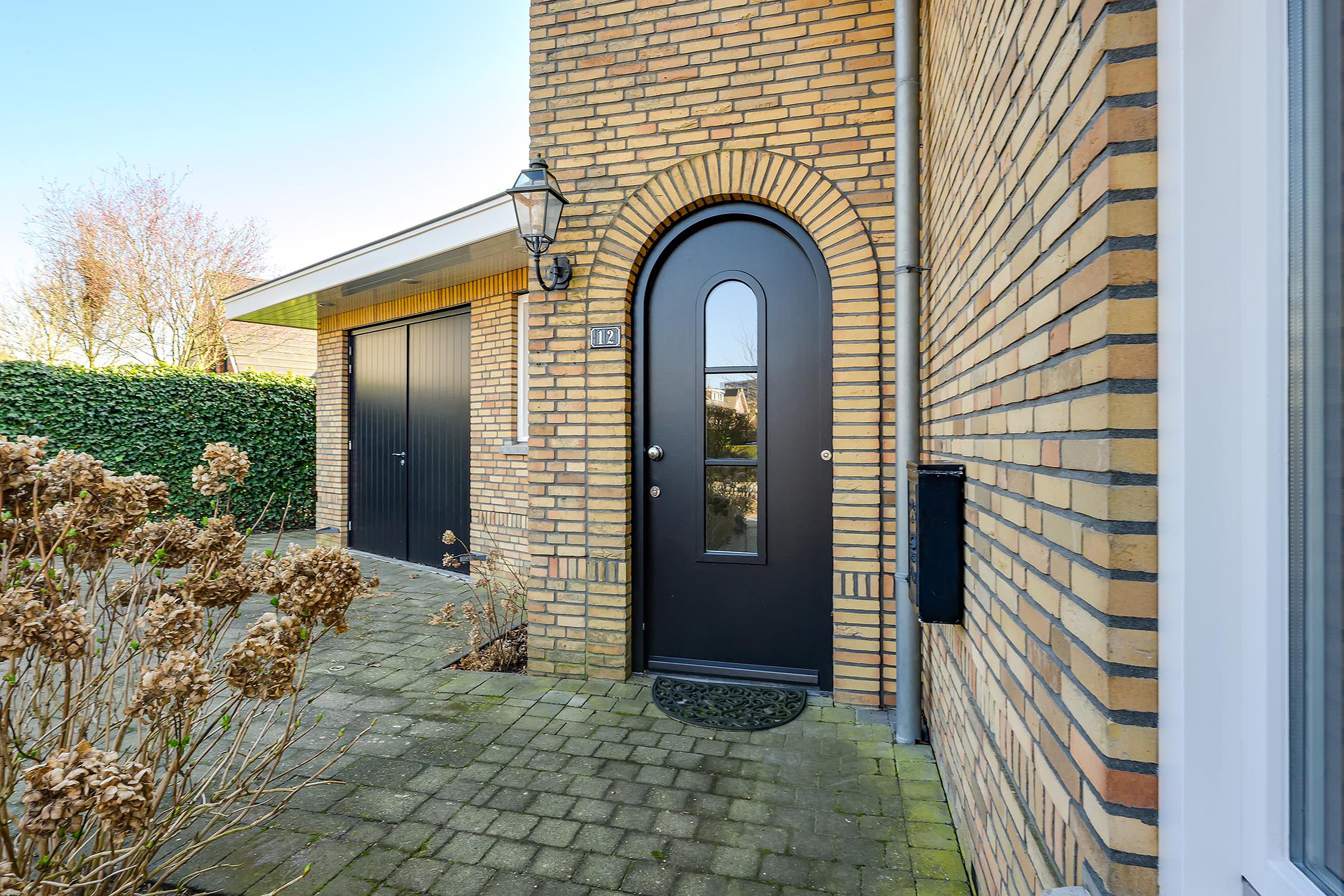 Via de ruime voortuin met parkeergelegenheid voor meerdere auto’s op eigen terrein bereik je de entree van deze indrukwekkende villa.