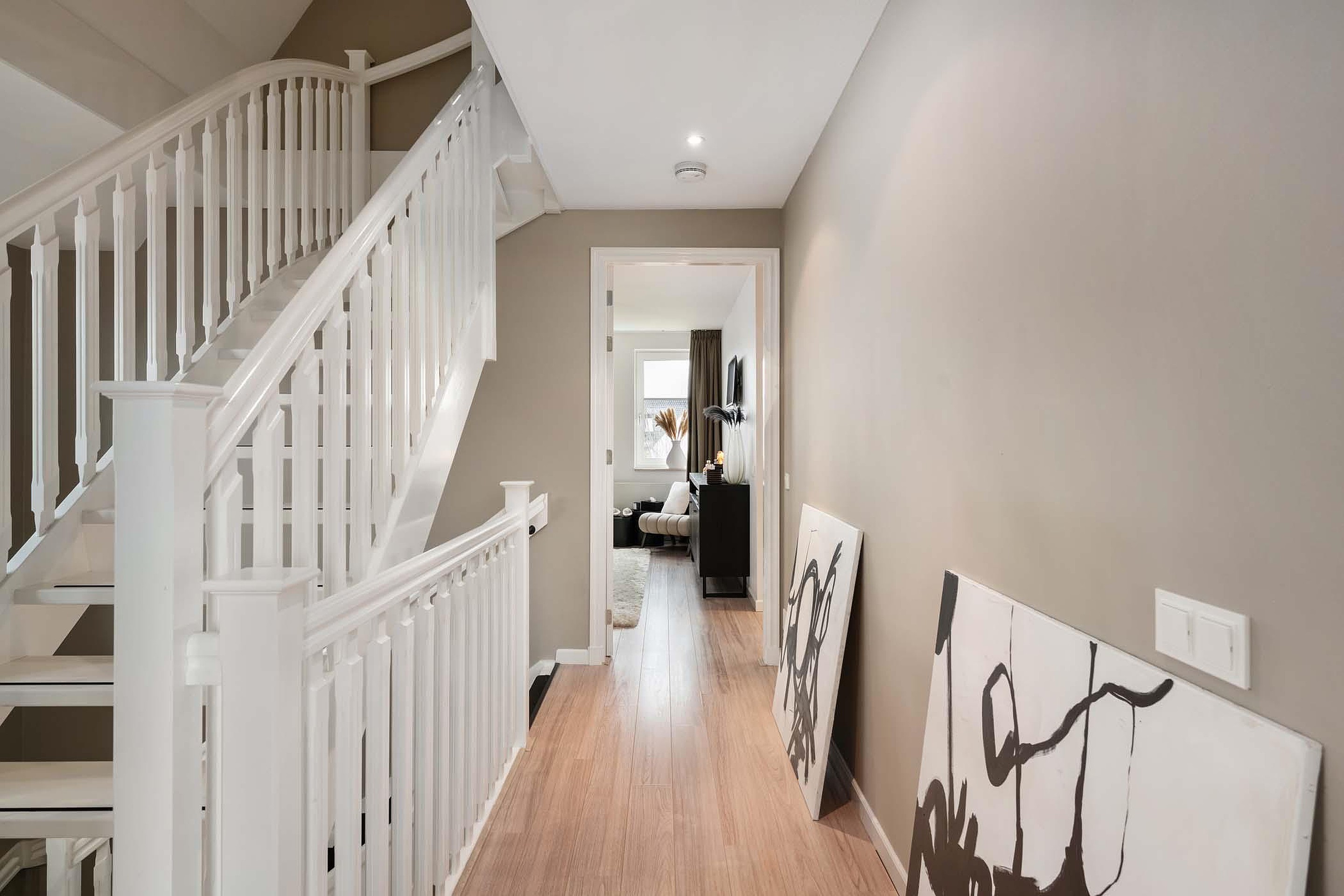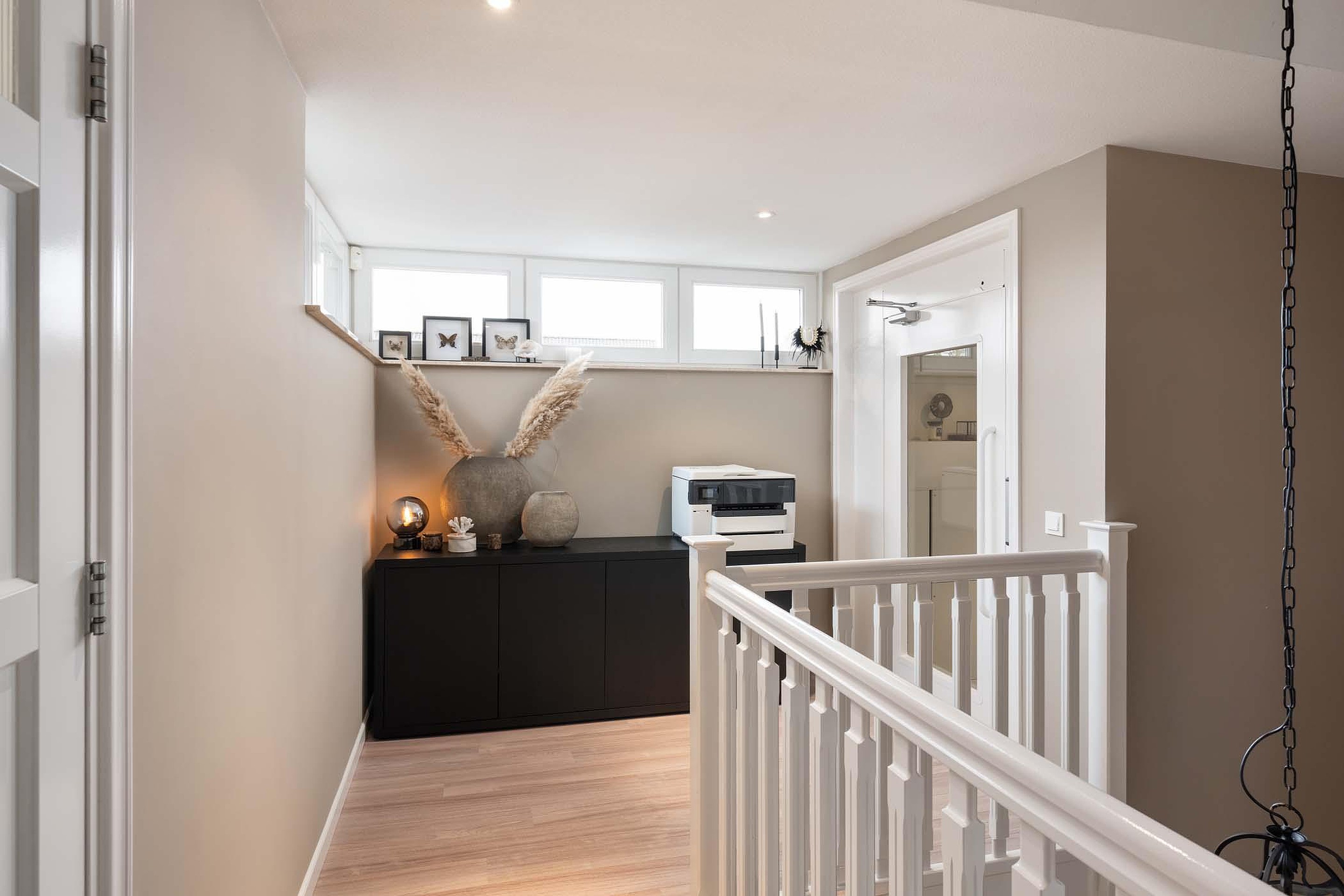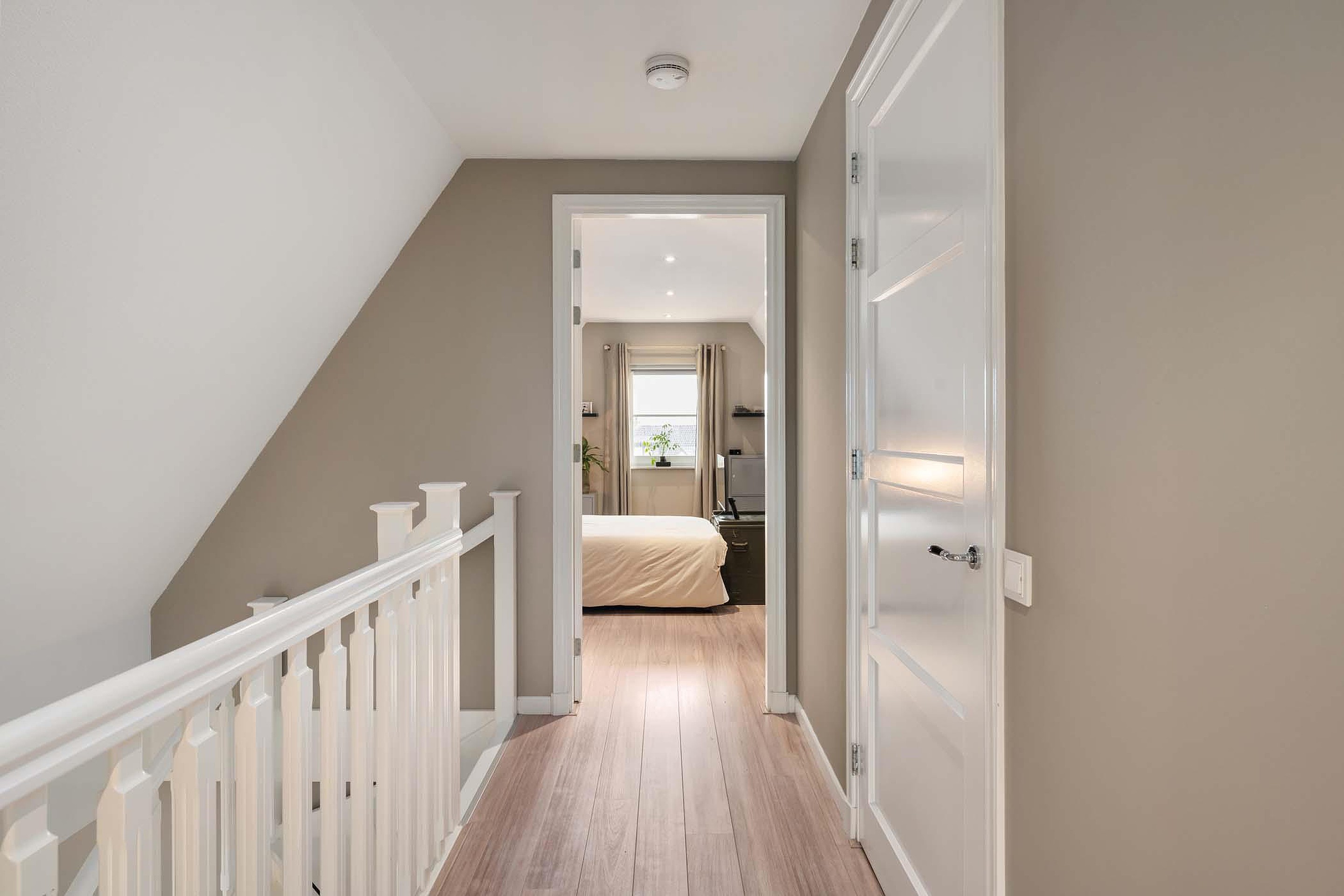 Via de trap of de lift bereik je de eerste verdieping. De ruime overloop geeft toegang tot alle vertrekken.