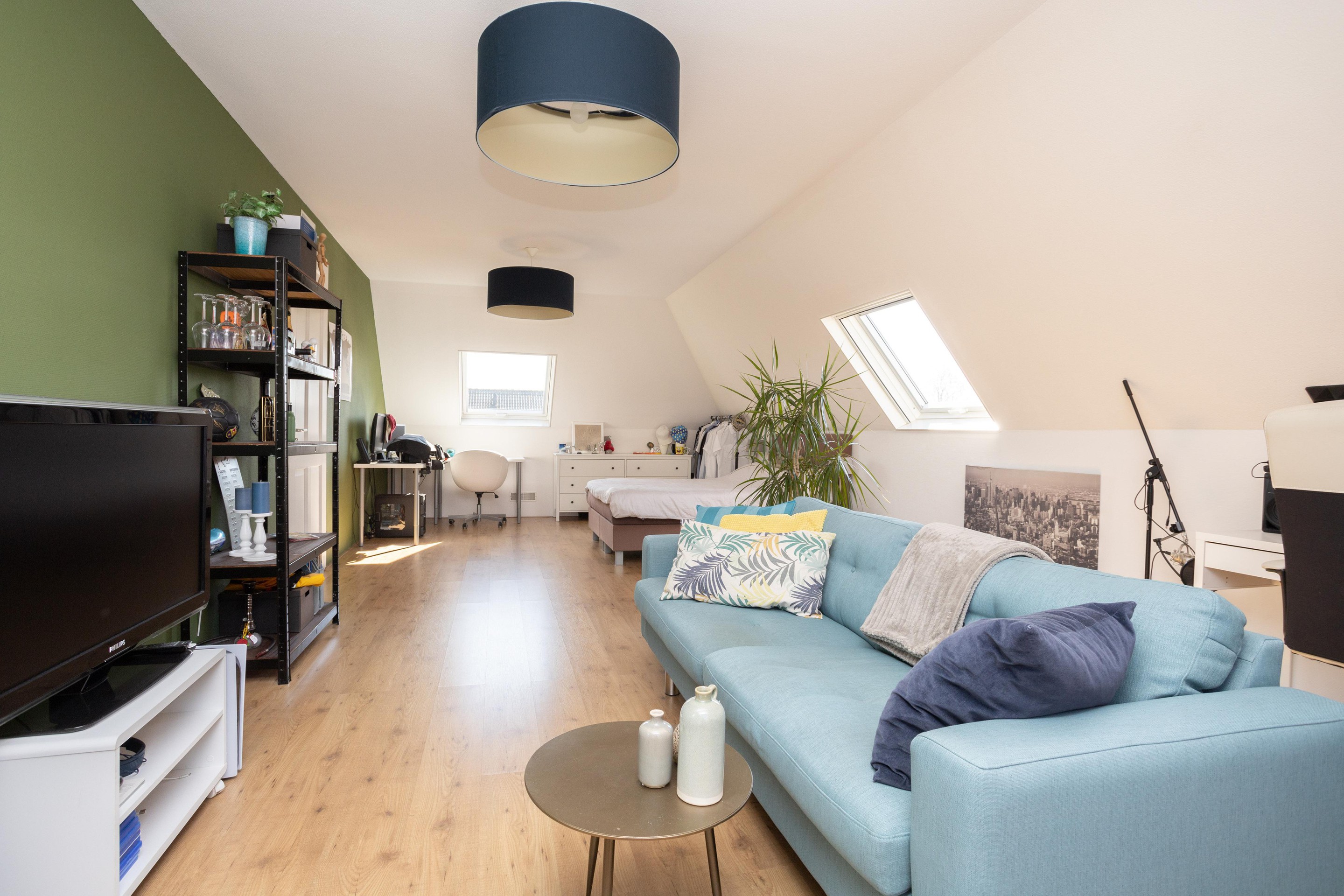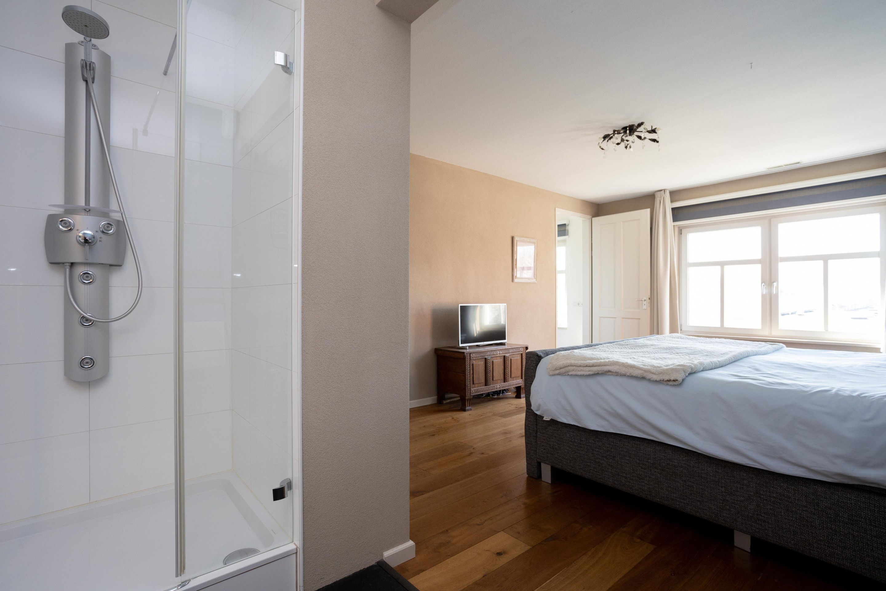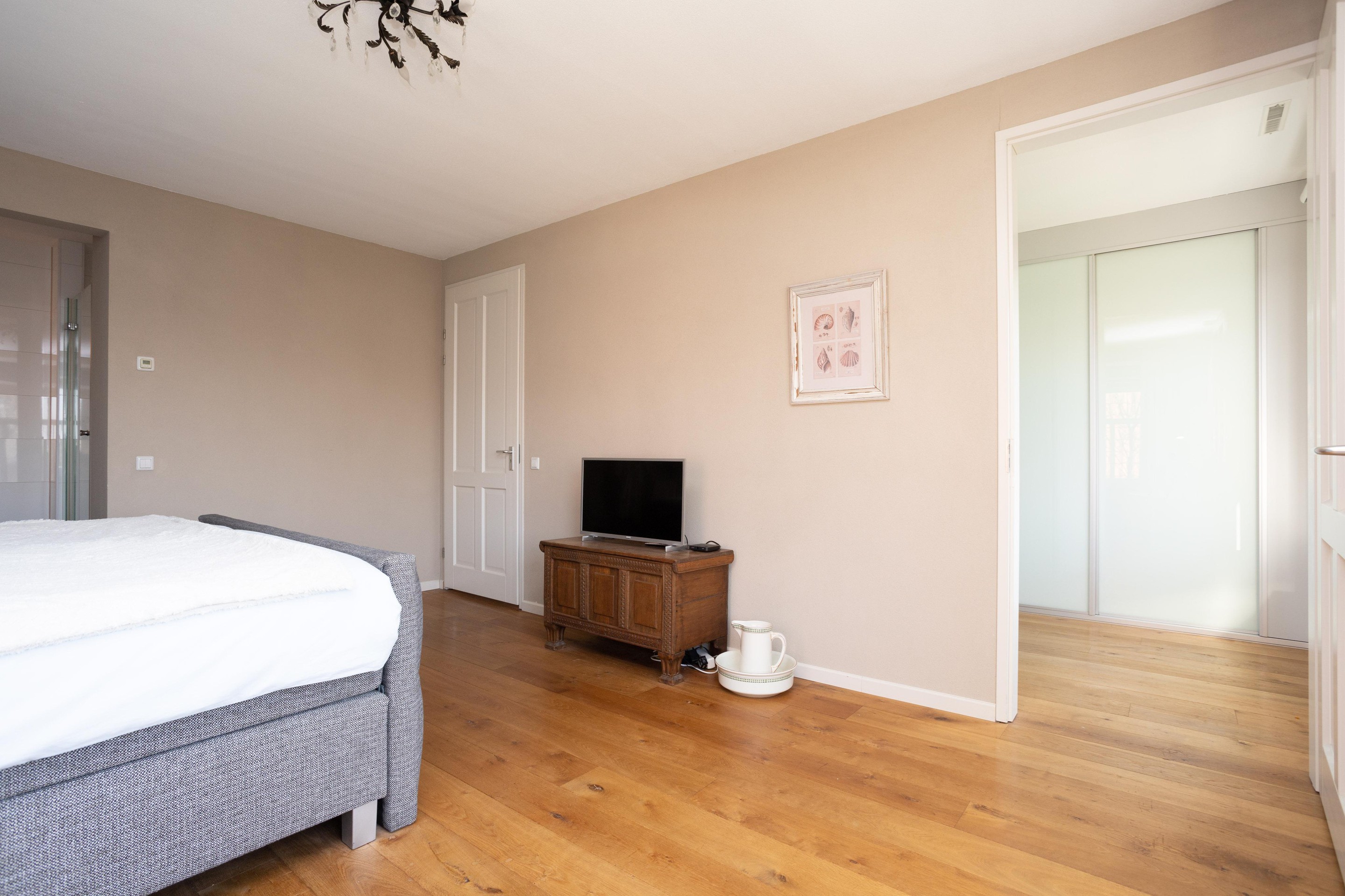 Wat is dit een prachtige verdieping om te verblijven. Er zijn 2 slaapkamers en een technische ruimte. De slaapkamer aan de achterzijde is over de gehele breedte en is voorzien van airconditioning. In de technische ruimte vinden we de opstelling van de luchtverwarming (2005), luchtbevochtiging en de warmtepomp e-boiler (160 liter) uit 2024. Door de luchtverwarming heeft het gehele huis en de garage altijd een aangename temperatuur. Het systeem is voorzien van topcooling waardoor bij warme temperaturen de temperatuur in het huis verlaagd kan worden.
