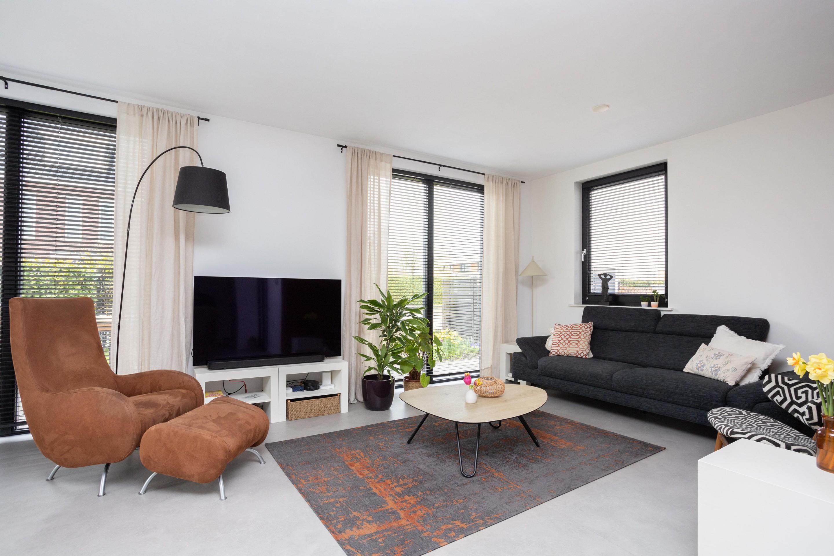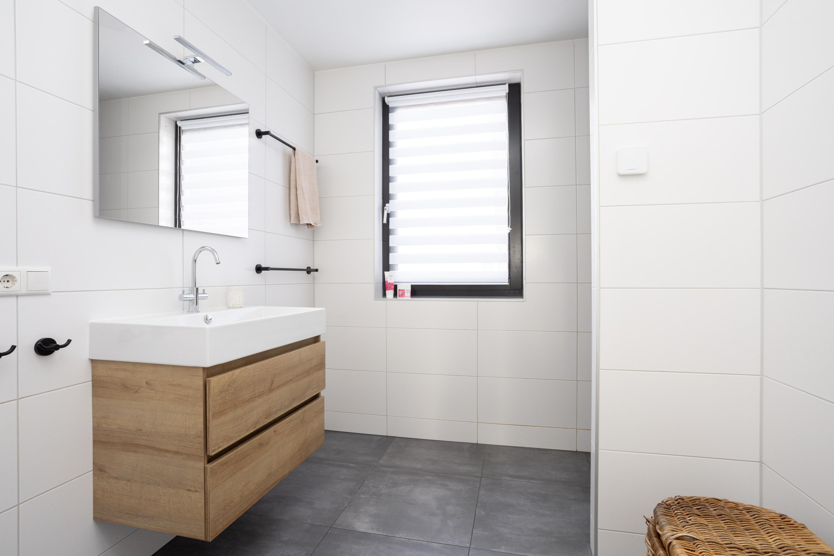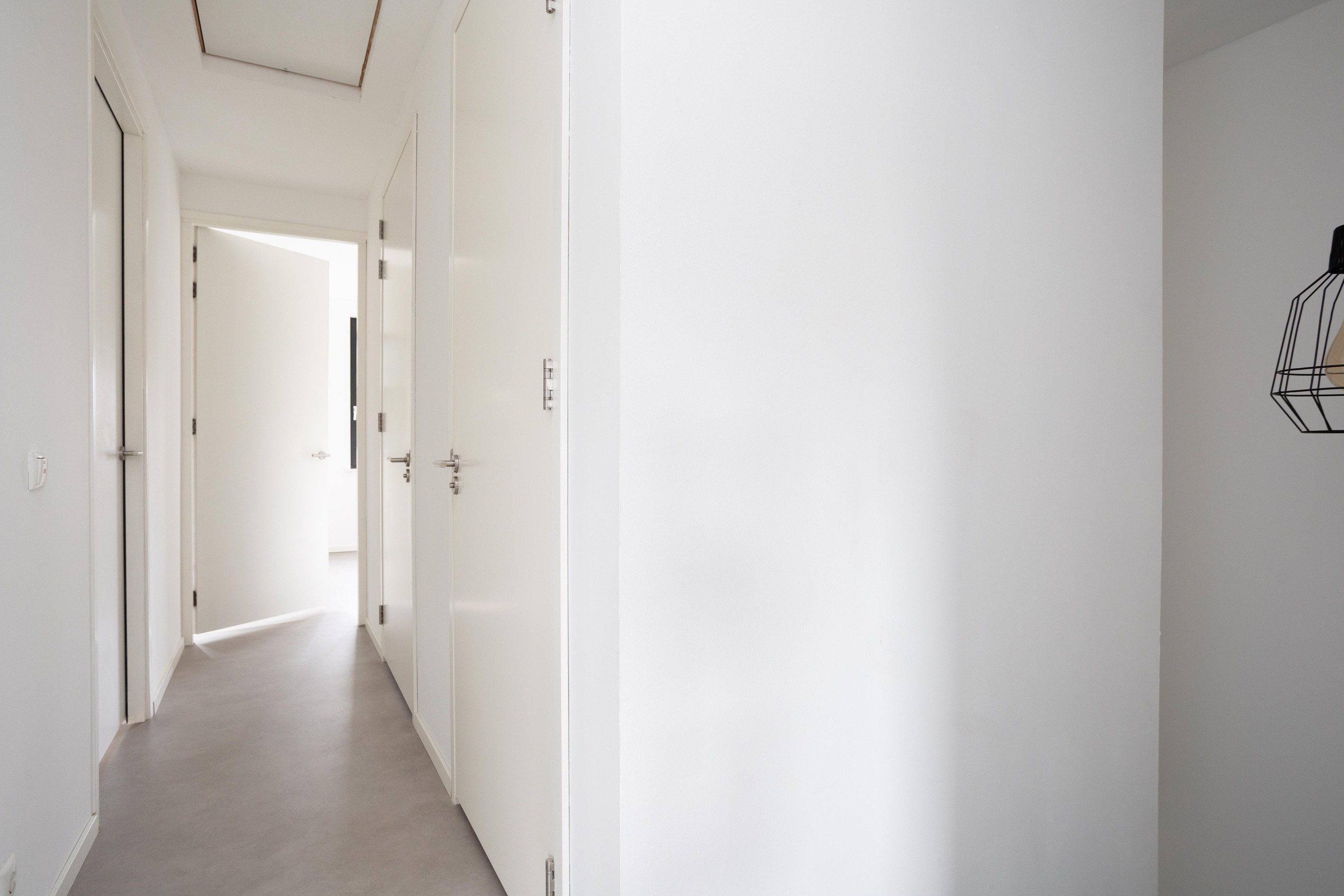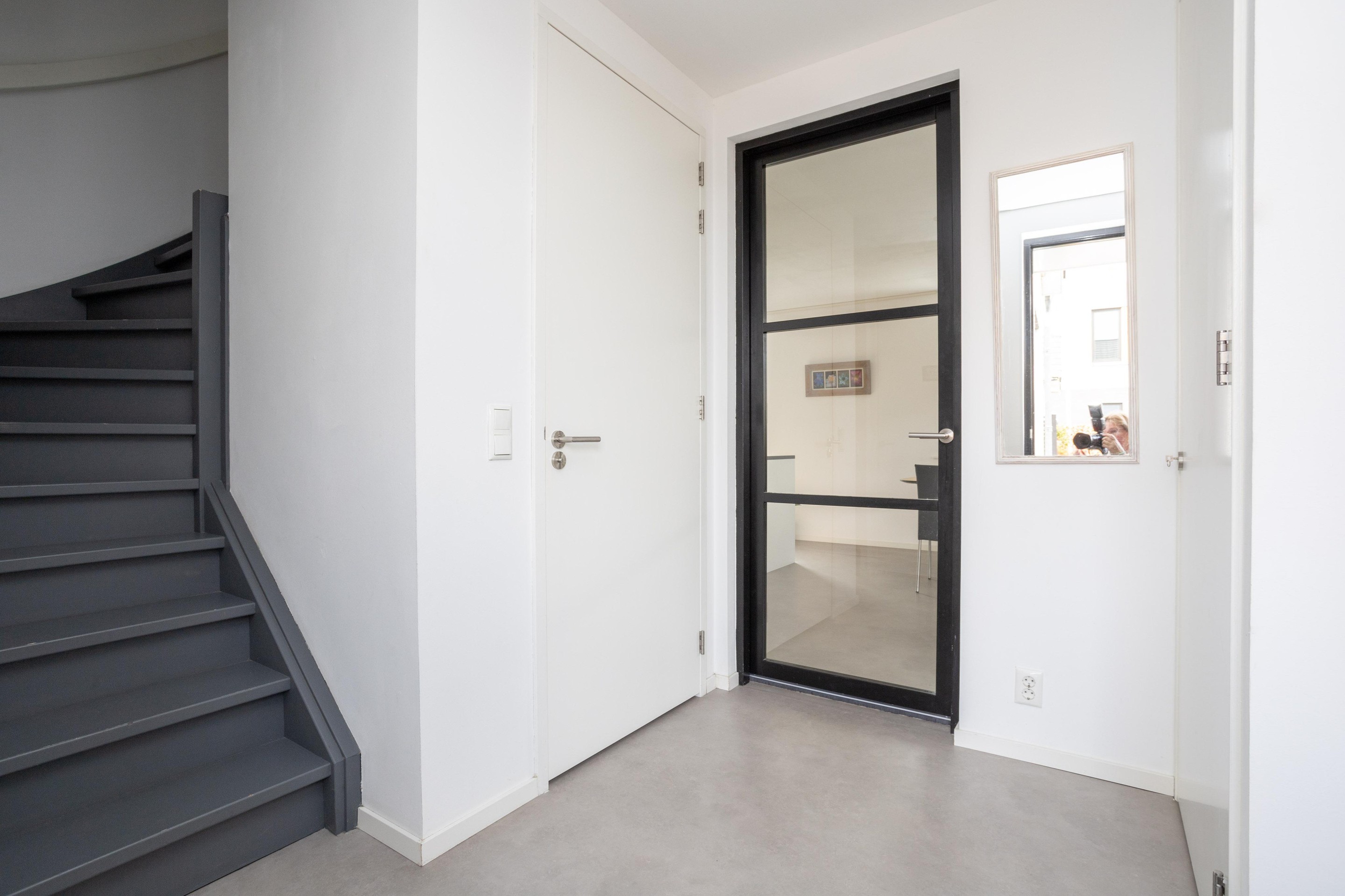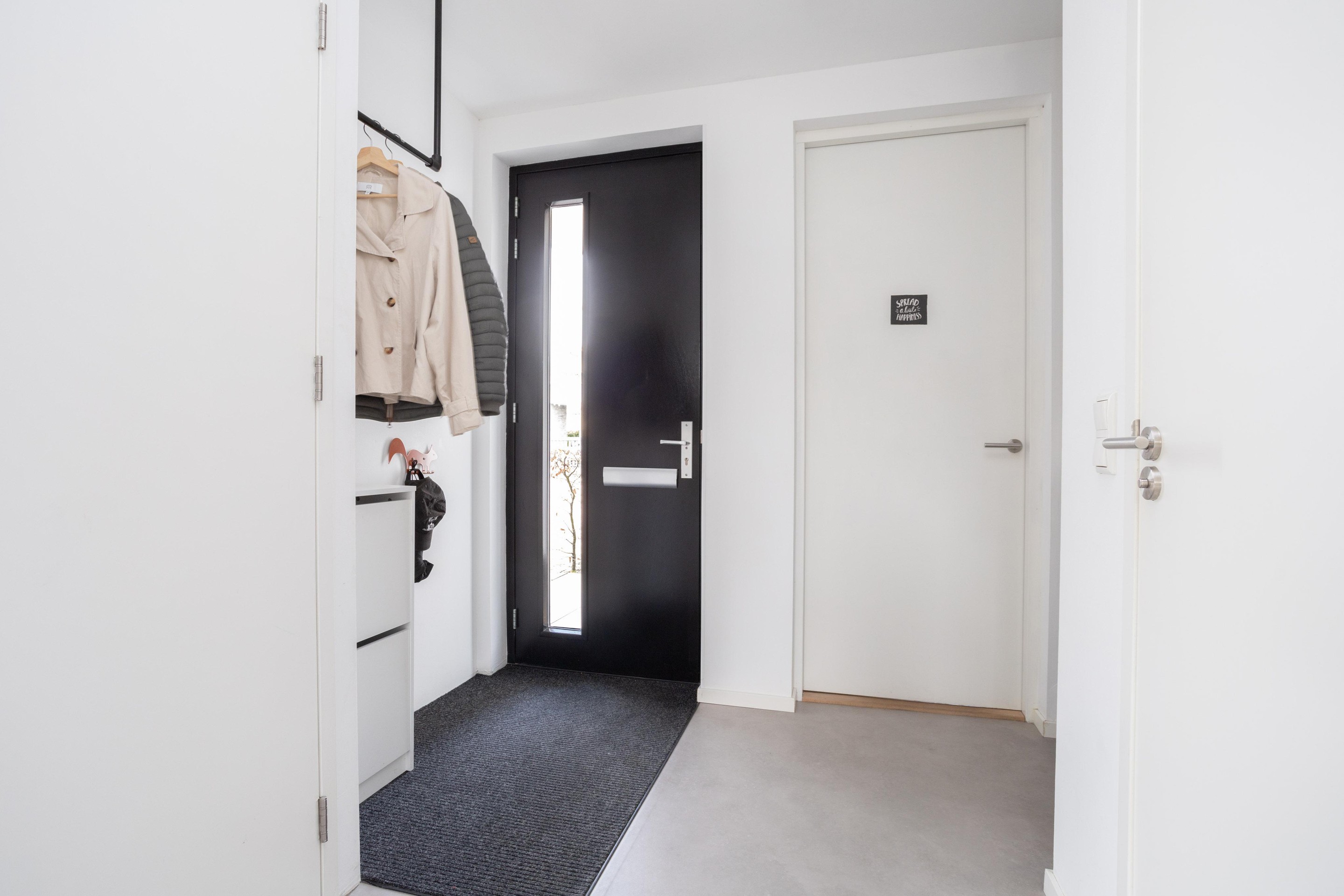 Entree, ruime hal met meterkast, toilet met fonteintje en deur naar de riante living. Bij binnenkomst vallen direct de prachtige raampartijen op; heerlijk al dat licht. Zowel de vloer als wanden zijn strak afgewerkt. En fijn dat er vloerverwarming aanwezig is, die met aparte thermostaten per ruimte te regelen is.
