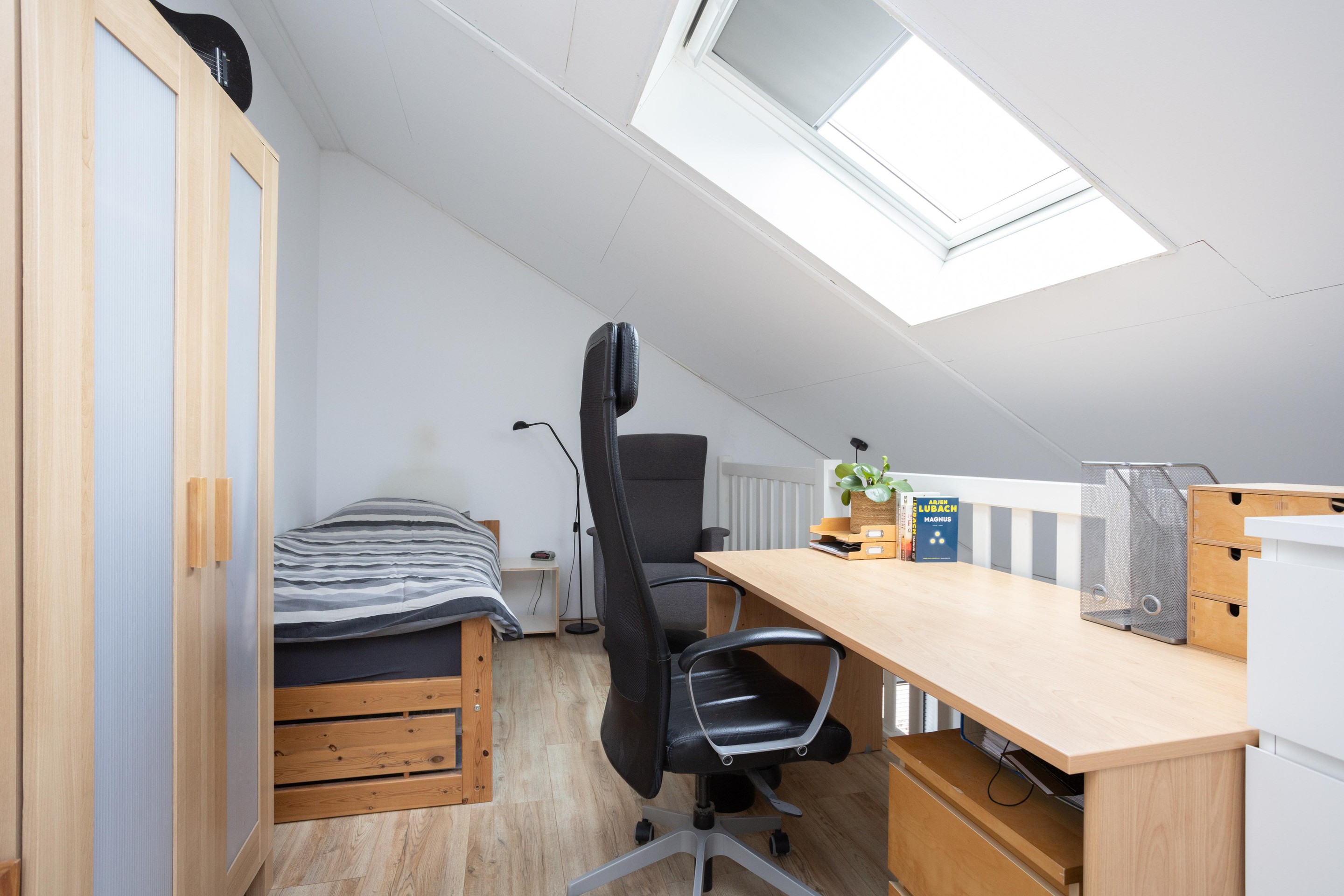 De extra woning is tegen de hoofdwoning aangebouwd, heeft een eigen voordeur maar is ook via de hoofdwoning te bereiken. In de ruime woonkamer met vide is hoekkeuken aanwezig, voorzien van een inductie kookplaat en oven. Eveneens op de begane grond is een complete badkamer met toilet, inloopdouche en een wastafel. Hier treft u nog een wasmachineaansluiting aan. Via een trap kom je op de loft. Die is nu in gebruik als slaap- en werkkamer.