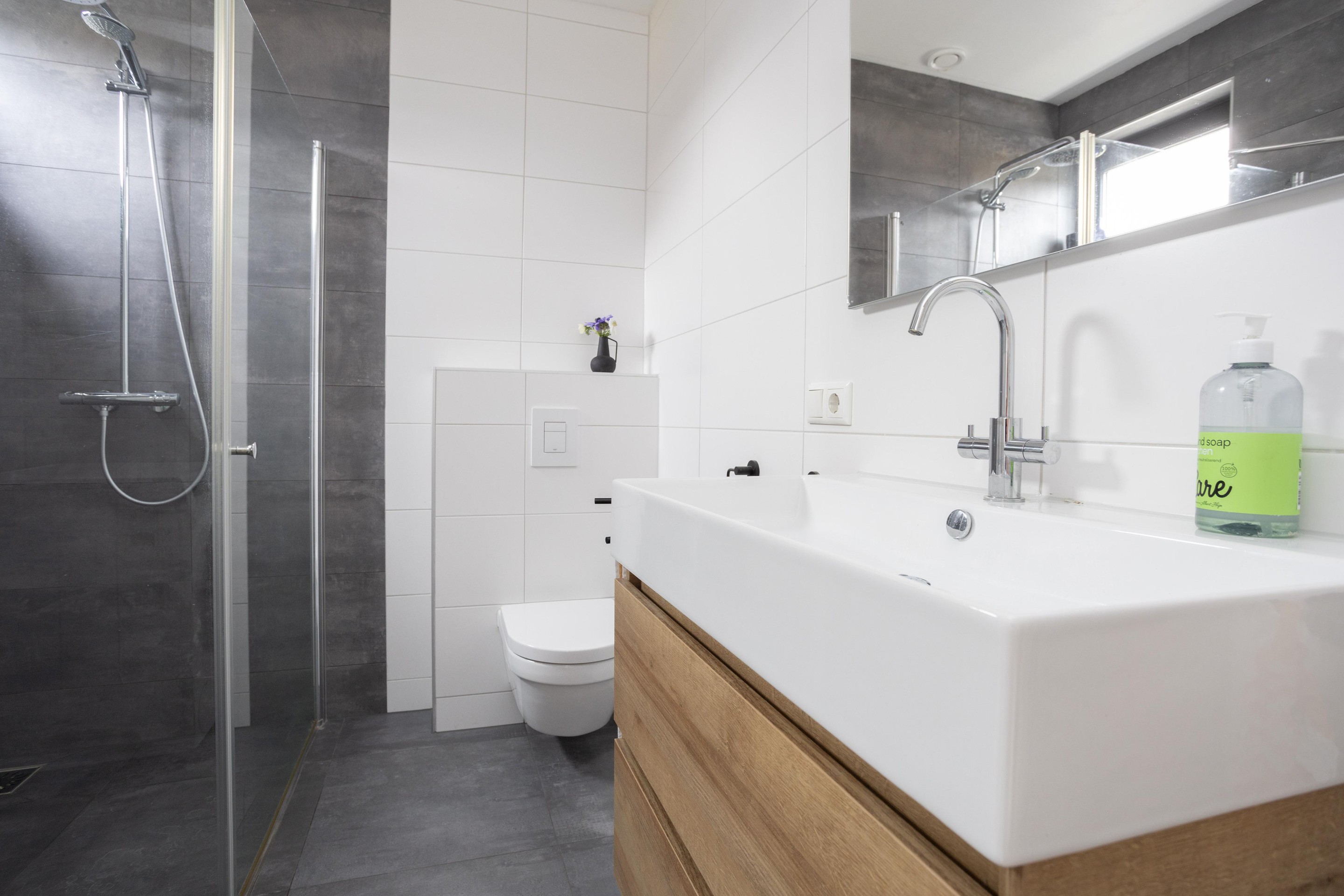 Op deze verdieping 3 ruime slaapkamers en de badkamer. De slaapkamers aan de voor- en achterzijde zijn over de gehele breedte. De badkamer beschikt over een inloopdouche en een wastafel. Tot slot is er nog een apart toilet met fonteintje.