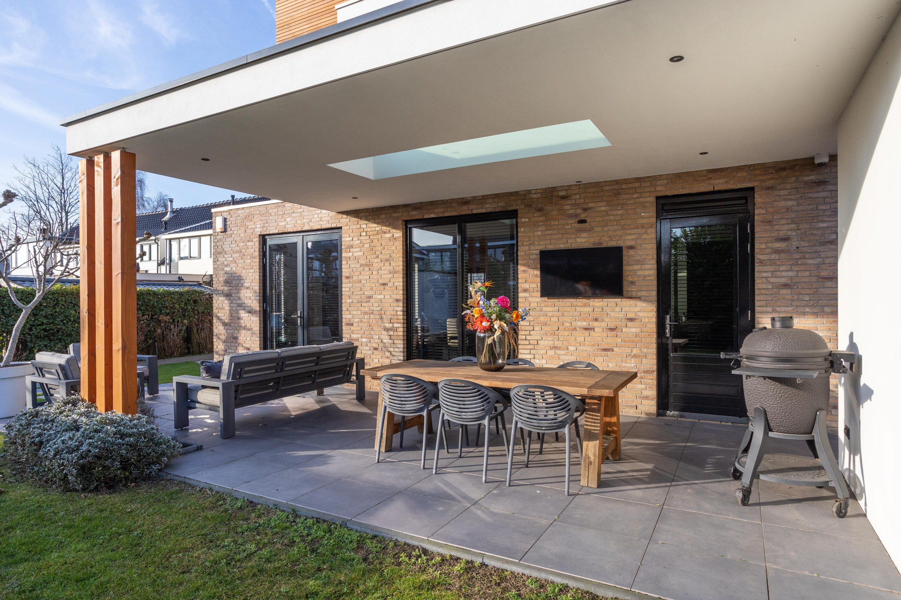 De voor-, zij- en achtertuin zijn prachtig aangelegd. Om het perceel te bereiken gaat u over een nieuw aangelegde brug met elektrische hek. Vanuit de voortuin heeft u prachtig zicht over ‘de Groenzoom’. In de achtertuin is het baden in weelde met een heerlijke jacuzzi. Ook fijn dat er een royale overkapping aanwezig.