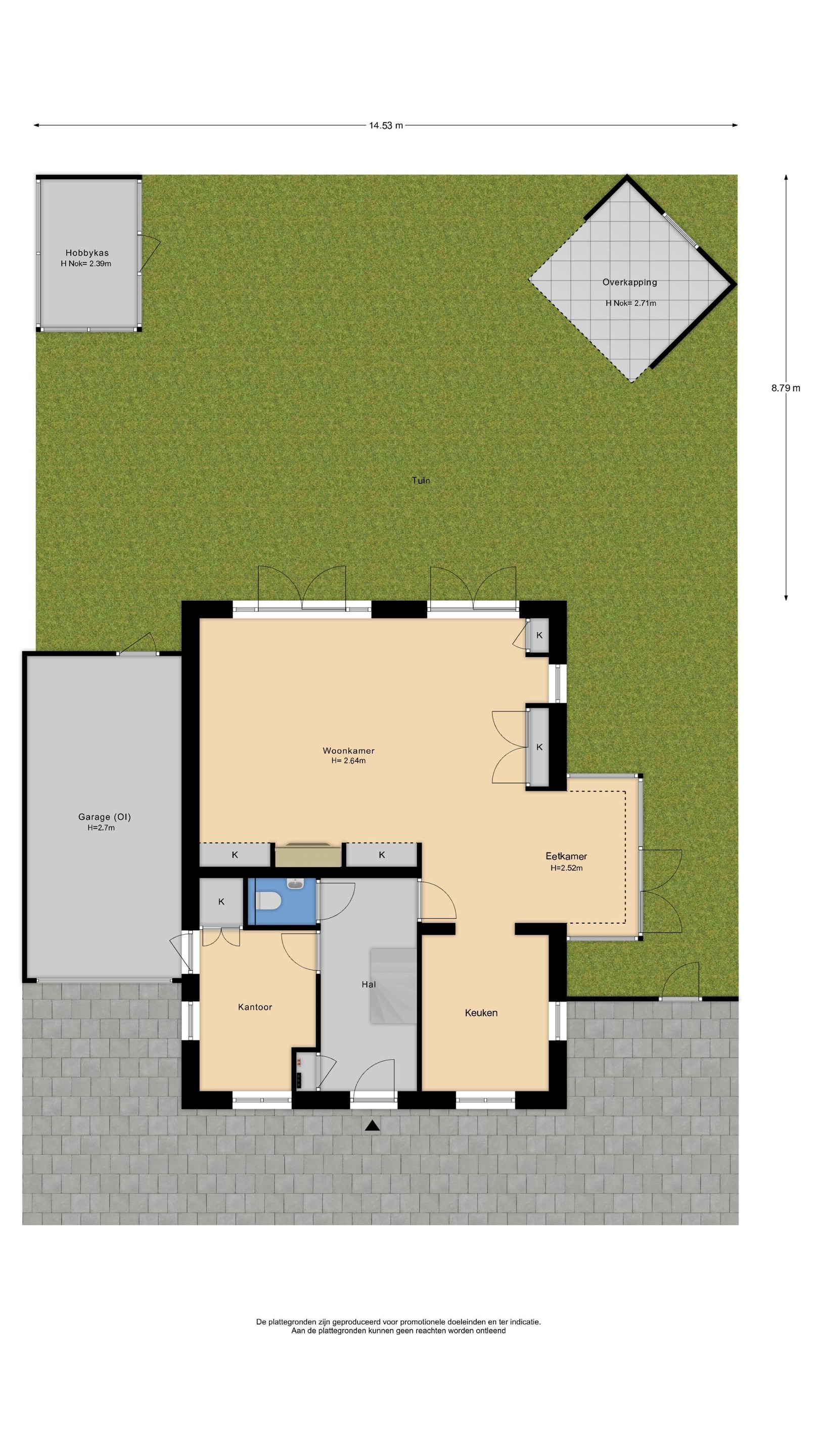 * Inpandige garage circa 21,7 m2 (6.80 x 3.20)