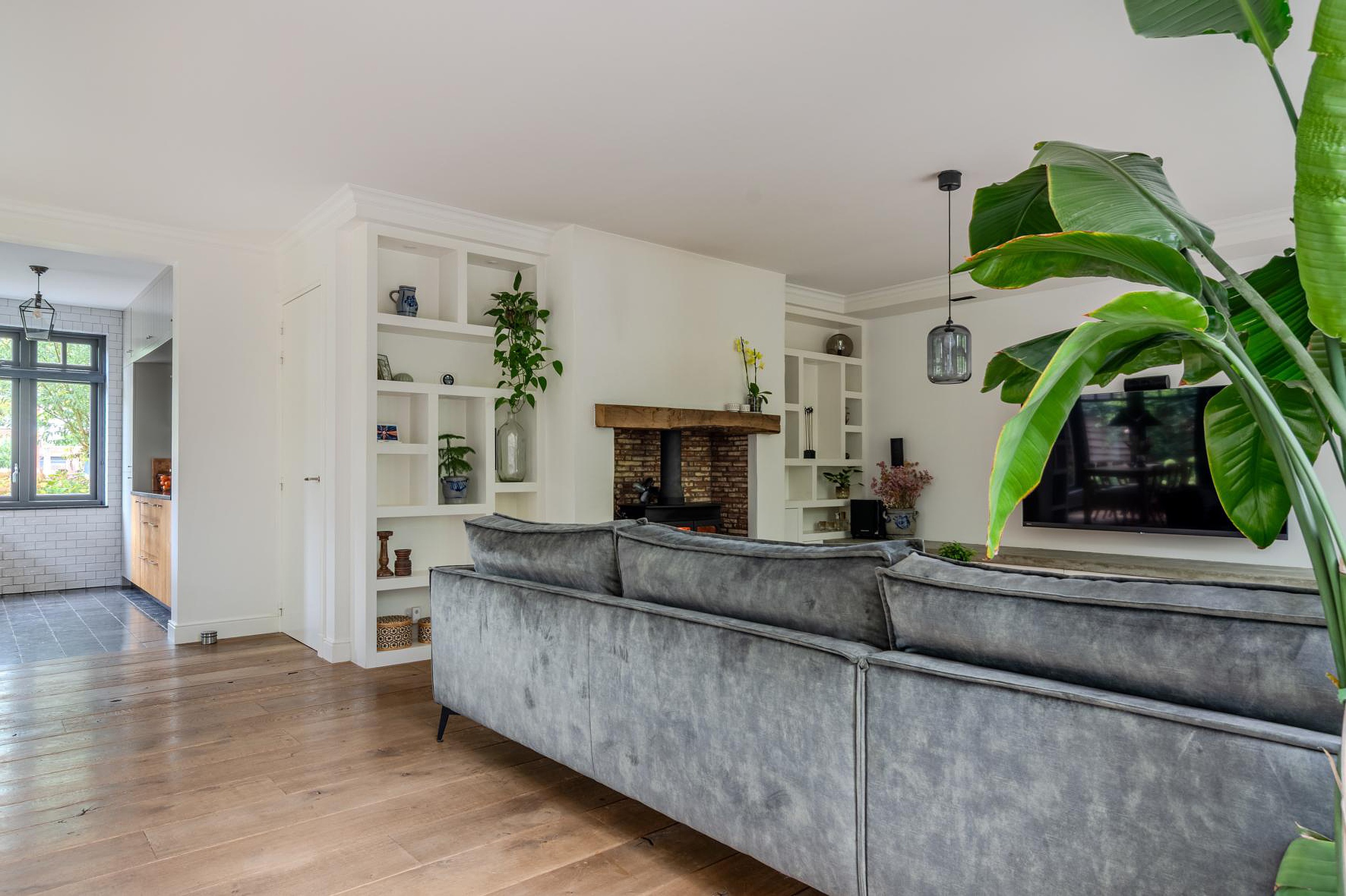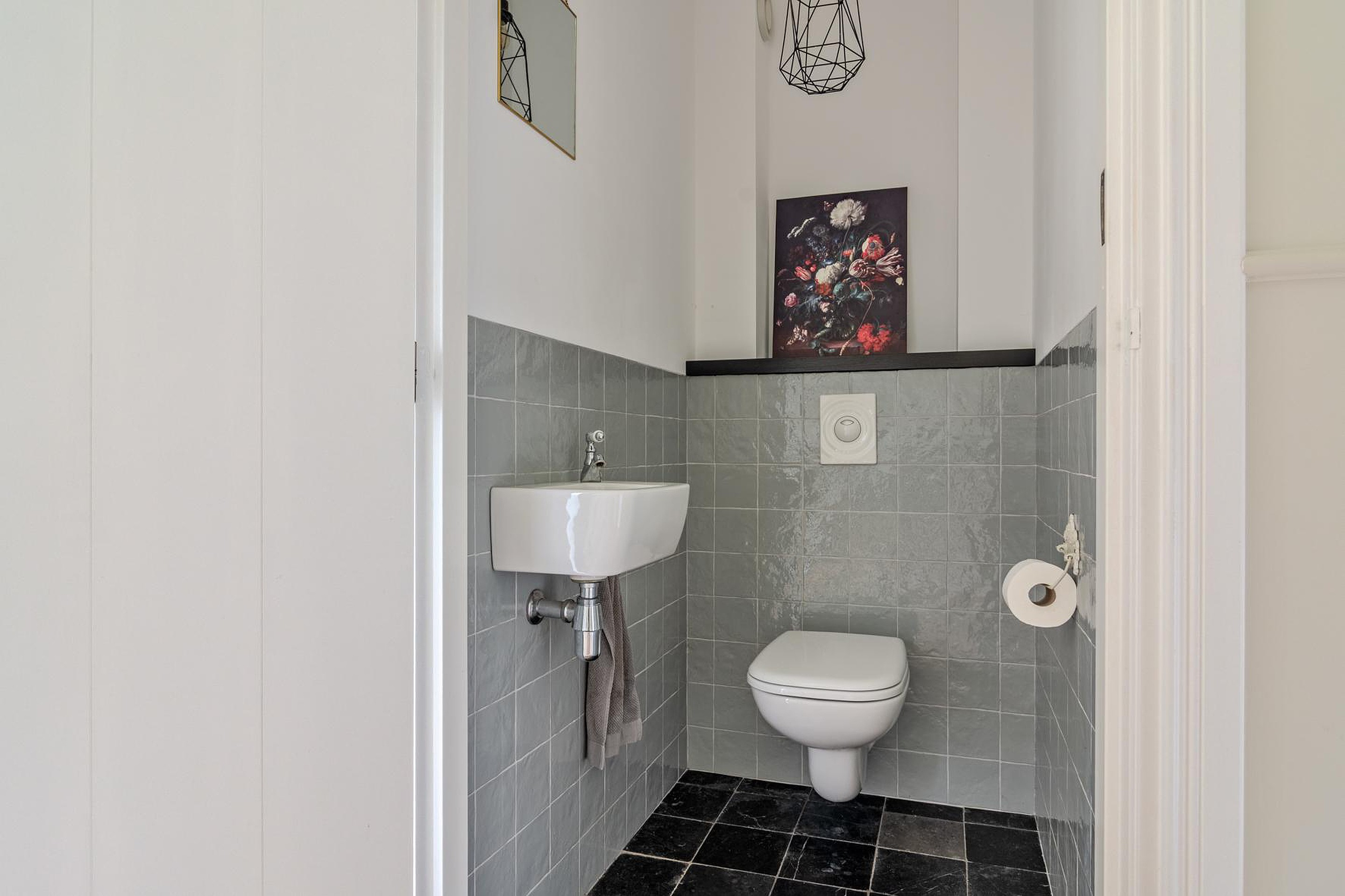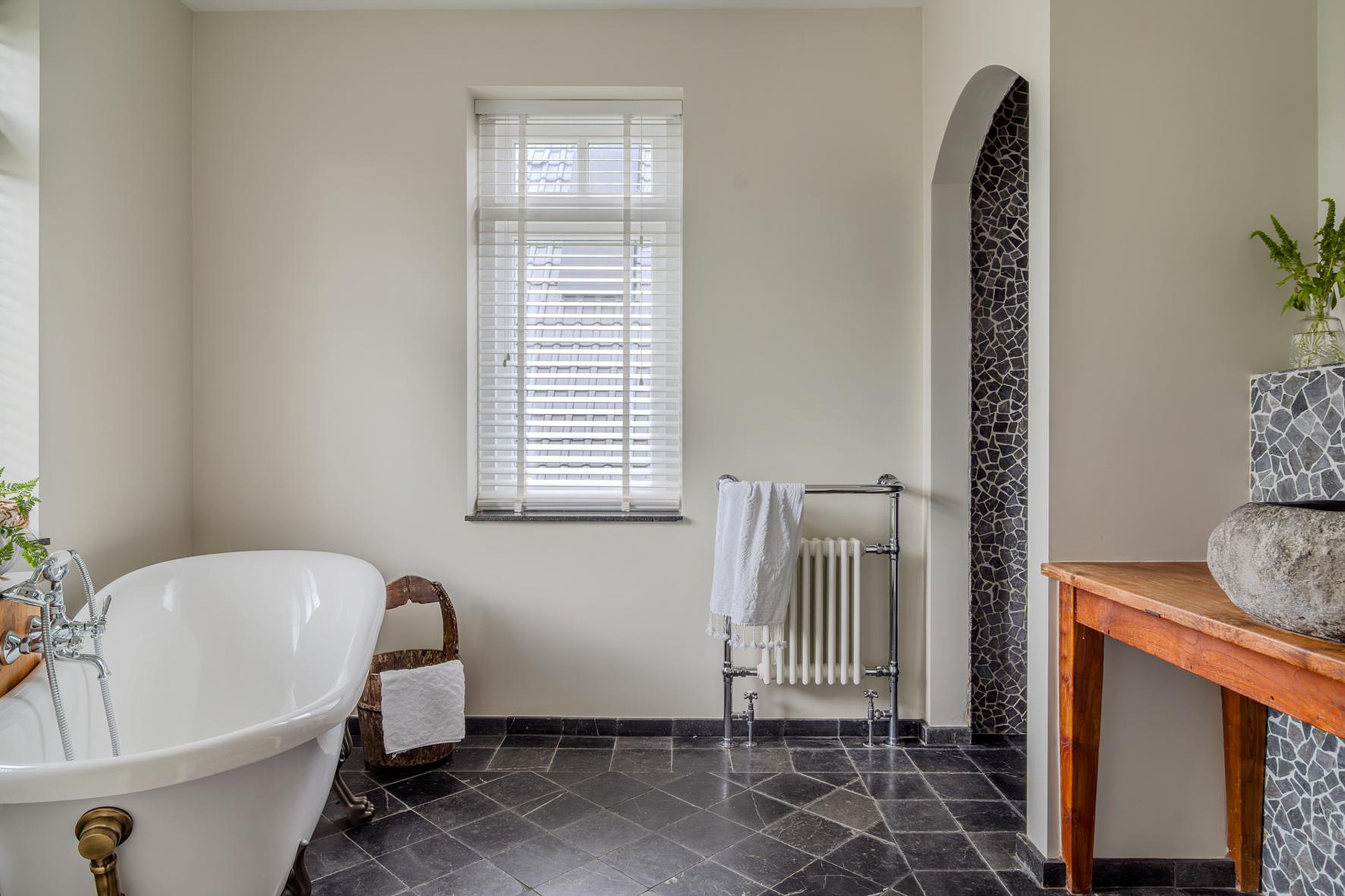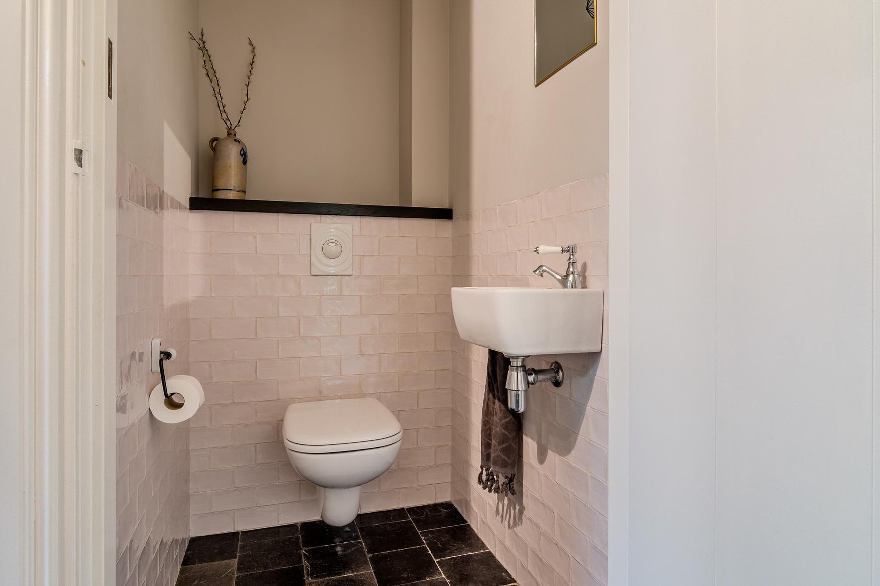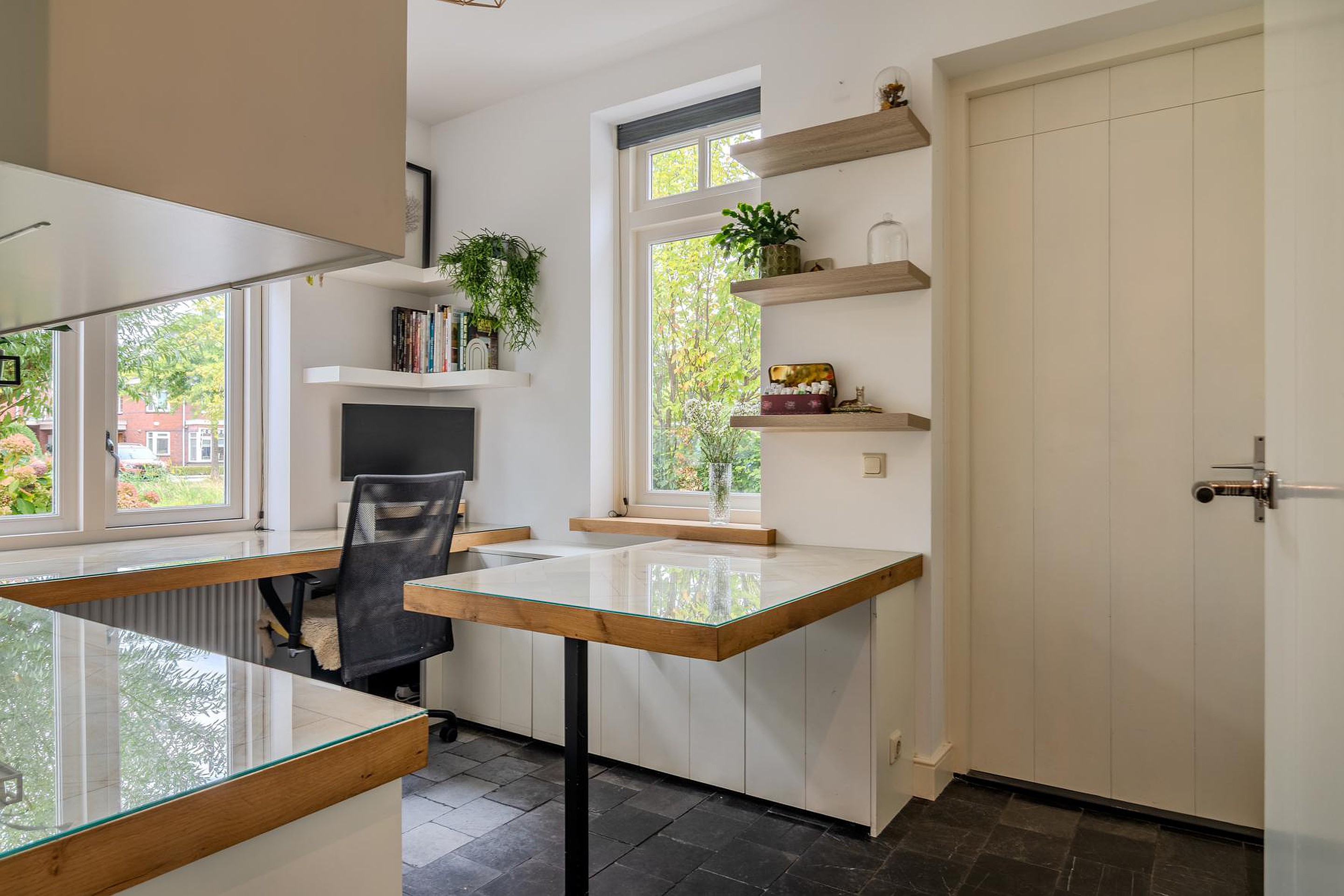 * Keuken, gang, werkkamer, beide toiletten en badkamer voorzien van een hardstenen vloer met vloerverwarming