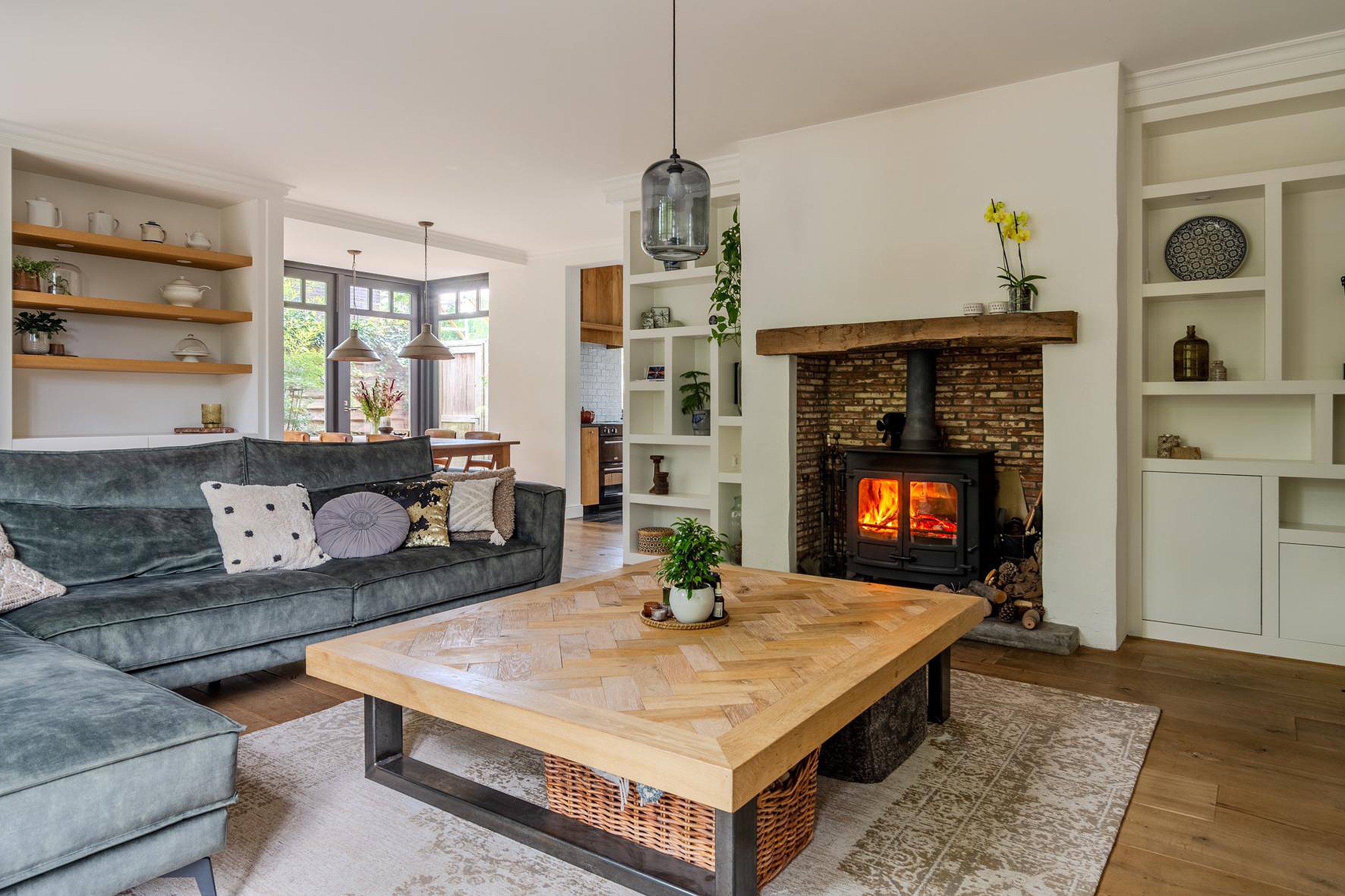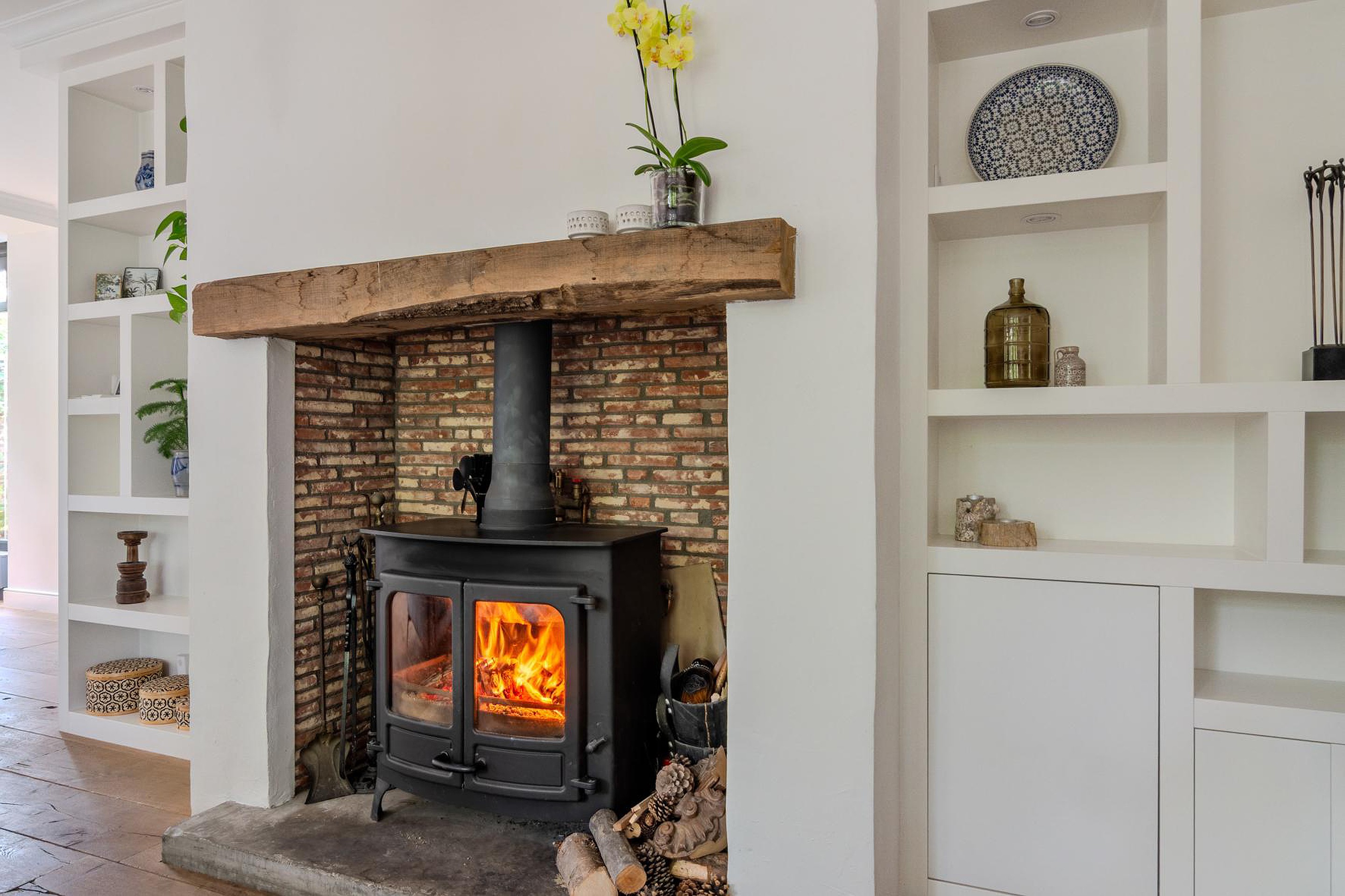 * CV houtkachel Nordic Fire Carvaille die de radiatoren en vloerverwarming verwarmt, bouwjaar 2010 (eigendom)