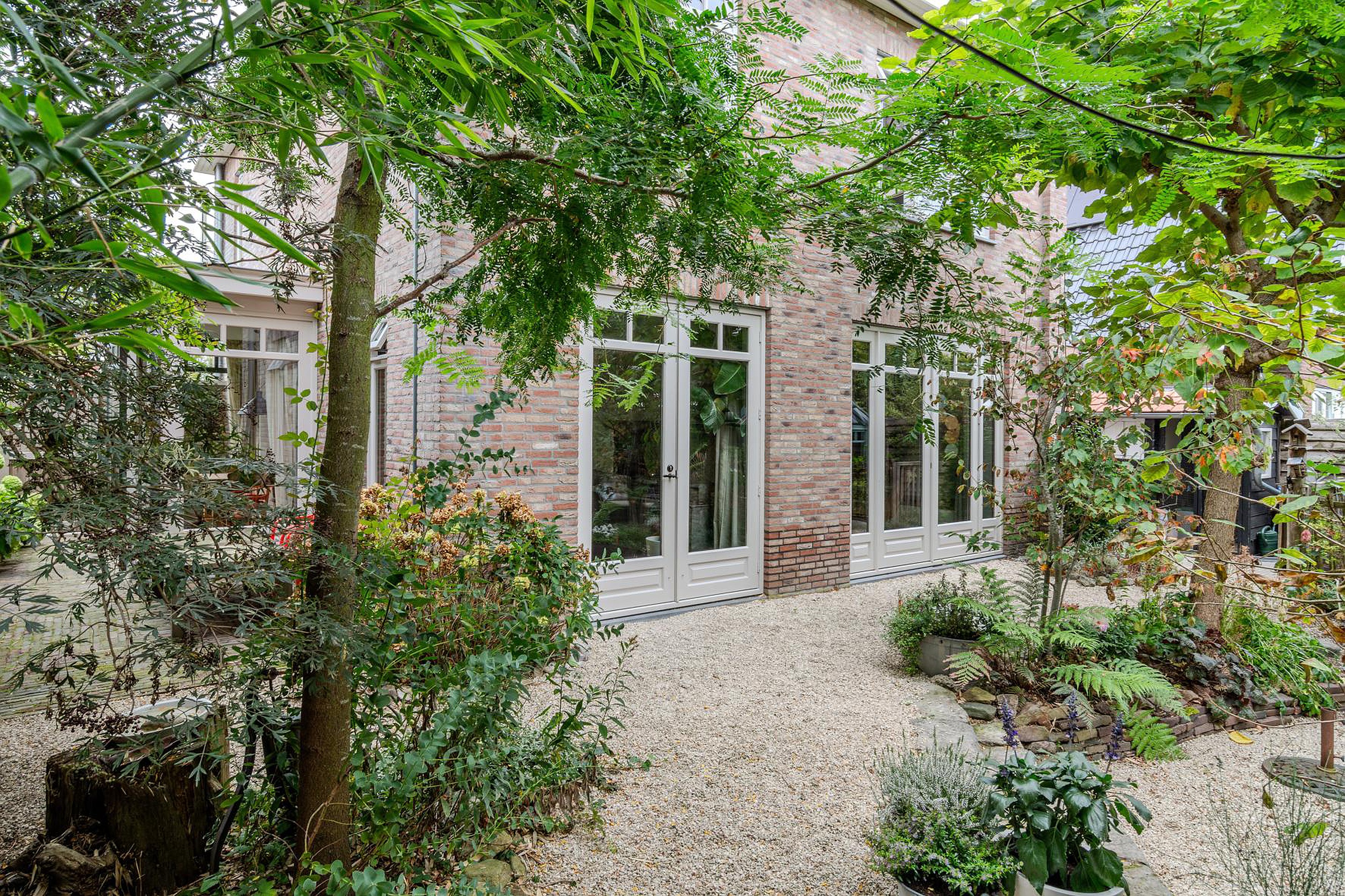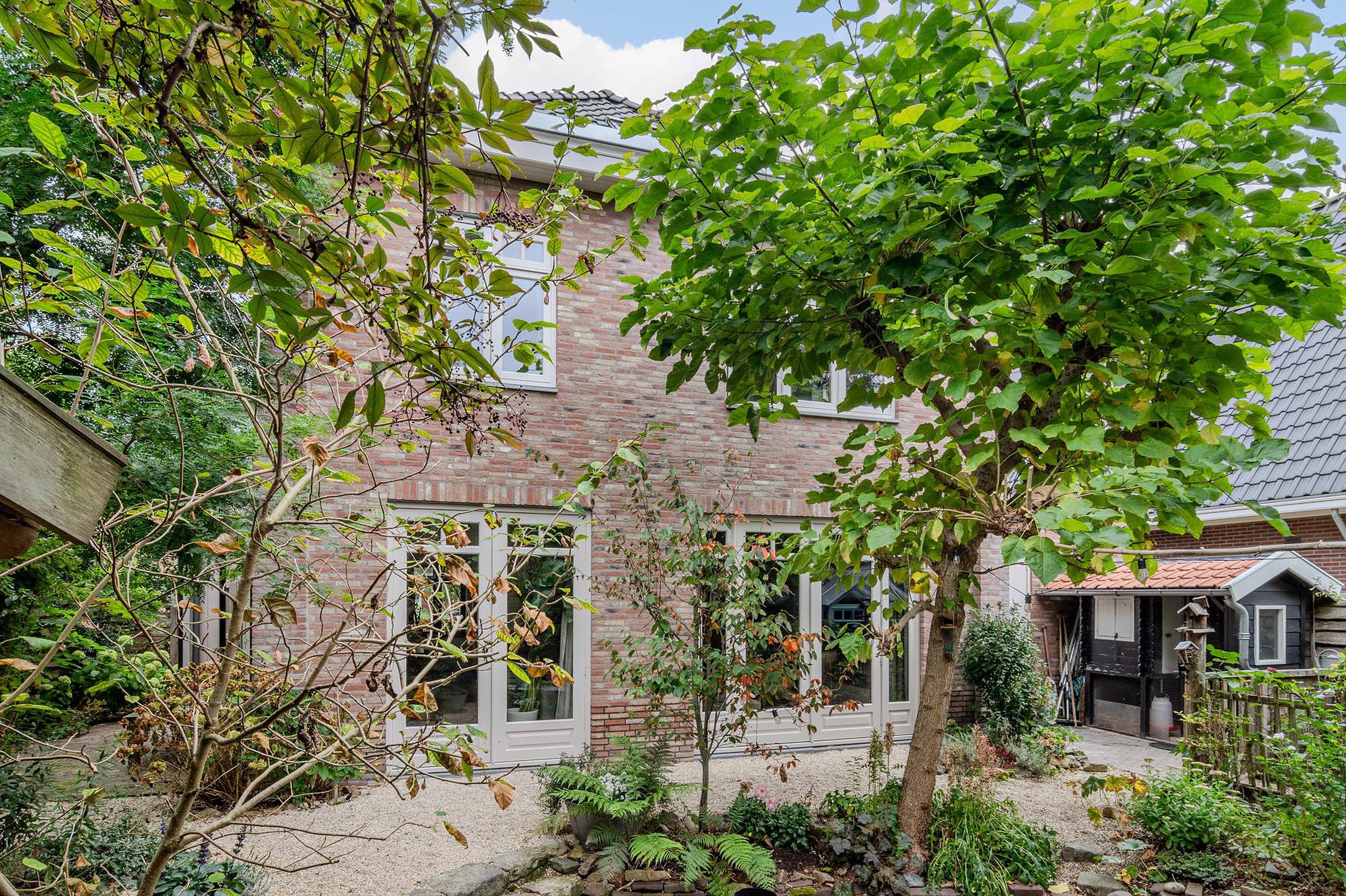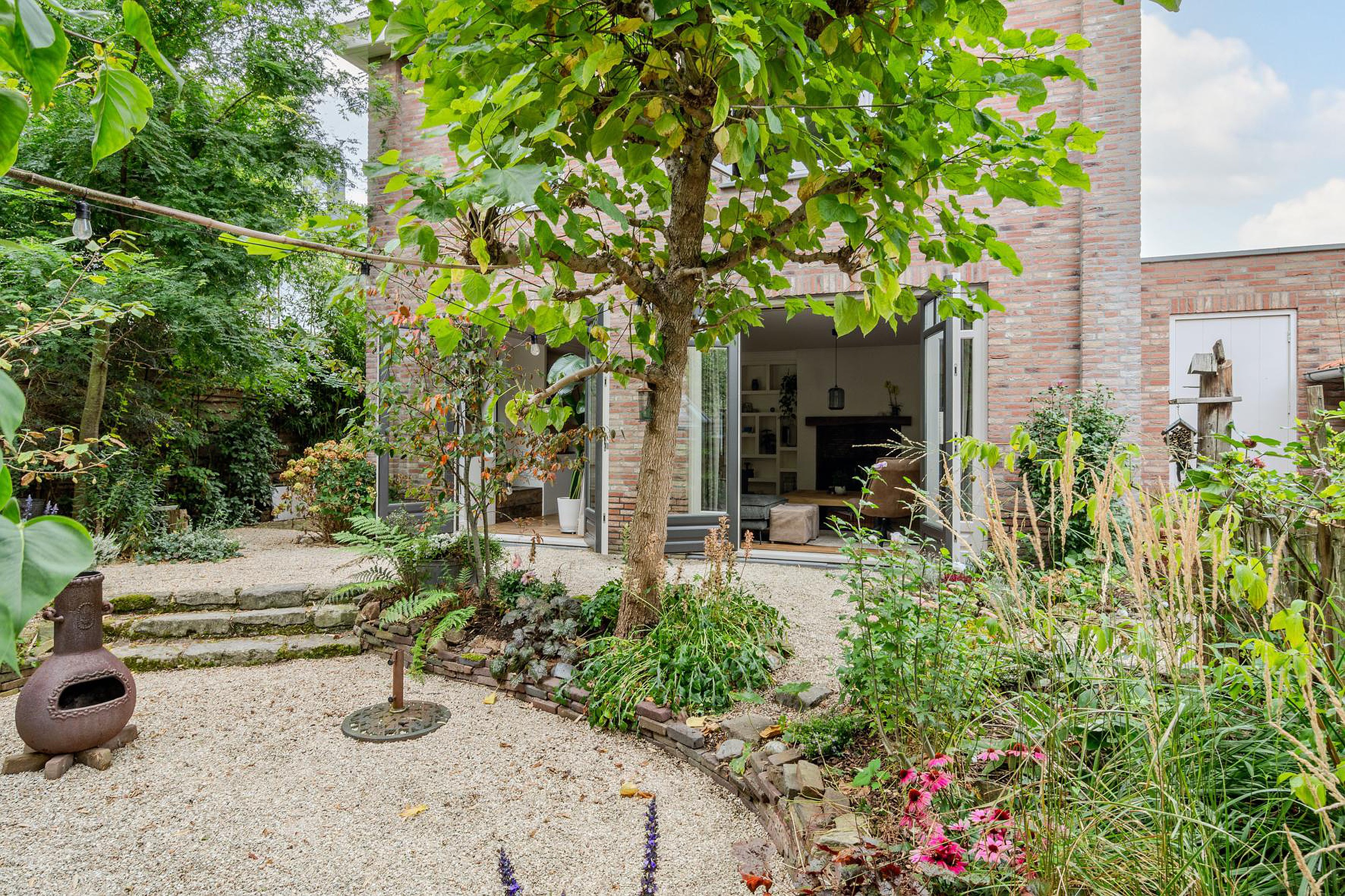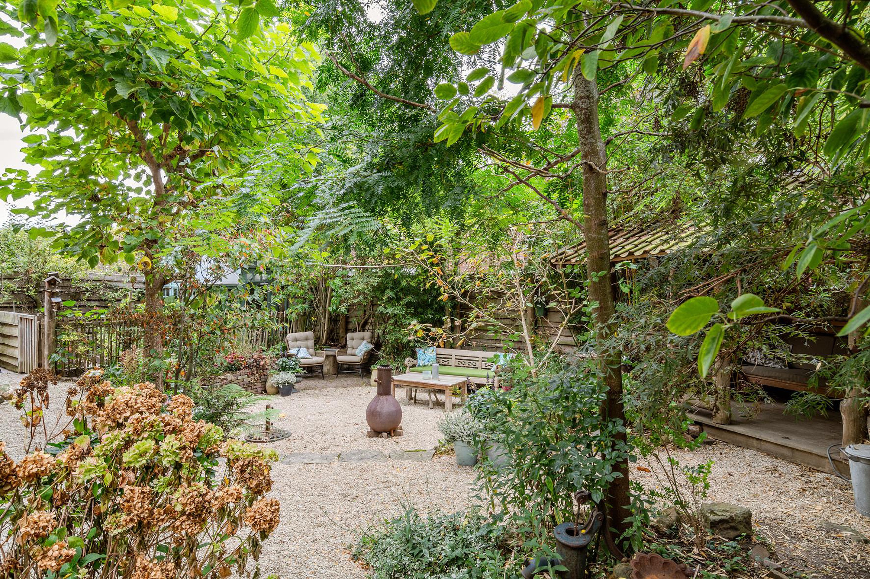 En dan nog de tuin rondom! Ook weer perfect afgestemd op de woning met het gebruik van diverse natuurlijke materialen, knusse zithoekjes, hobbykas(berging) en overkapping. Verder heb je in de voortuin de ruimte om twee auto's te parkeren op eigen grond.